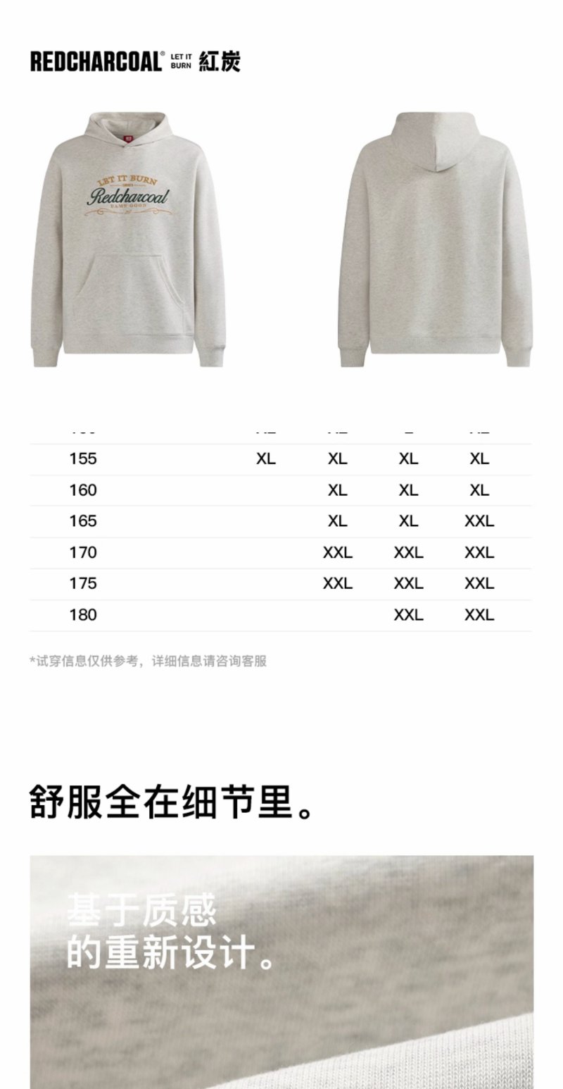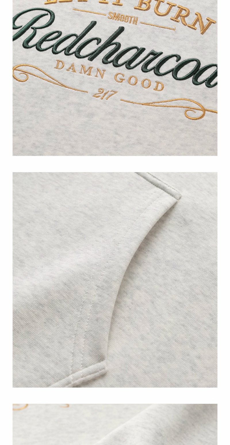 REDCHARCOAL 红炭花灰色绣花连帽卫衣男秋季新款潮牌宽松男士上衣