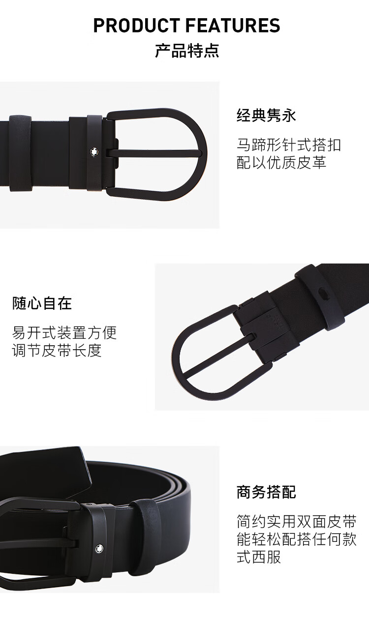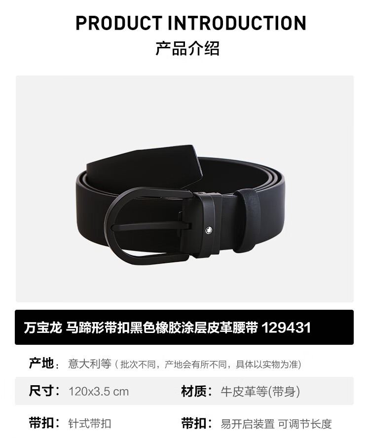 万宝龙 男士马蹄形针扣黑色腰带 MB129431-F