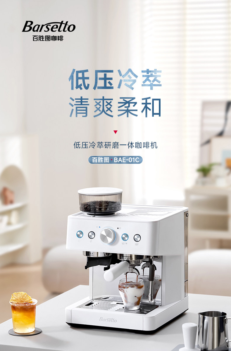 Barsetto/百胜图01C冷热双萃咖啡机家用小型意式全半自动研磨豆一体奶泡机