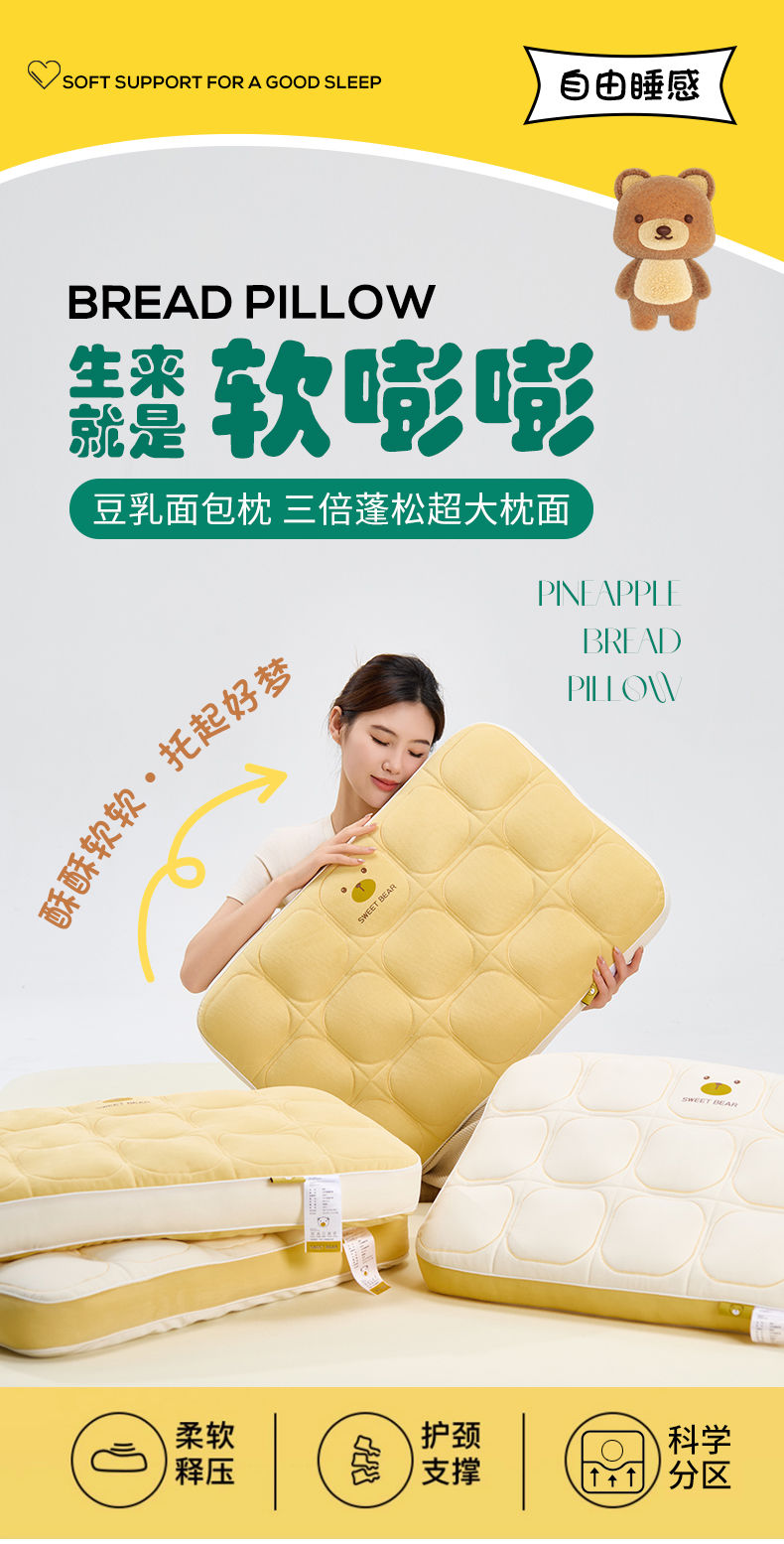 自然醒小熊豆乳面包枕乳胶片定型枕头XK