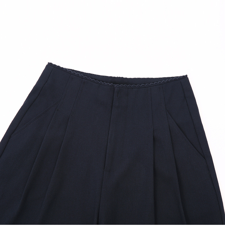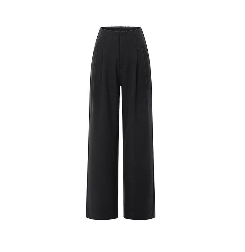 拉夏贝尔/La Chapelle垂坠有型!时尚暗扣压褶显瘦休闲裤宽松阔腿西裤