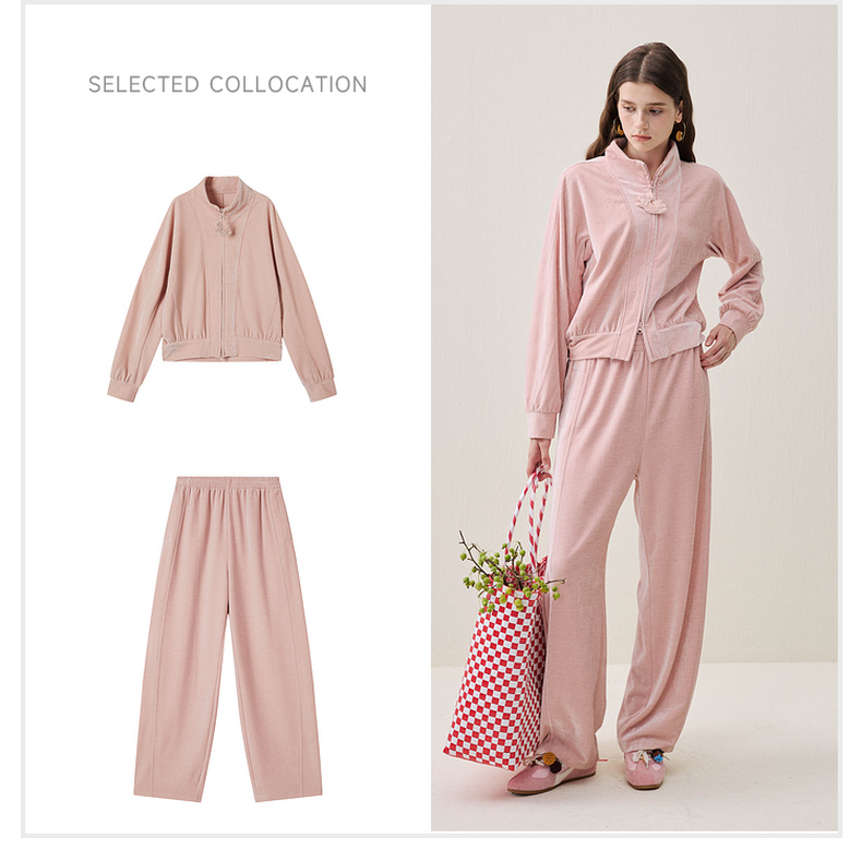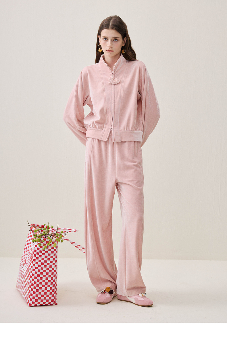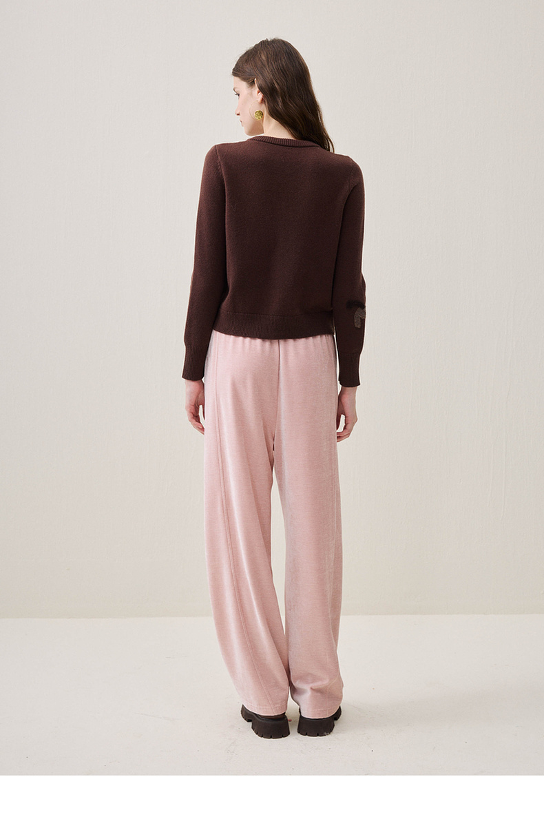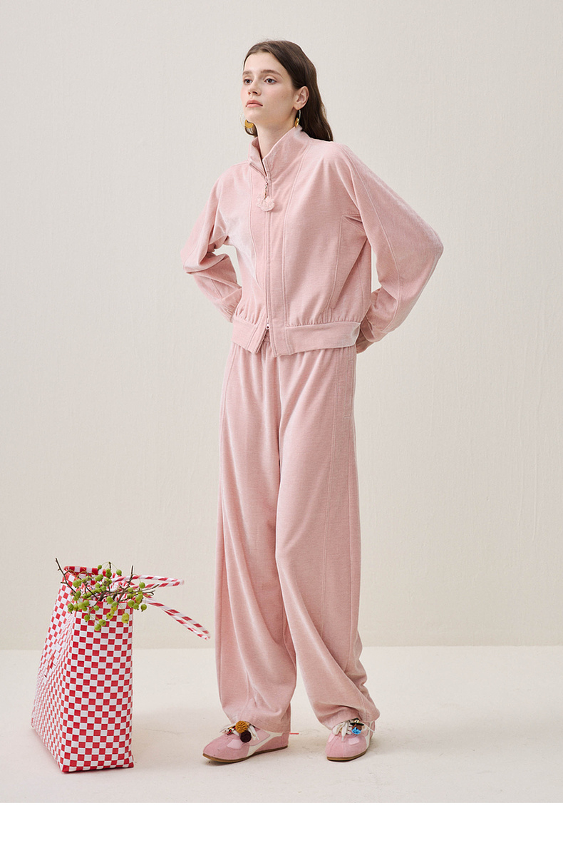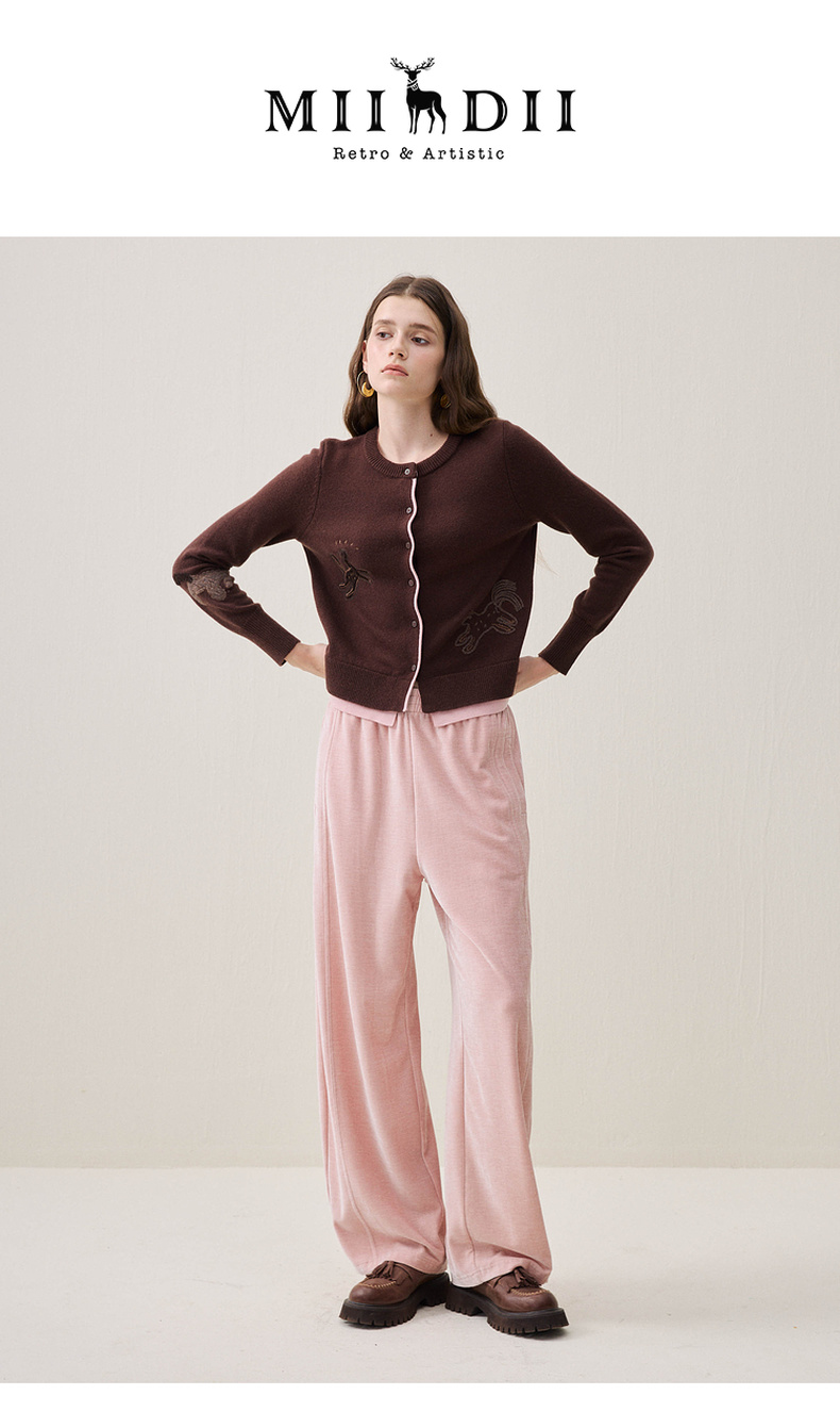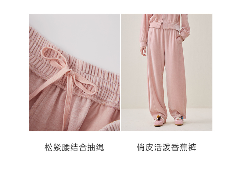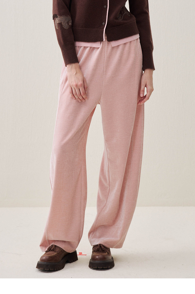 谜底阔腿裤长裤2025年冬季新品柔软亲肤裸粉色休闲裤女254MK1693