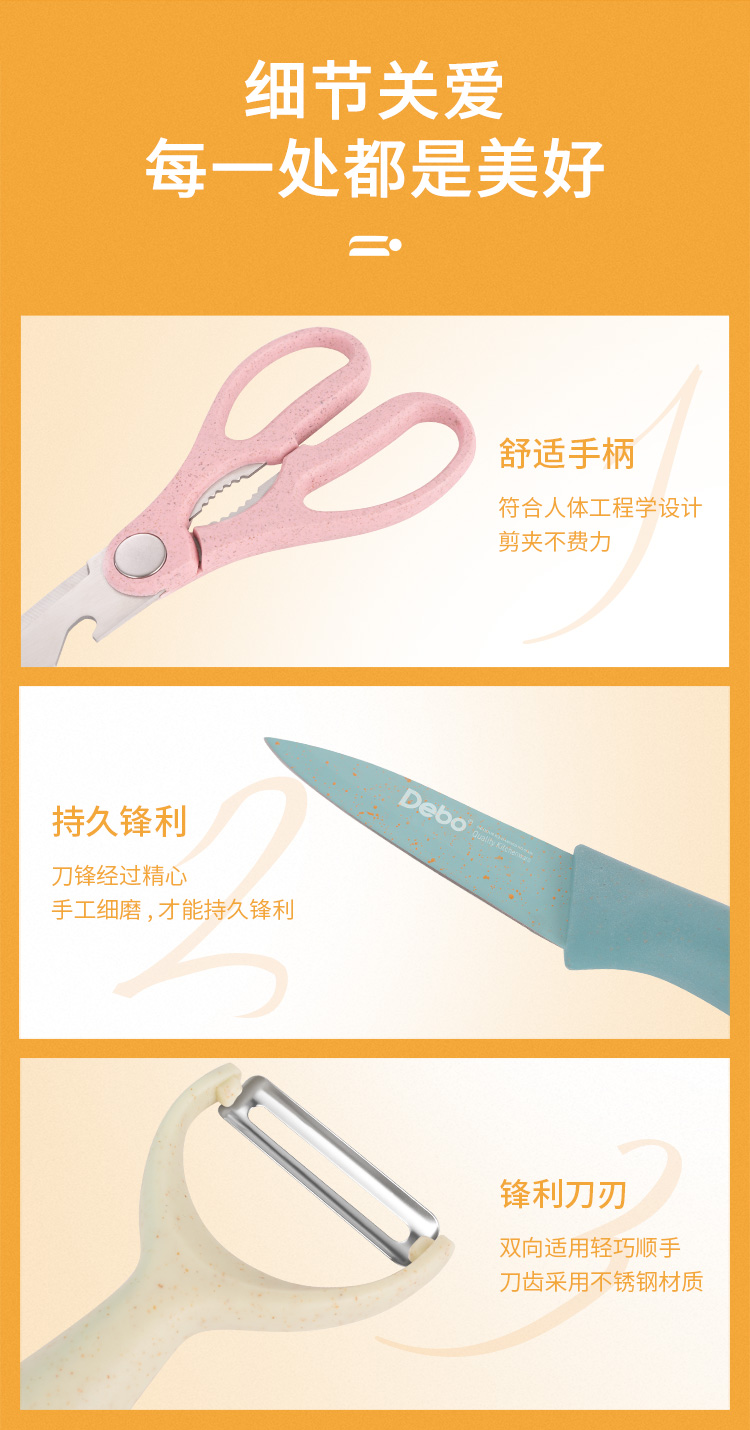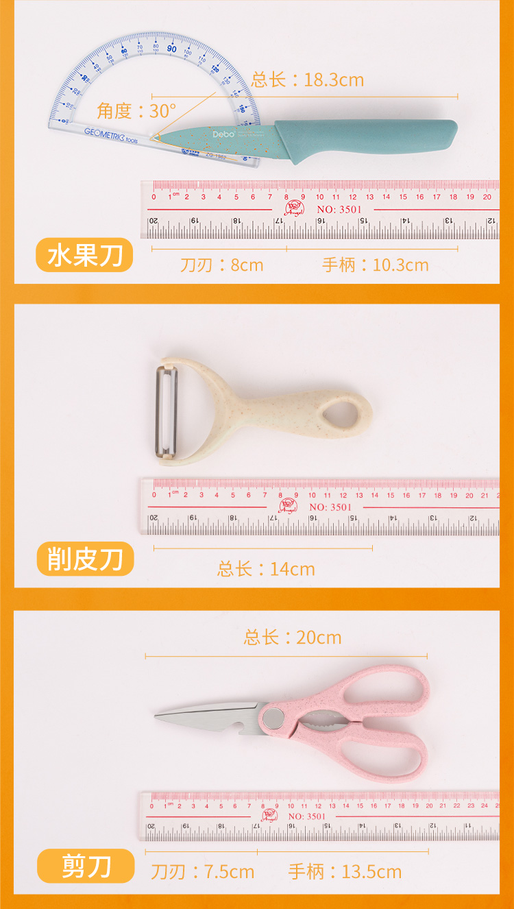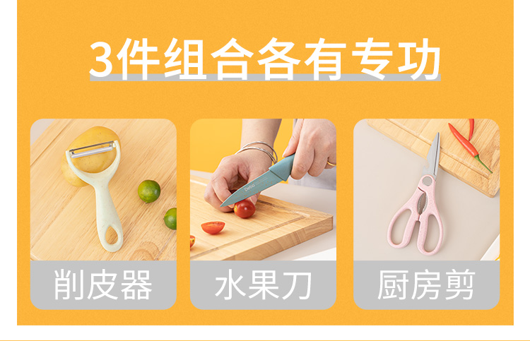 配置:瓜刨*1、水果刀*1、厨房剪*1