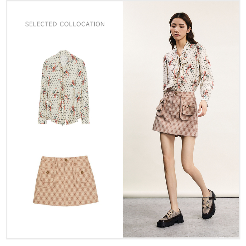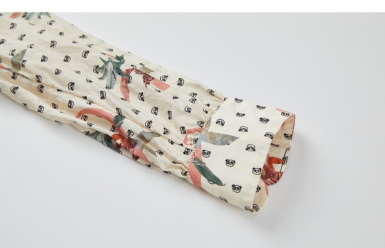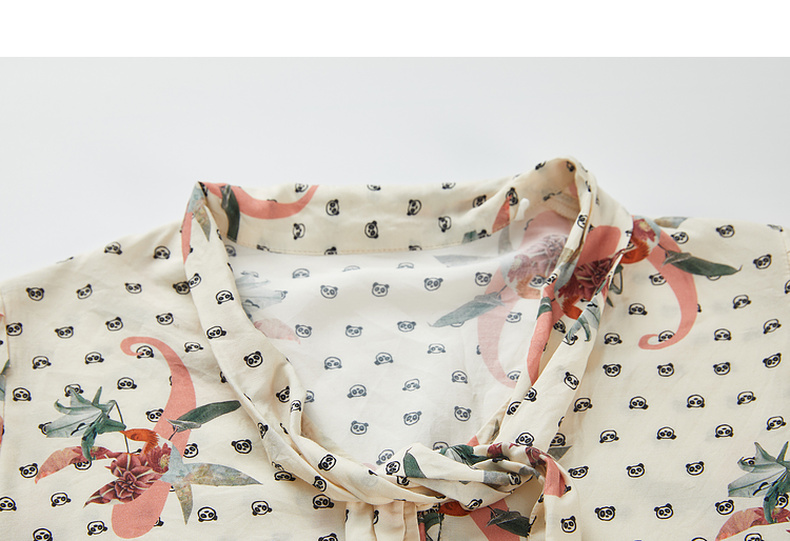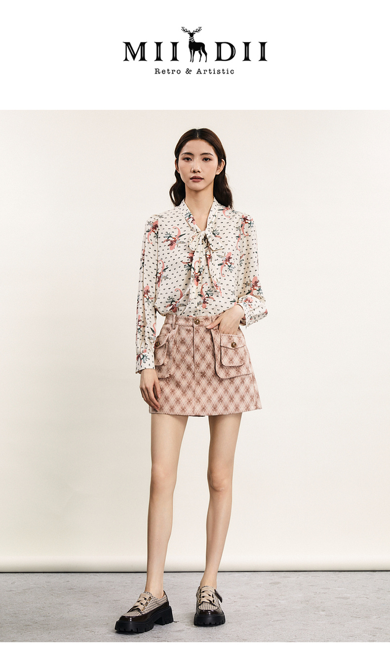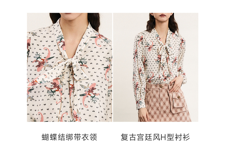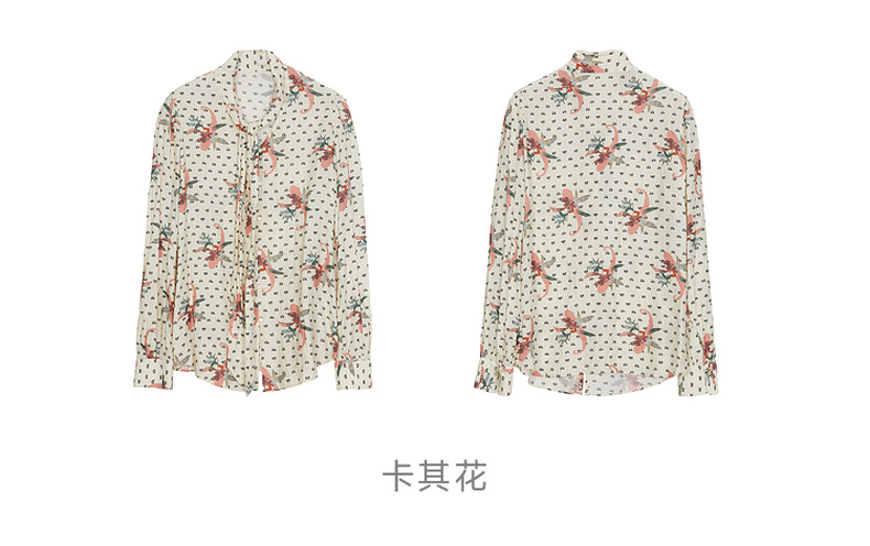 谜底花衬衫长袖女2024春季新款复古文艺系带V领亲肤衬衣241MC0050