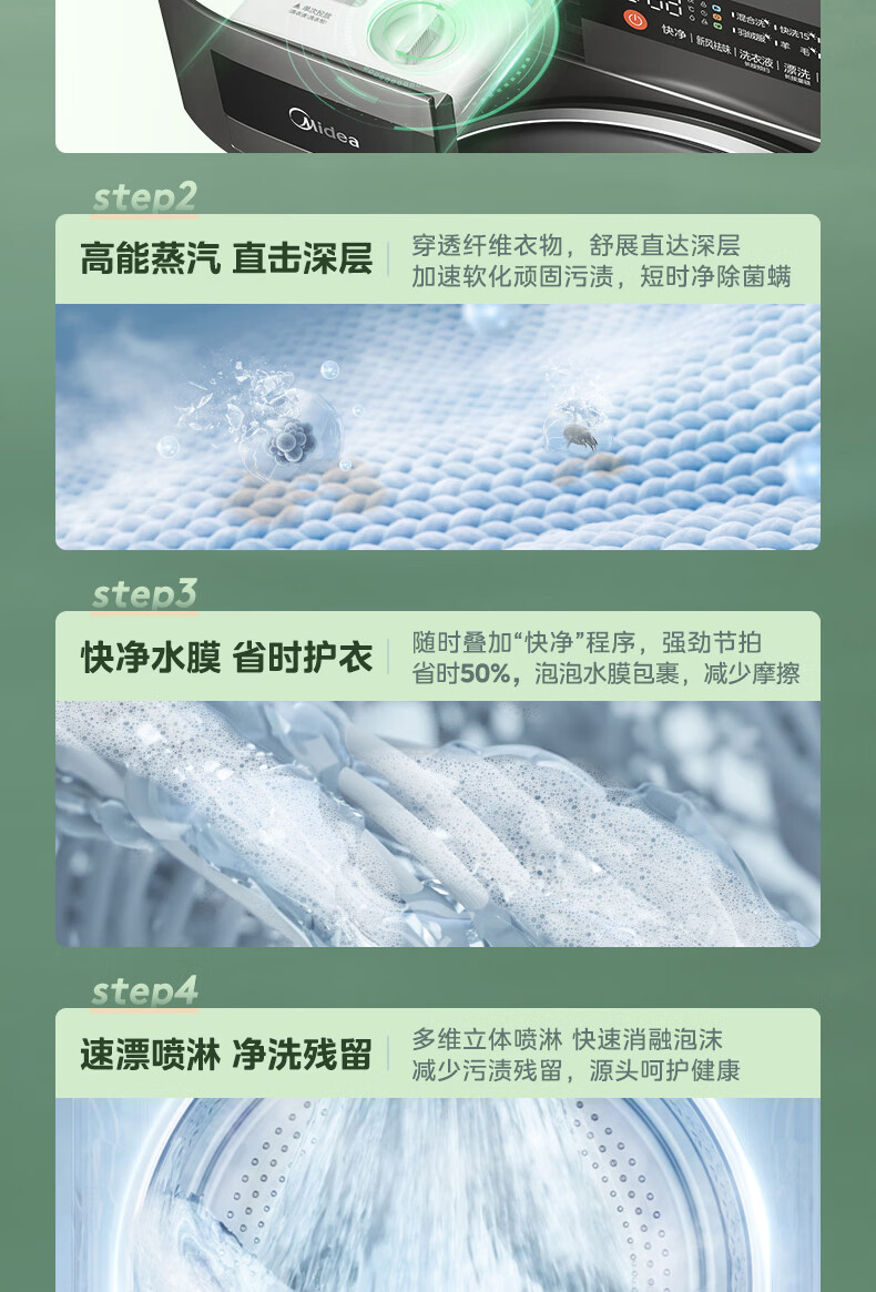 美的(Midea)美的滚筒洗衣机全自动10公斤大容量洗烘一体机祛味空气洗智能家电快净科技省时 MD100L0IT