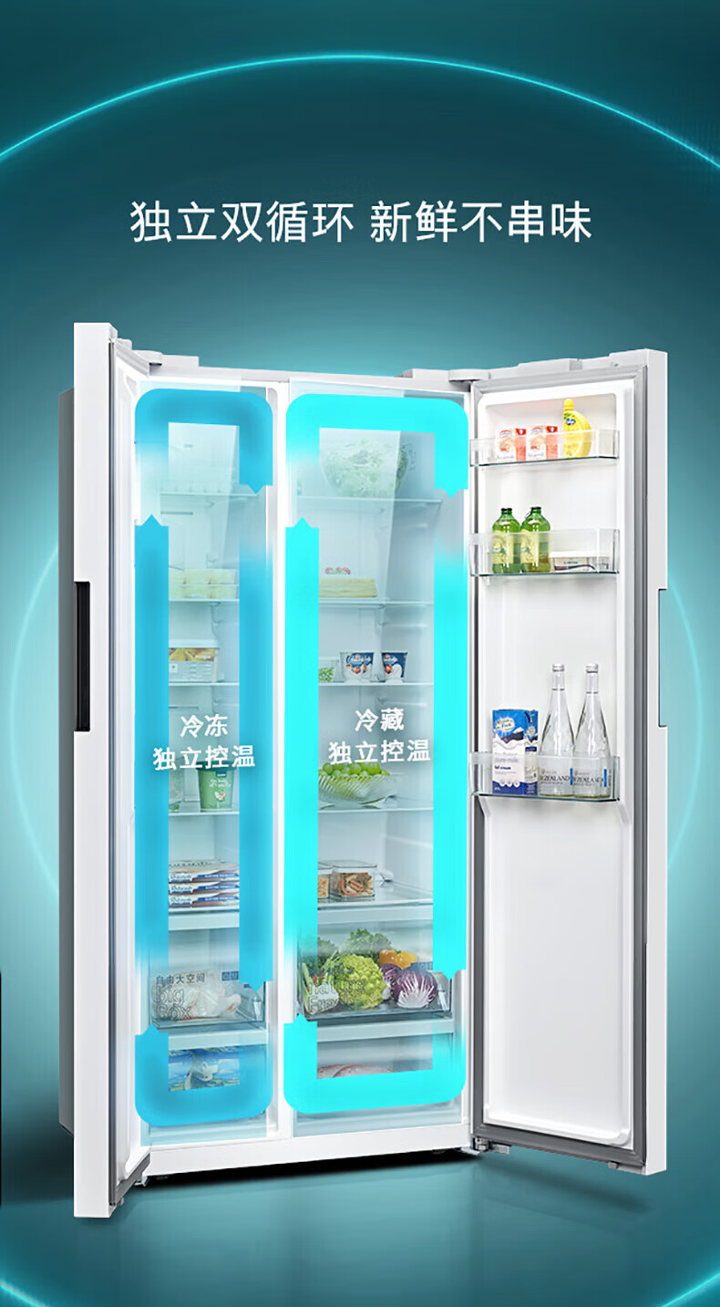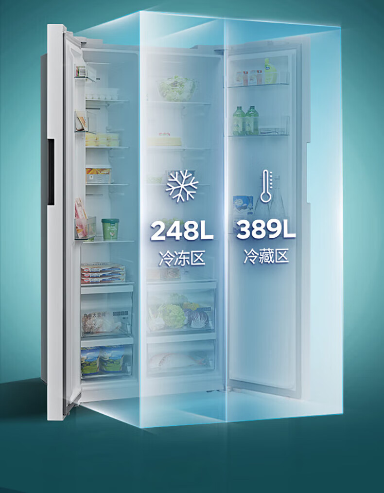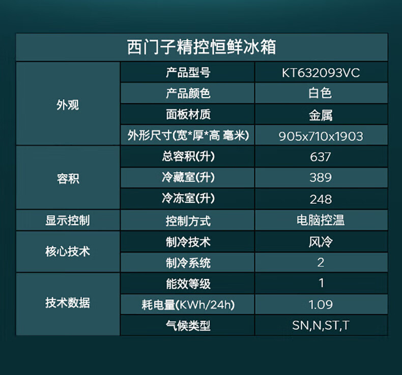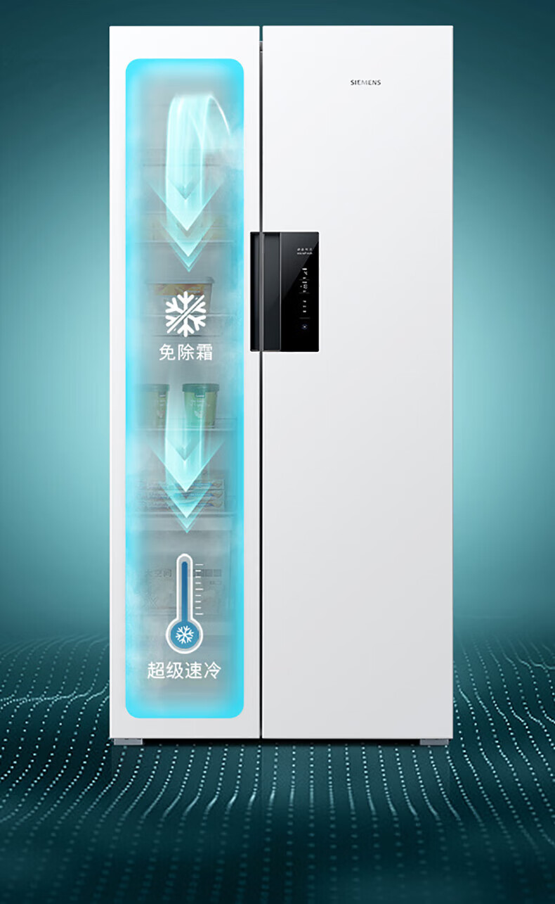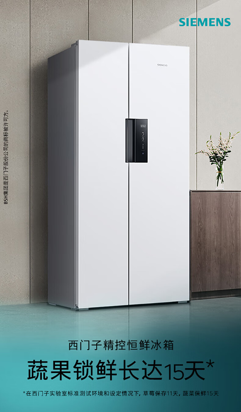 西门子(SIEMENS)637升超大容量双开门变频家用冰箱对开门 双循环超级速冷精准保鲜抗菌净味一级能效 KT632093VC 白色