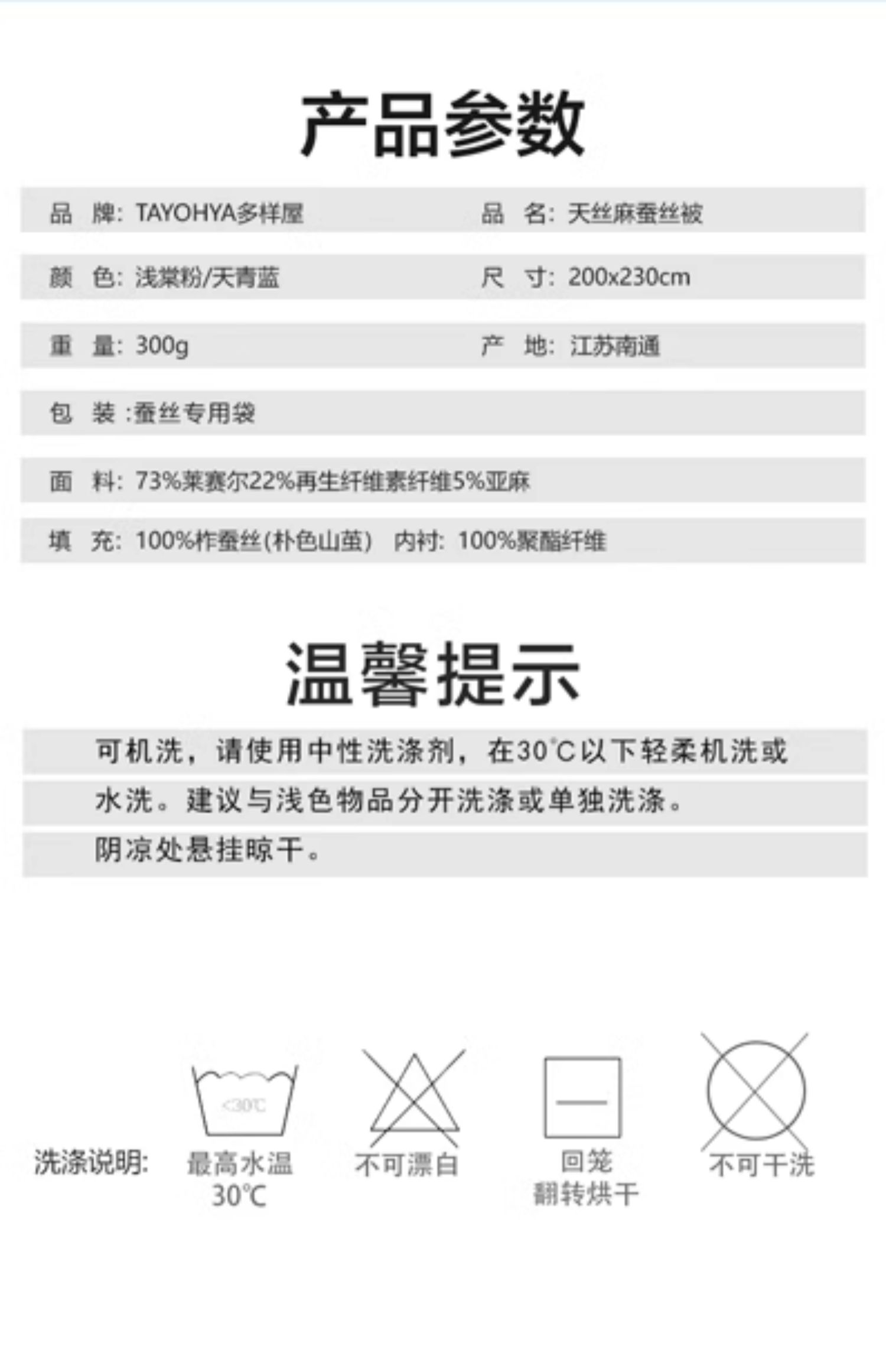 【多样屋专柜】多样屋100%天丝麻蚕丝被夏凉被空调被子双人夏季春秋可机洗夏被芯