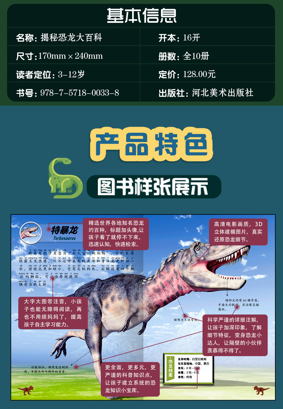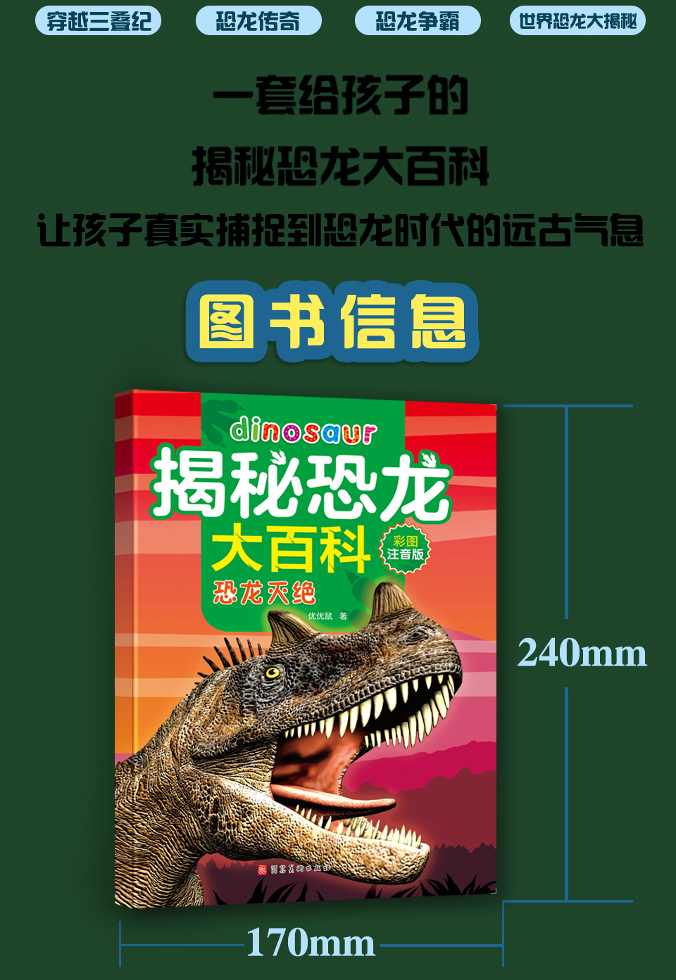 恐龙百科全书 揭秘恐龙百科大全儿童史前恐龙书籍 三叠侏罗白垩纪恐龙时代世界王国绘本小学生科普读物动物百科