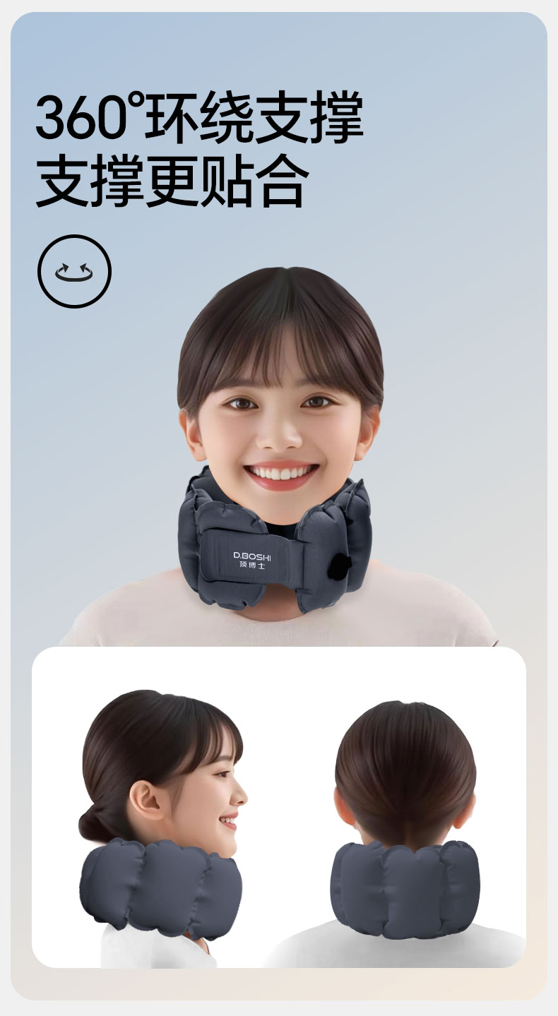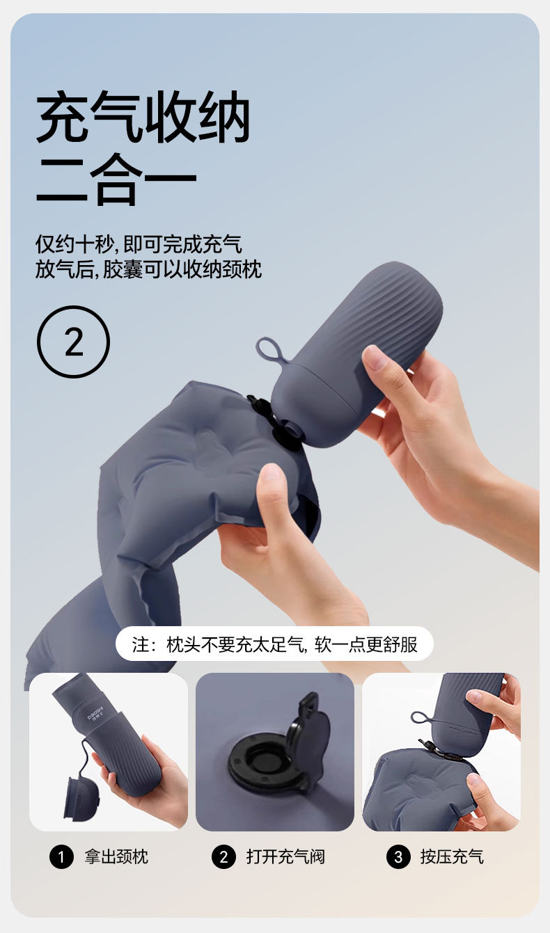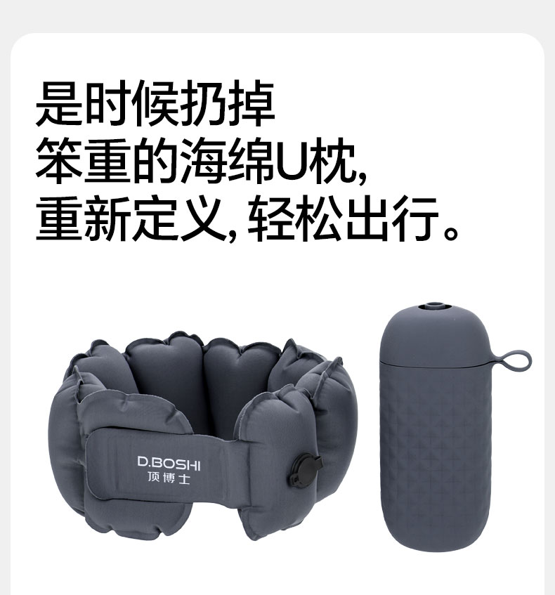 顶博士口袋充气U型枕·遮光降噪眼罩套装,颈椎舒适,巴掌大,好收纳,随身便携,旅途轻松睡【G】