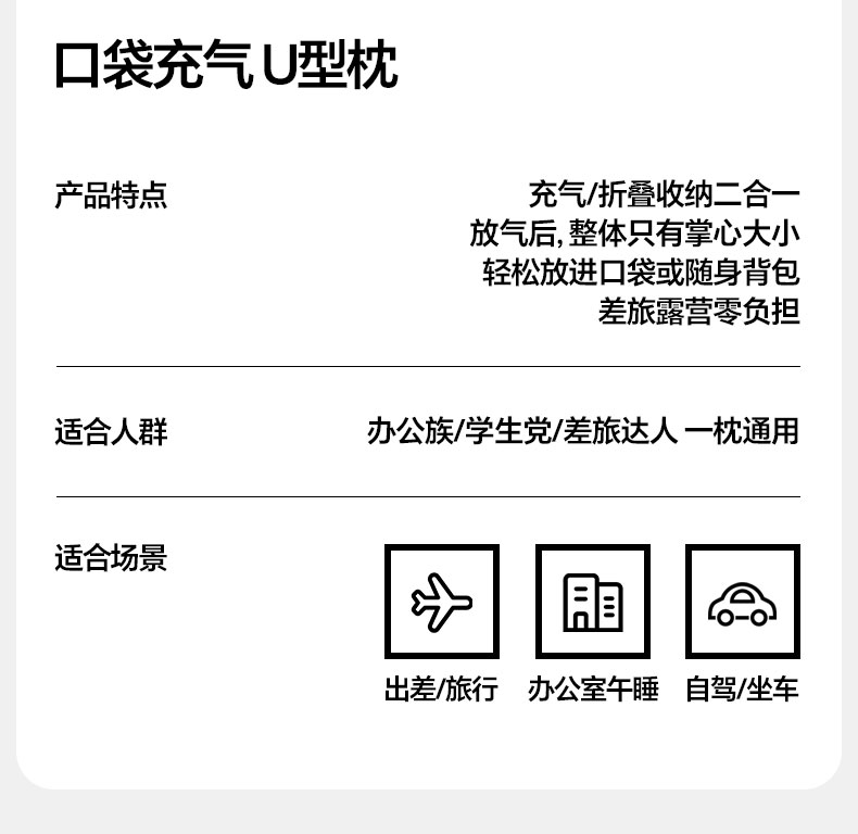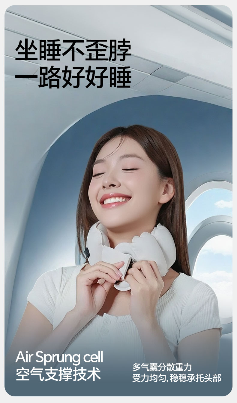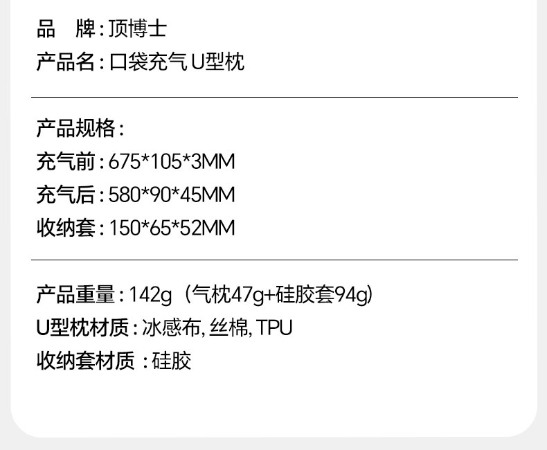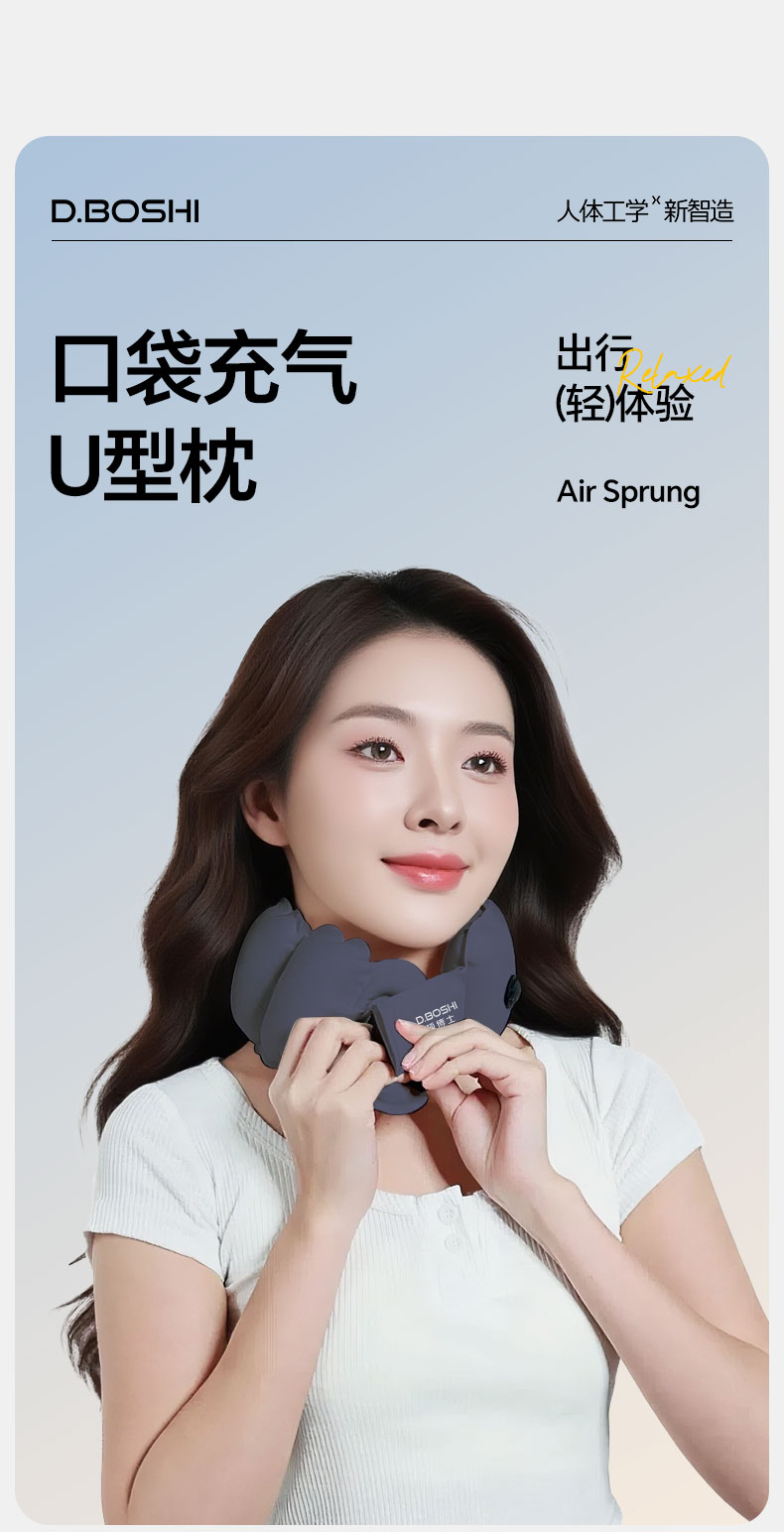 顶博士口袋充气U型枕·遮光降噪眼罩套装,颈椎舒适,巴掌大,好收纳,随身便携,旅途轻松睡【G】