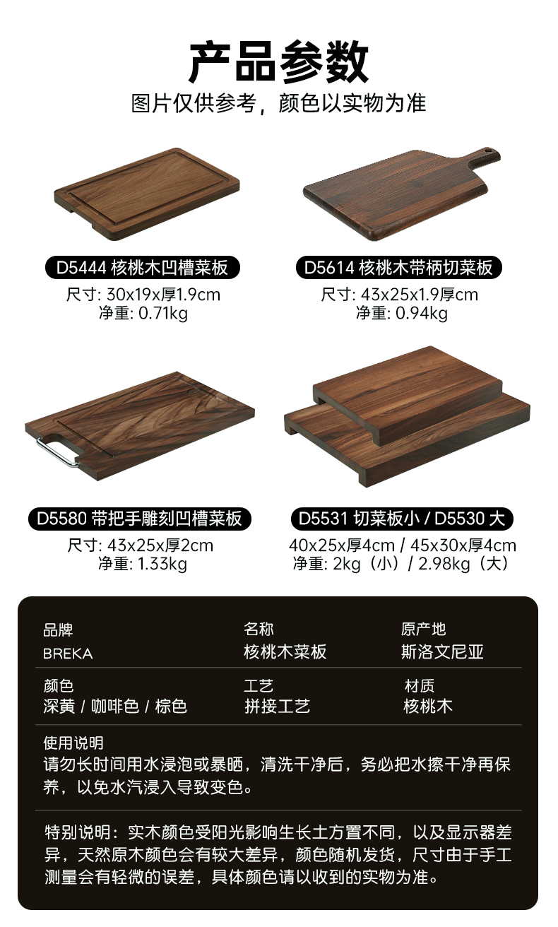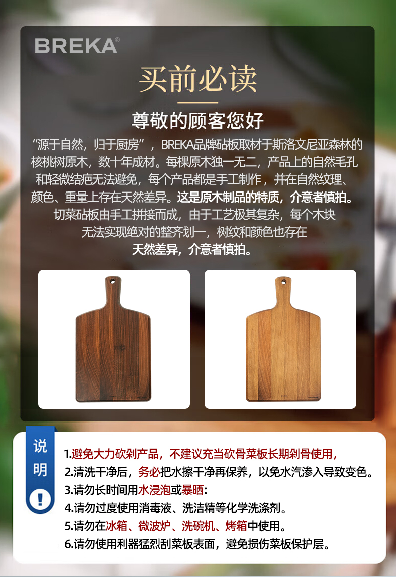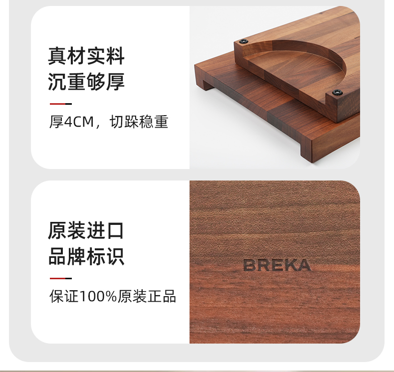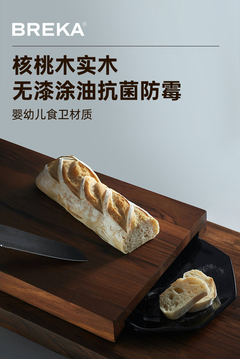 Breka进口核桃木菜板砧板天然原木抗菌加厚无漆无蜡S