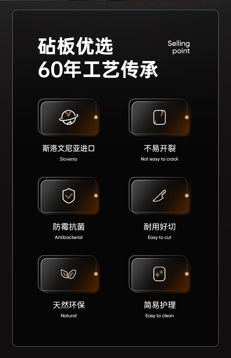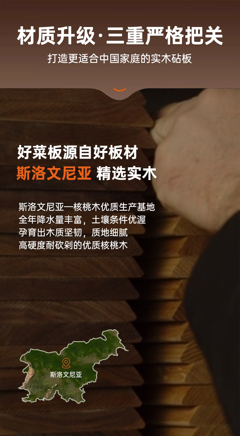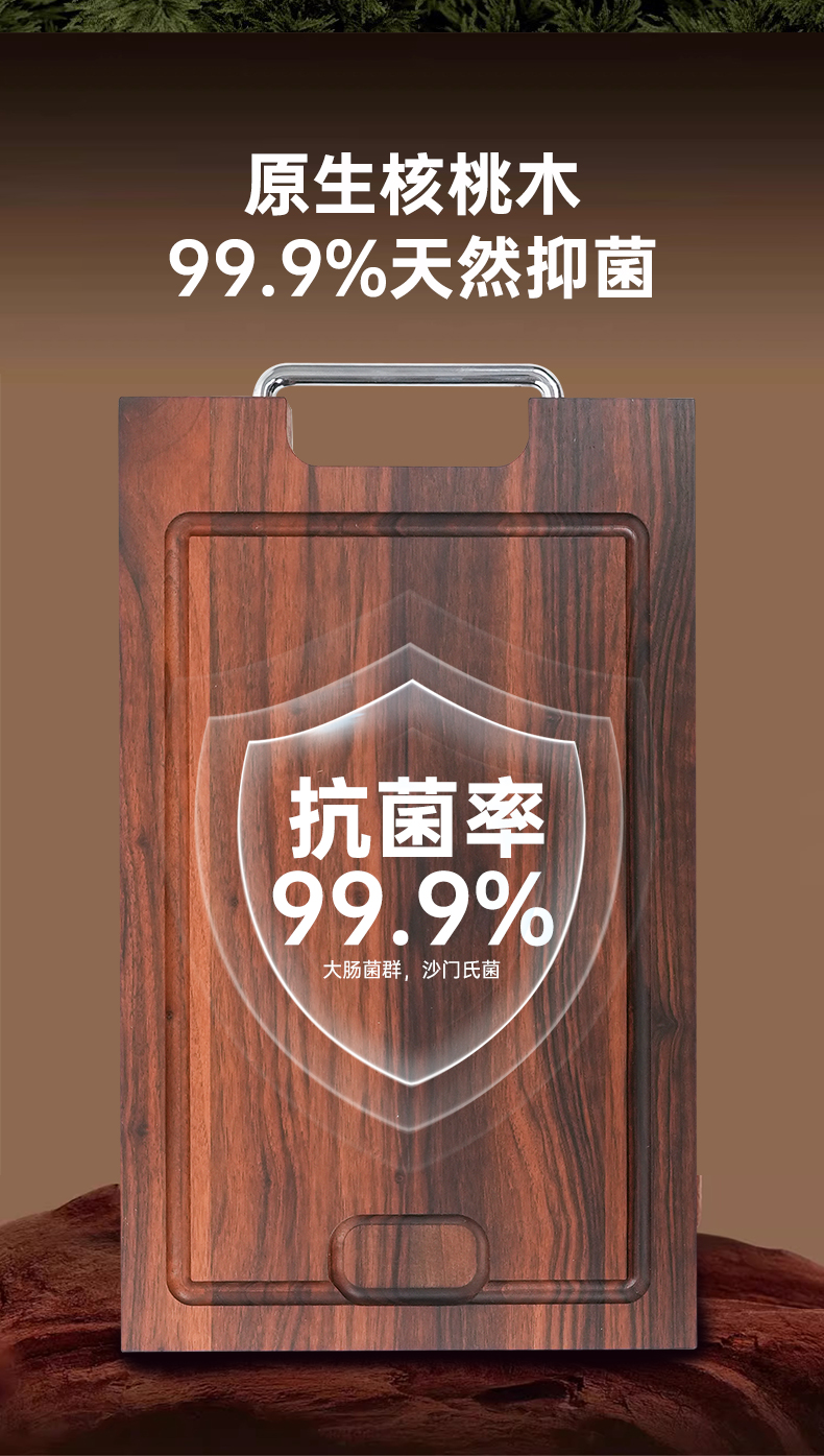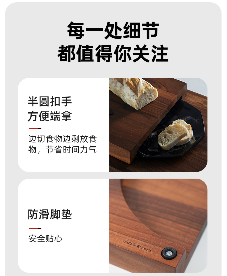 Breka进口核桃木菜板砧板天然原木抗菌加厚无漆无蜡S