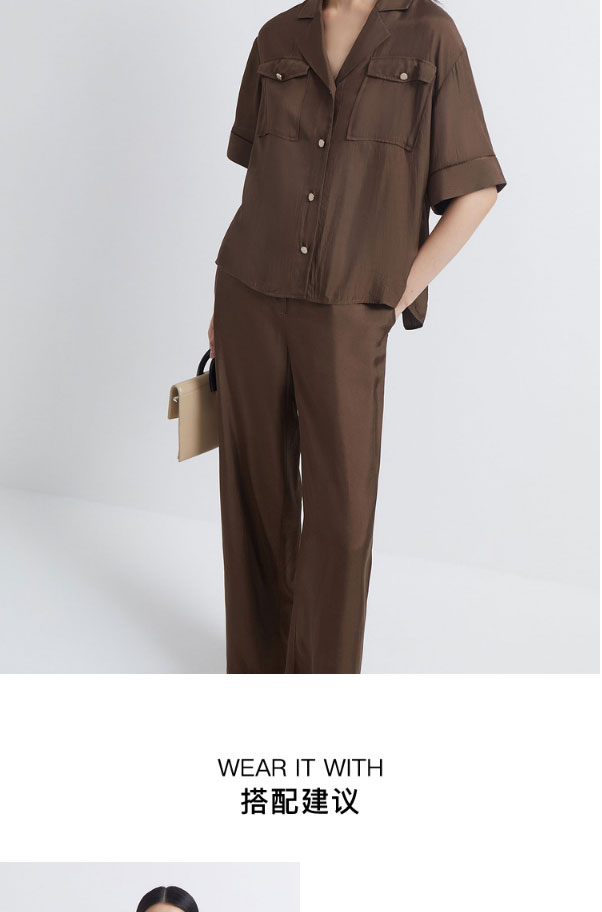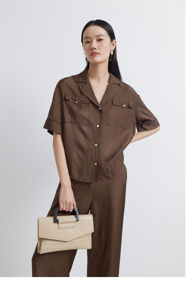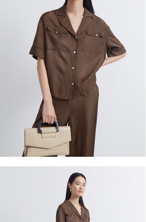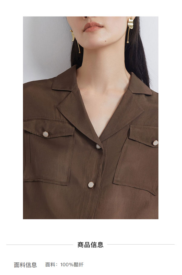INSUN恩裳2022夏季新品时尚微褶皱简约休闲舒适凉爽醋酸衬衫9C32230070
