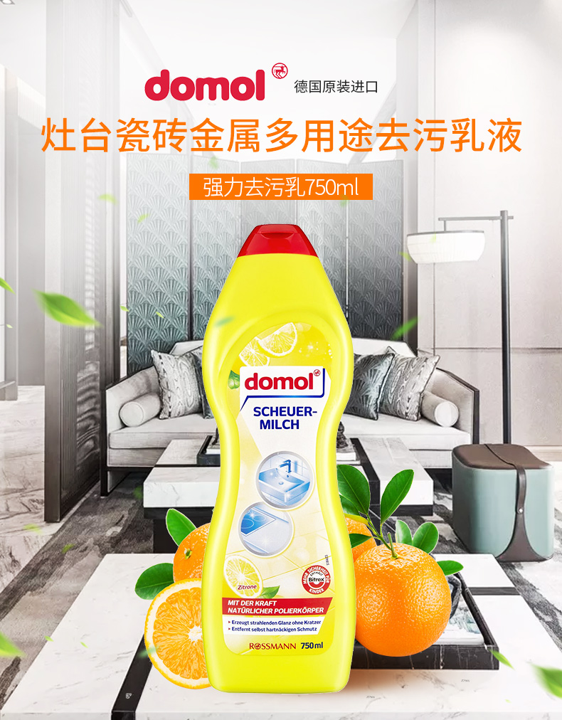 【中欧班列2瓶】德国domol去污乳液 原装进口ROSSMANN灶台瓷砖金属多用途去污乳液750ml/瓶
