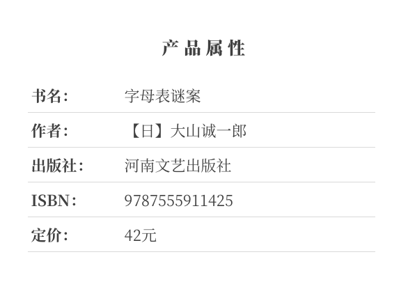 ◆《字母表谜案》让我从此一直追随大山老师,这本书对我的影响无可衡量。——阿津川辰海(推理小说作家)