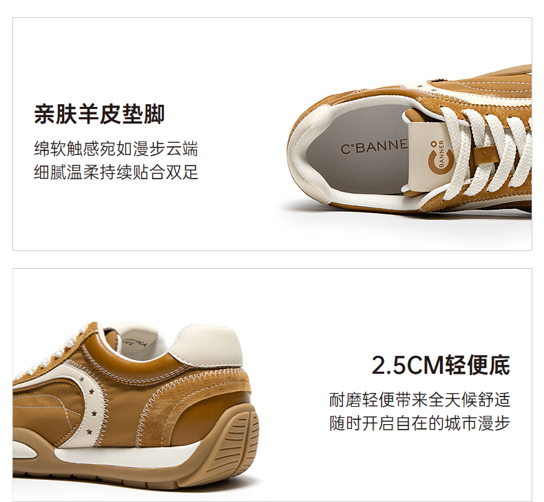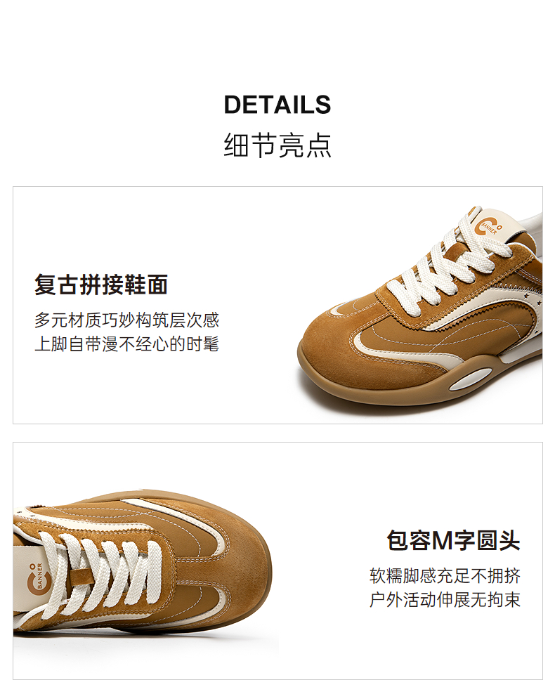 【上新】千百度复古双鞋带时尚休闲鞋女2026春季新款德训鞋运动鞋A26180721