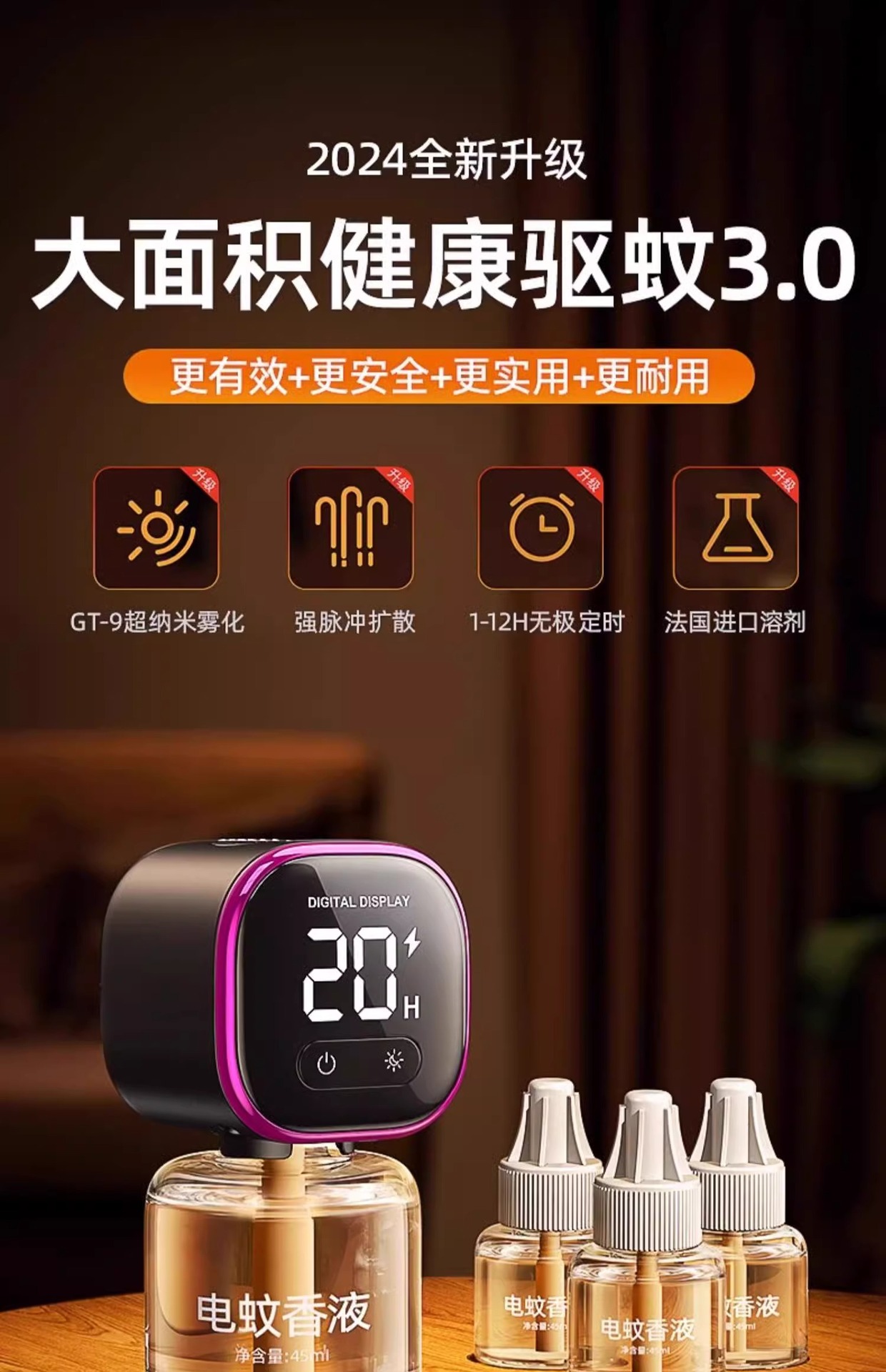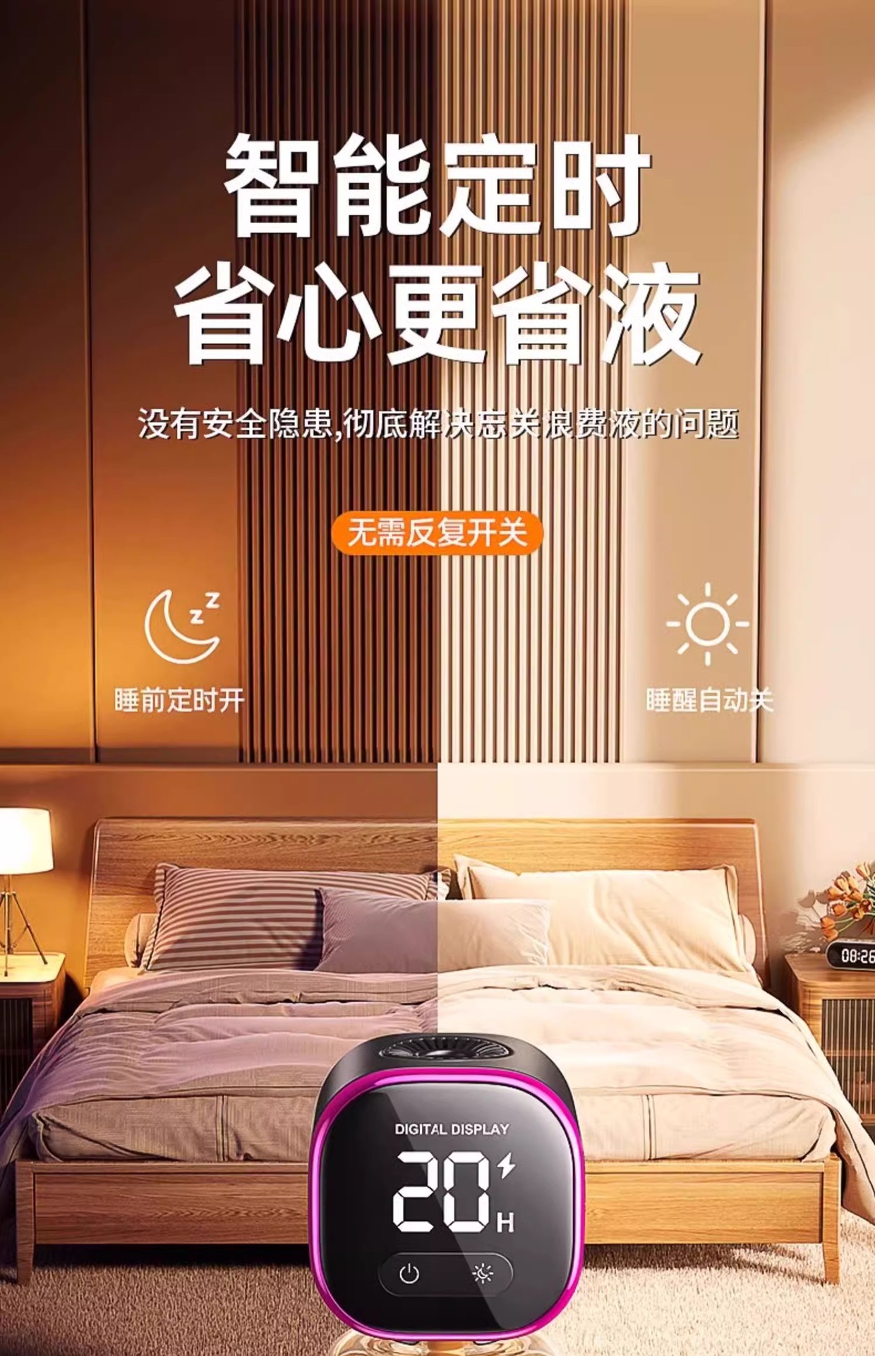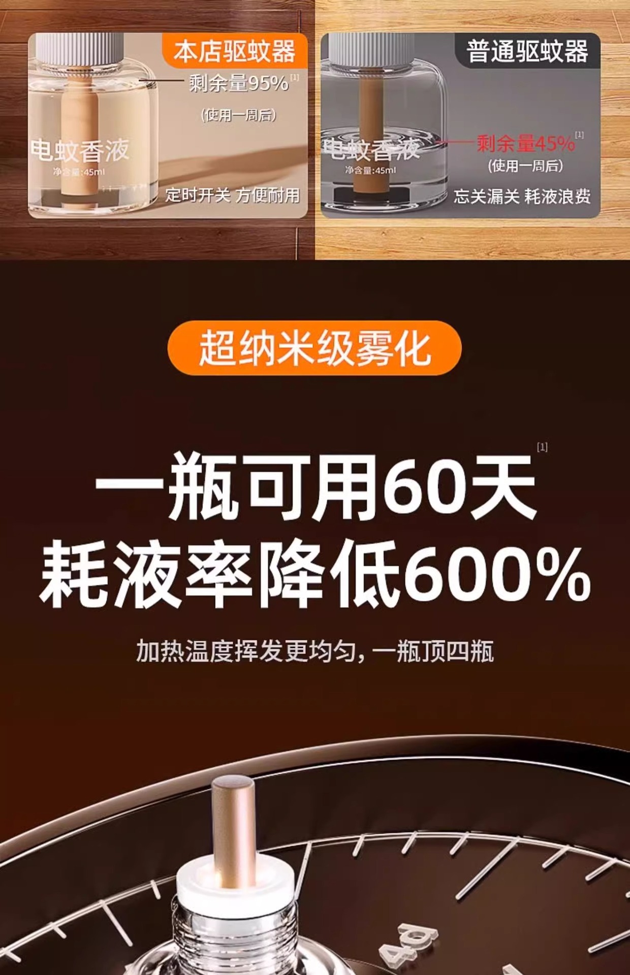 智能定时电蚊香液🔥进口成分+仿生防叮因子,🌙孕婴可用!无忧驱蚊🦟电蚊香液加热器 驱蚊防蚊定时智能无毒无味家用插电式驱蚊器