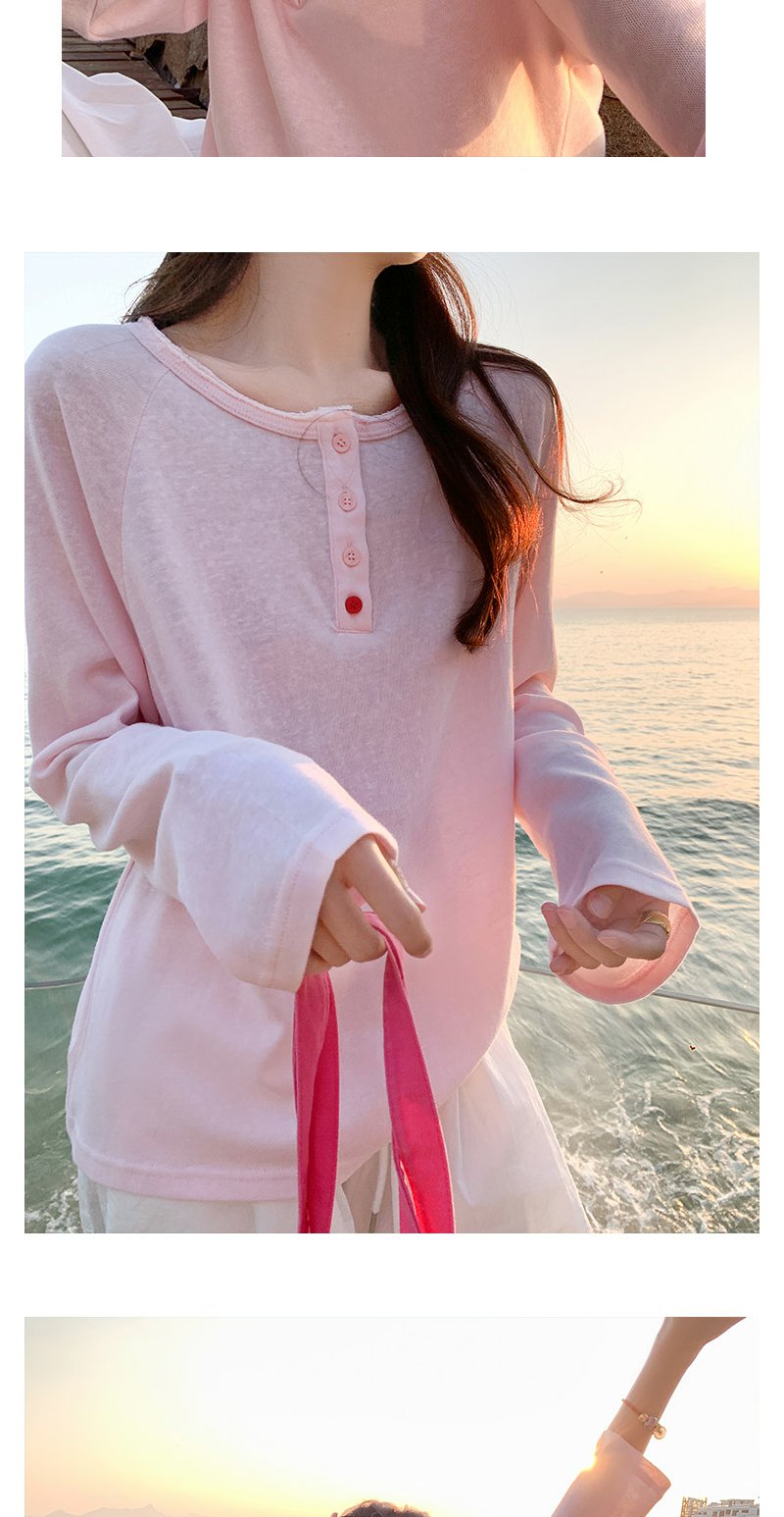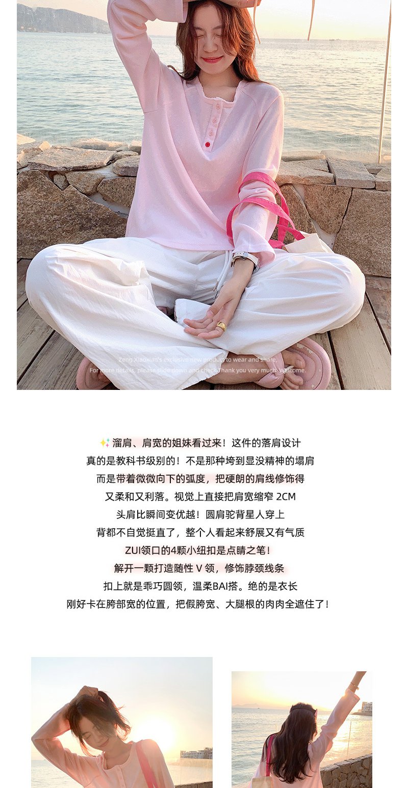 <曾小咸推荐>粉红色甜美宽松长袖t恤上衣