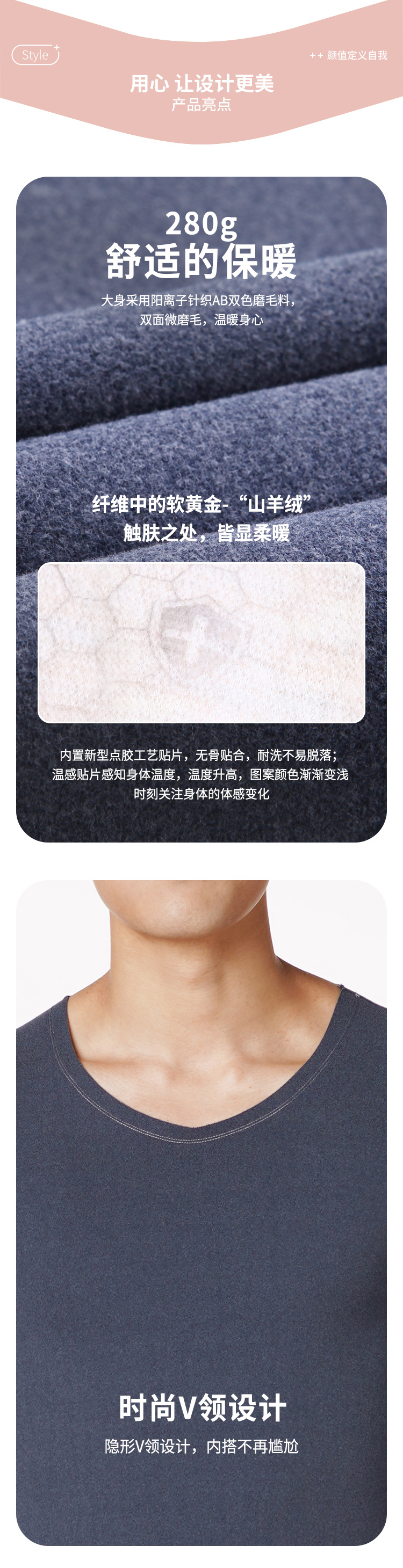 都市丽人都市锋尚舒暖负5度至5度男士特殊面料套装阳离子山羊绒贴片中套装保暖衣FW21B6