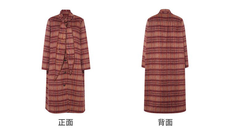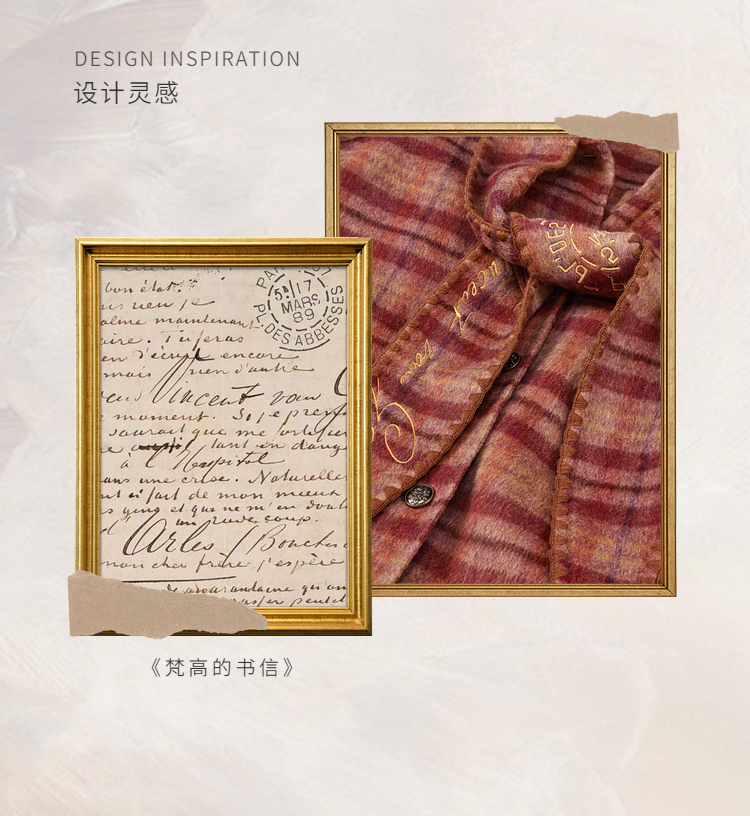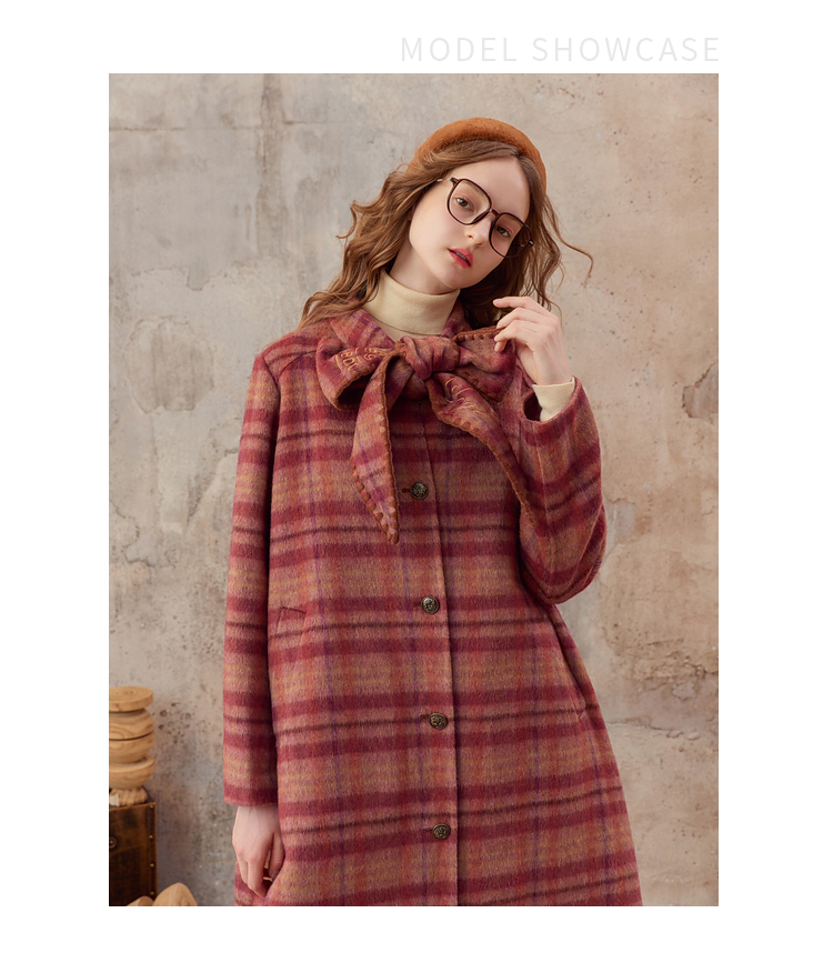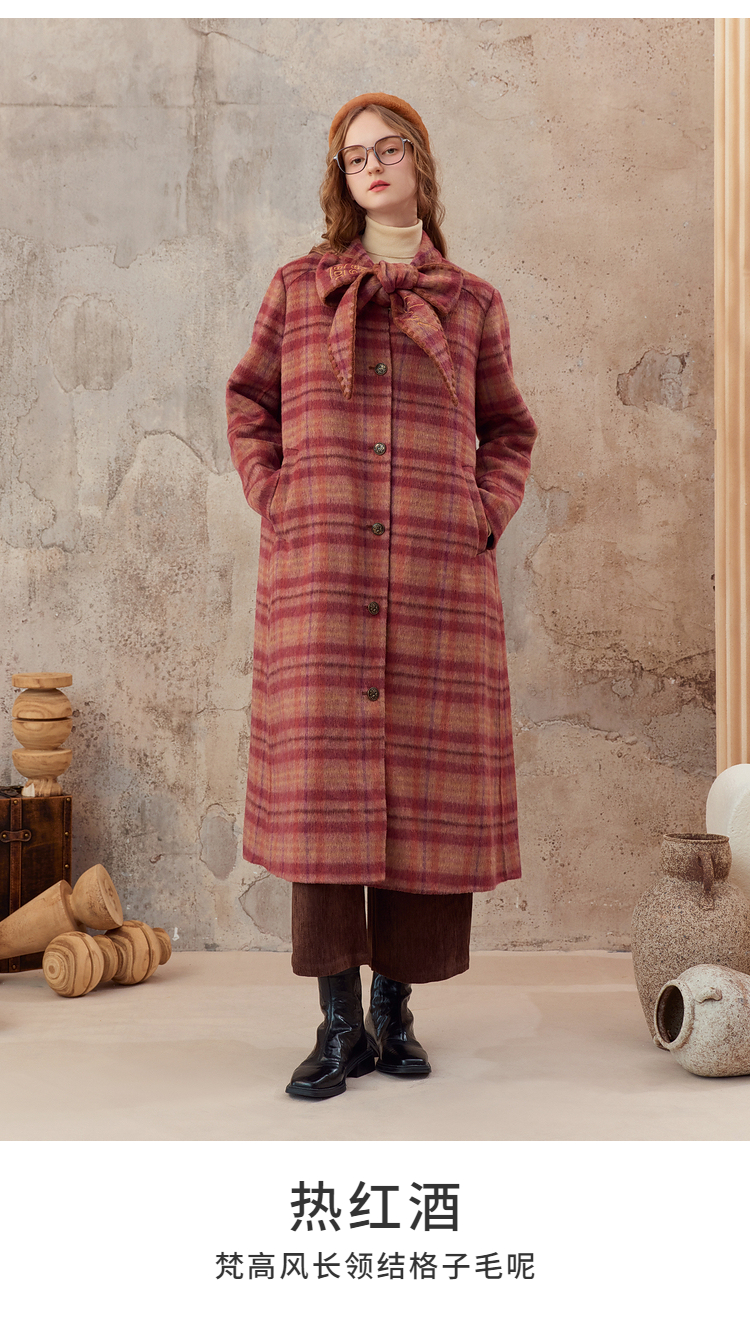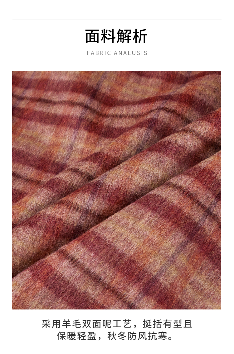 【暖冬内购】两三事梵高文艺 热红酒 2025秋冬新款刺绣围巾领格子毛呢外套女