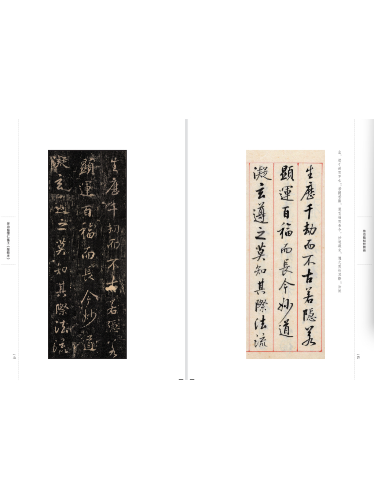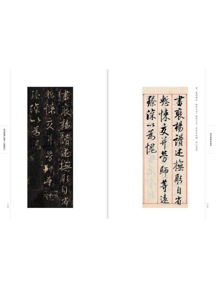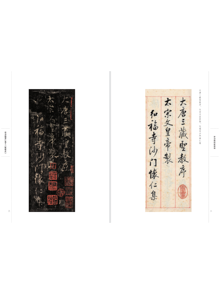 启功先生谈学书法为什么要临帖:“所谓临帖,就是以碑帖或别的法书为榜样,来对照着摹仿、练习,它是学习书法的必由之路。任何一种艺术,都有其本身固有的法则和规律,都有表现其艺术效果的技巧和方法。因此,在临帖时既要动手又要动脑,特别要注意分析、研究法帖在结字和用笔方面的特点和规律。” 本丛书通过将启功先生的临帖作品和古人原帖进行比照排版,使读者能清晰看出启功先生临帖的特点是既忠于原贴的法度和精髓又融入自己对法帖的理解和感悟,从而使读者在学习和临摹古代碑帖时,认真动脑,掌握规律,探寻临帖的方法和技巧。本册为启功临怀仁集王《圣教序》
