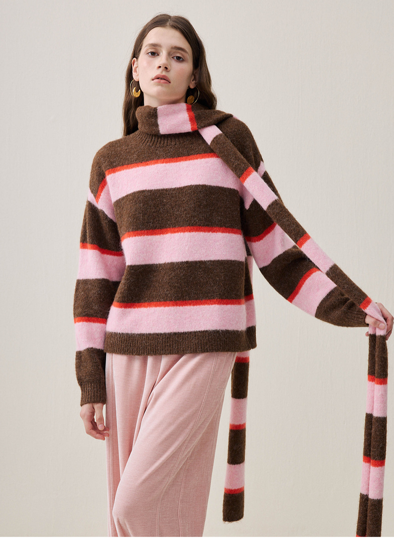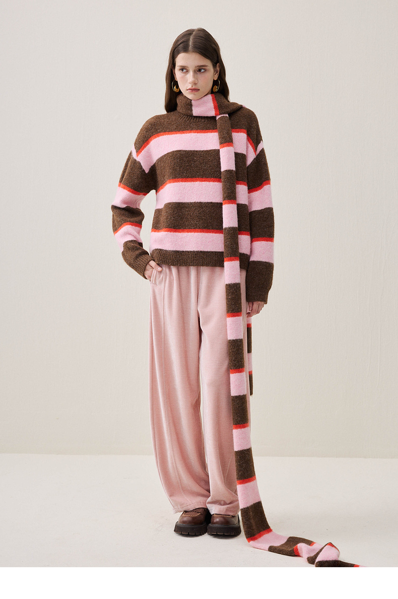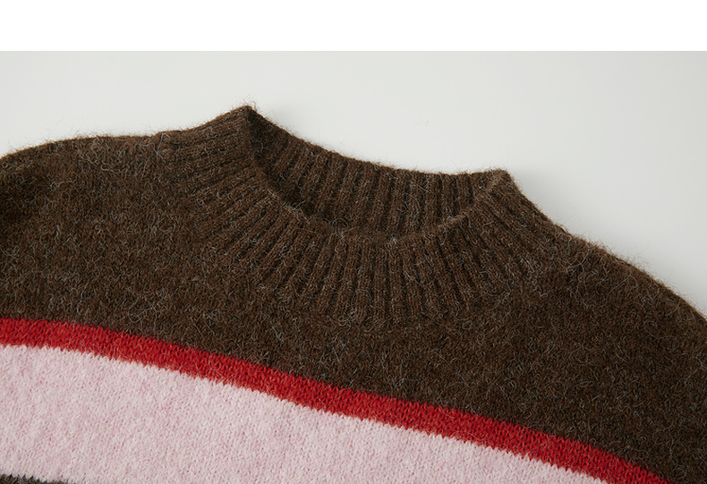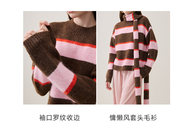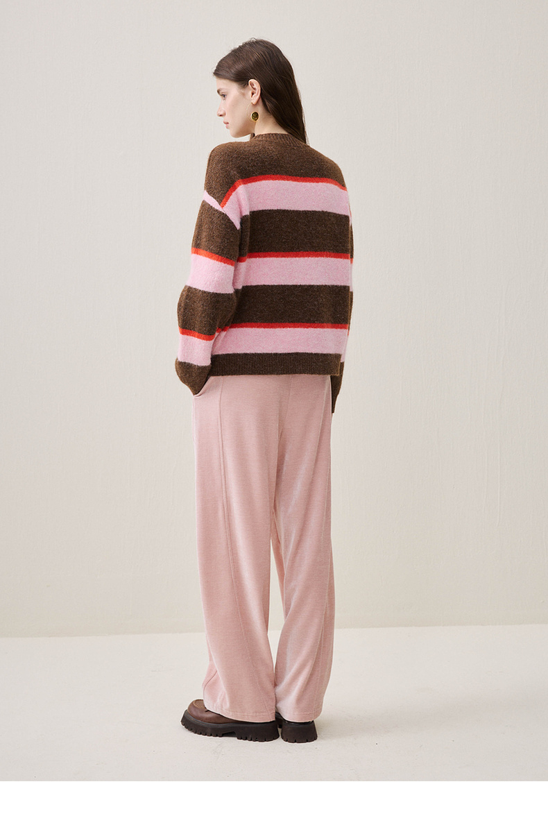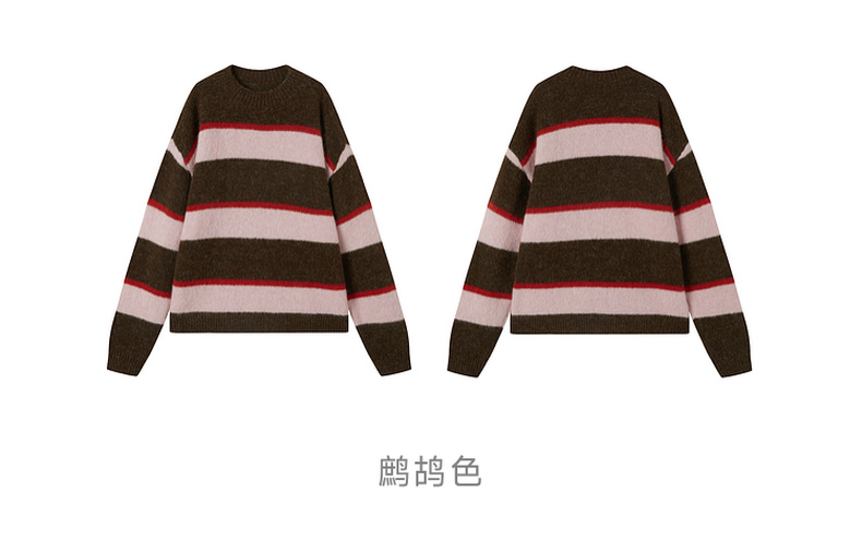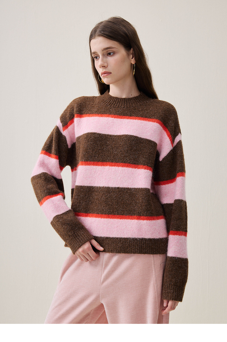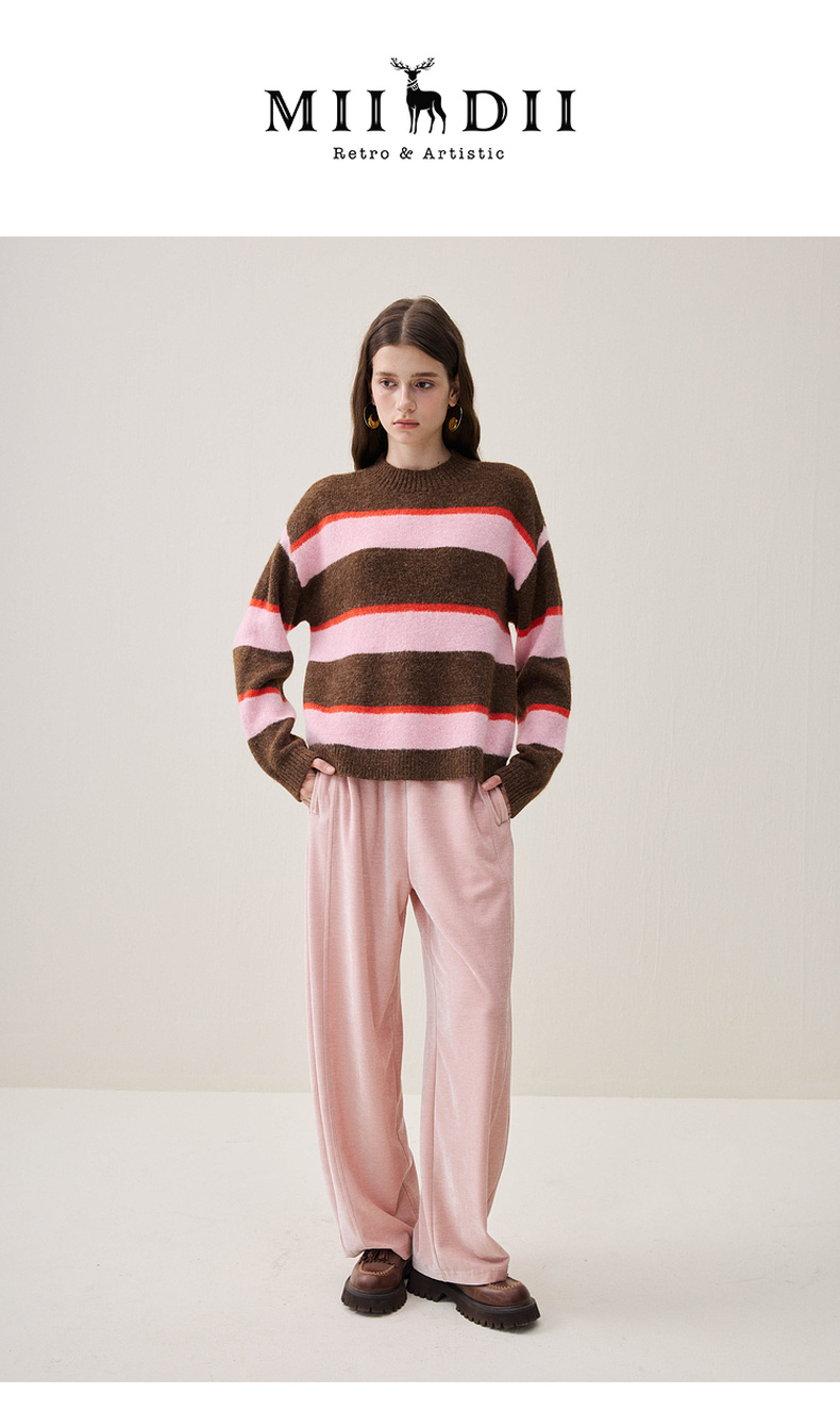 谜底圆领套头针织衫长袖2025年冬季新品宽松条纹亲肤女254MZ1906