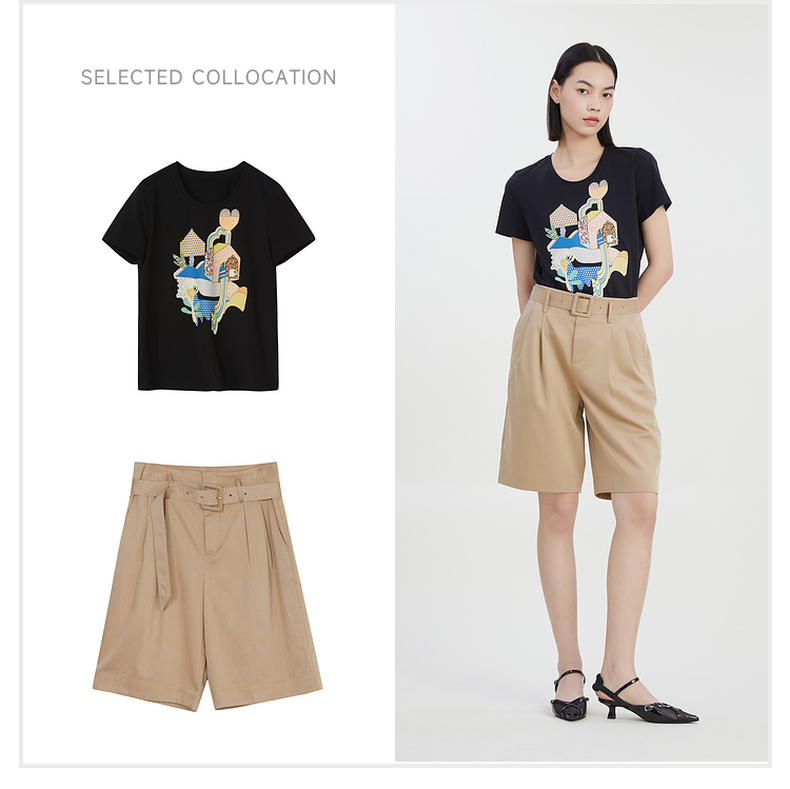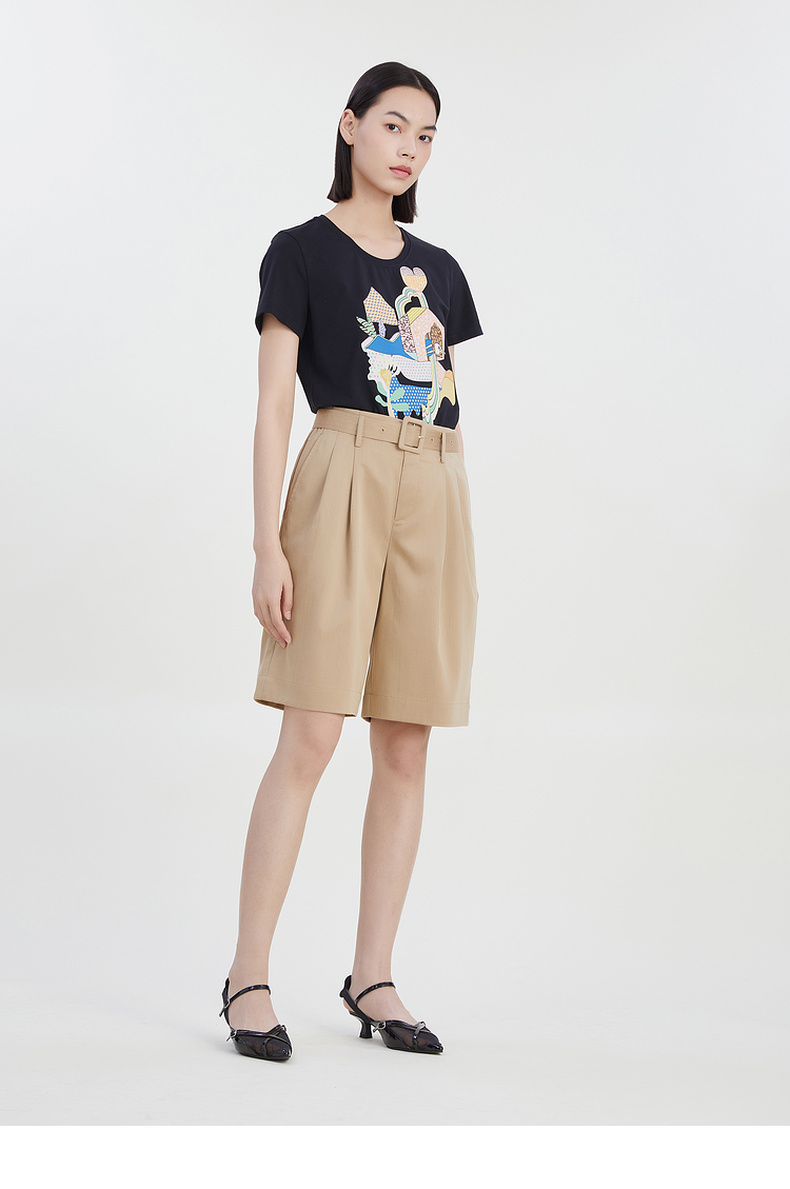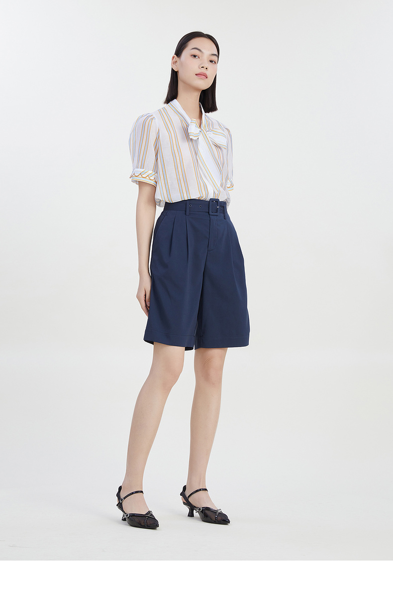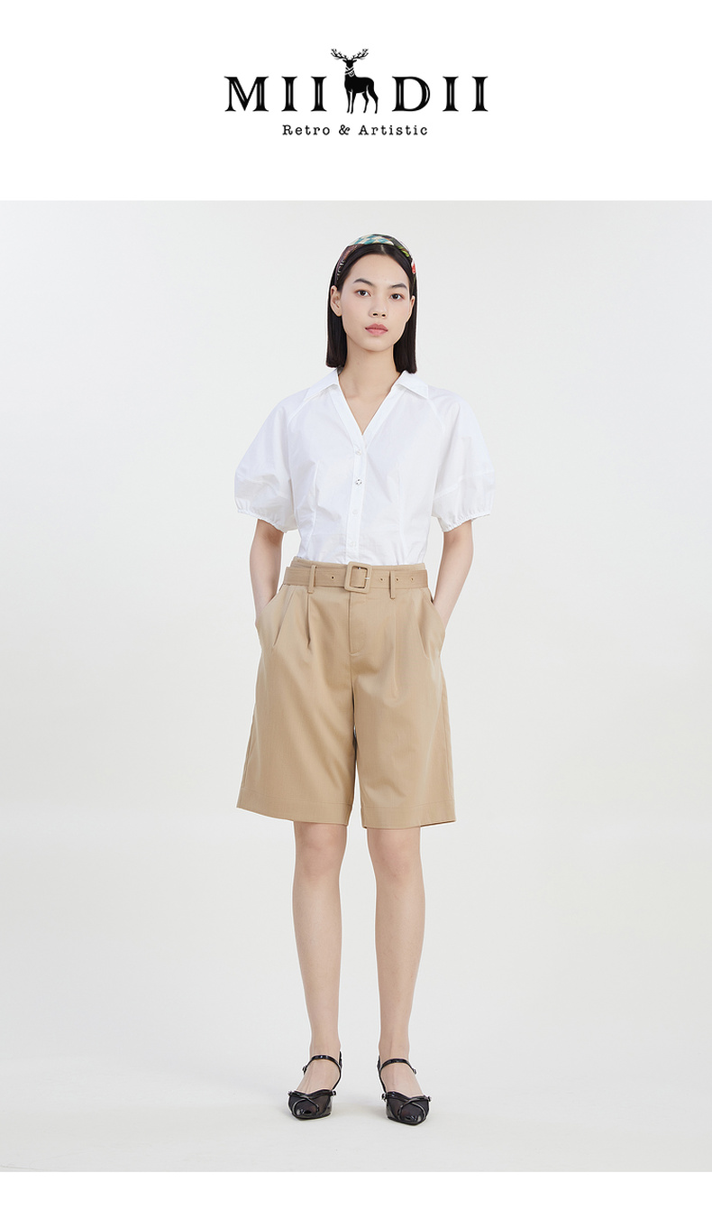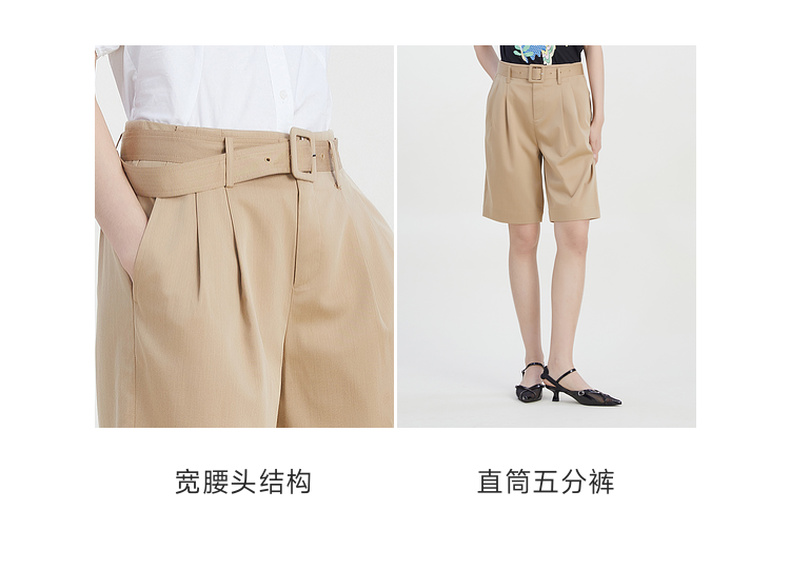 谜底2023夏季新款宽松休闲短裤时尚西裤五分裤配腰带女232MK0507