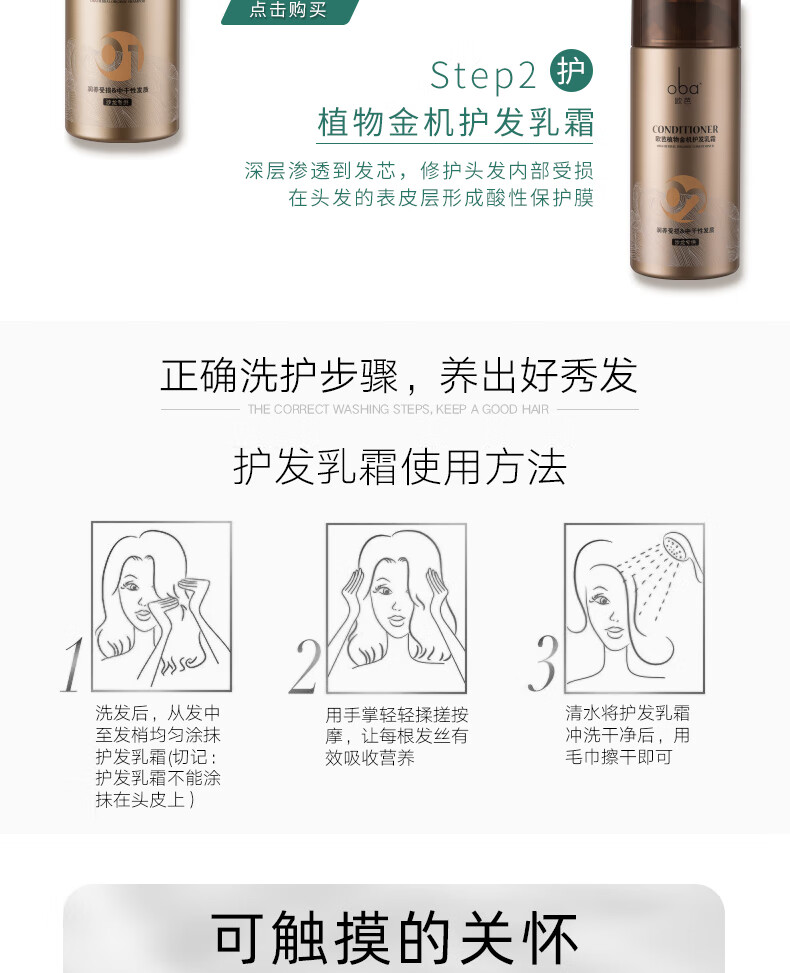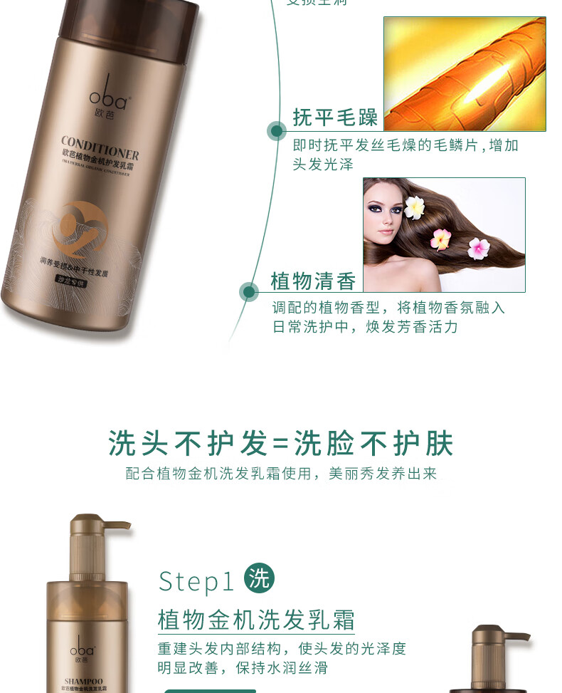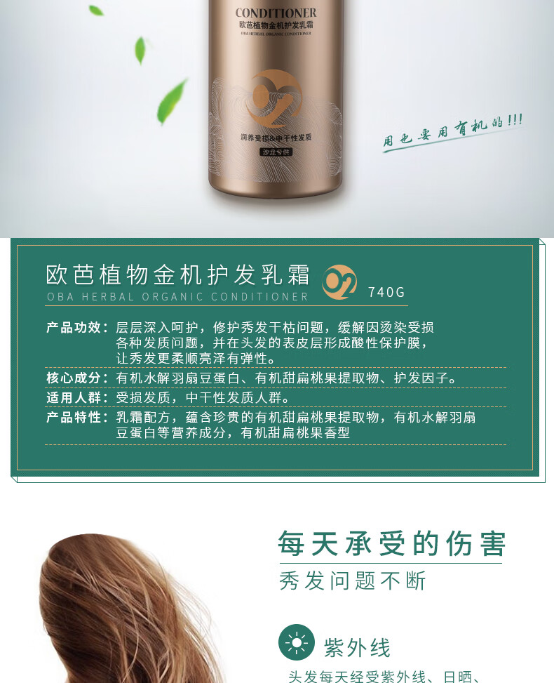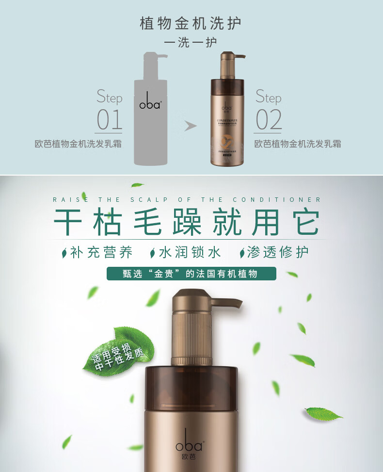 欧芭(oba)植物金机护发乳霜02护发素营养滋润干枯烫染受损补水顺滑欧740g