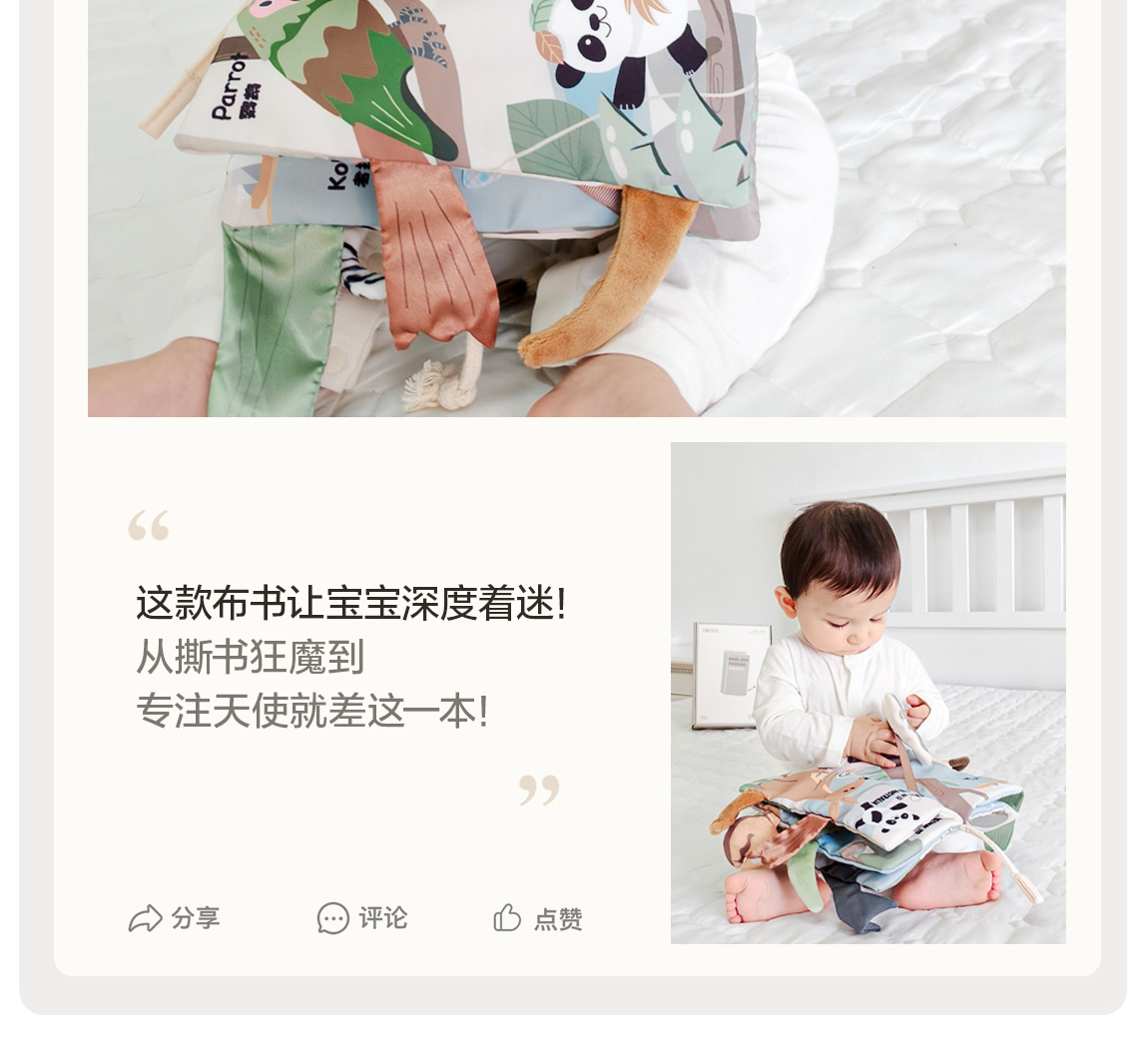 【限时秒杀~】贝易尾巴布书婴儿早教撕不烂可啃咬3个月以上宝宝认知益智玩具