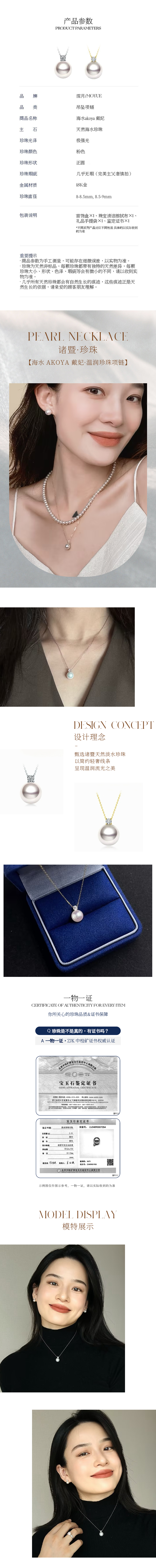 【女神节首选】akoya戴妃特选吊坠 珍珠分级师一对一挑选 18K链条 极强光正圆 诸暨直发 一物一证 假一赔十 下单即送珍珠粉!