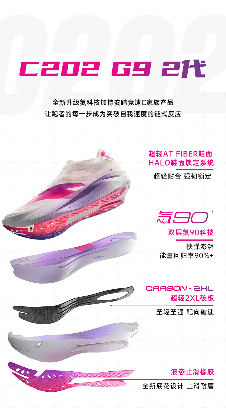 安踏C202 G9 2代丨专业竞速马拉松缓震跑鞋女新款运动鞋122545573