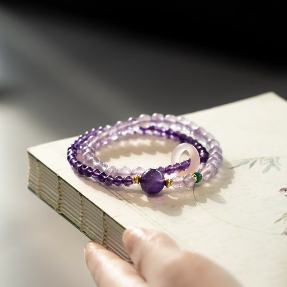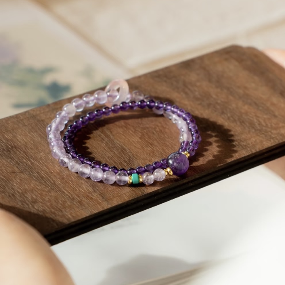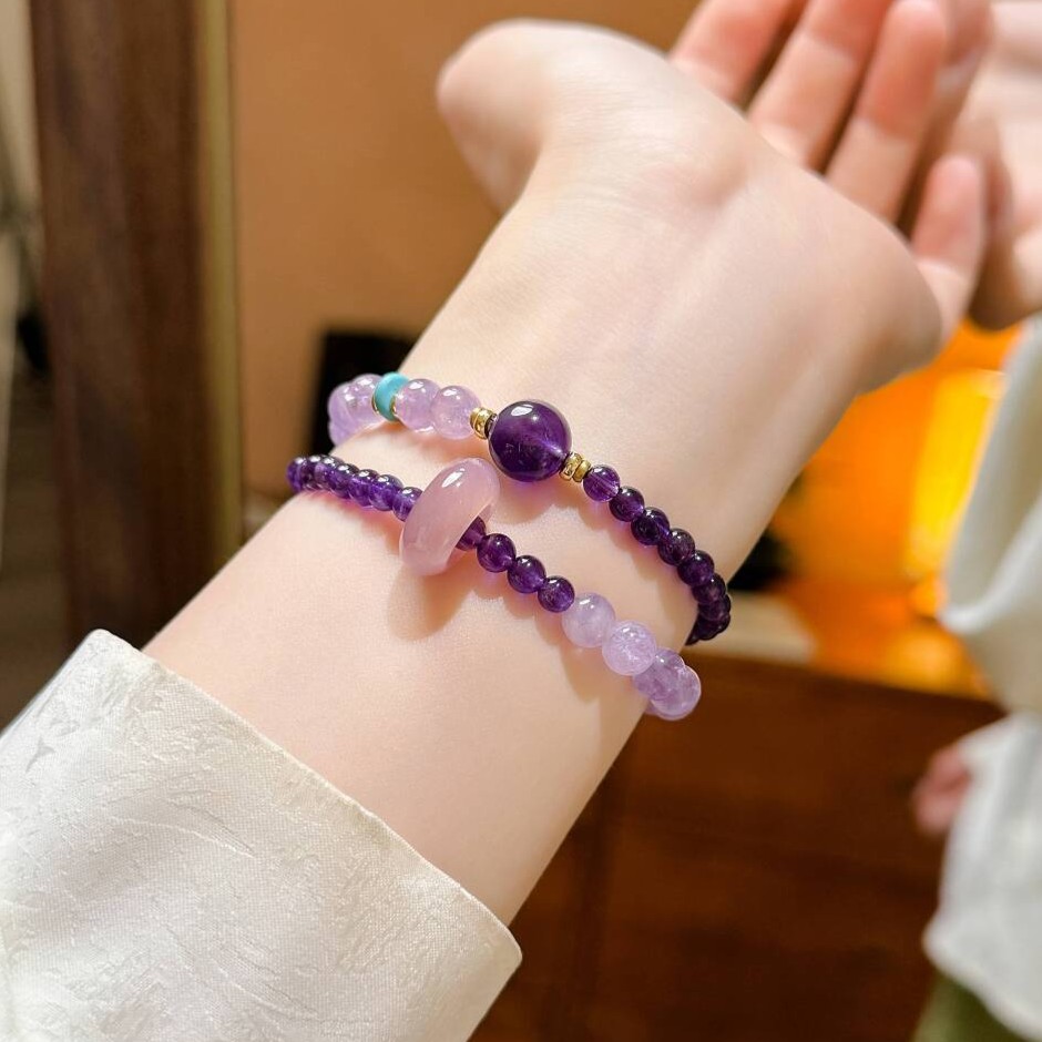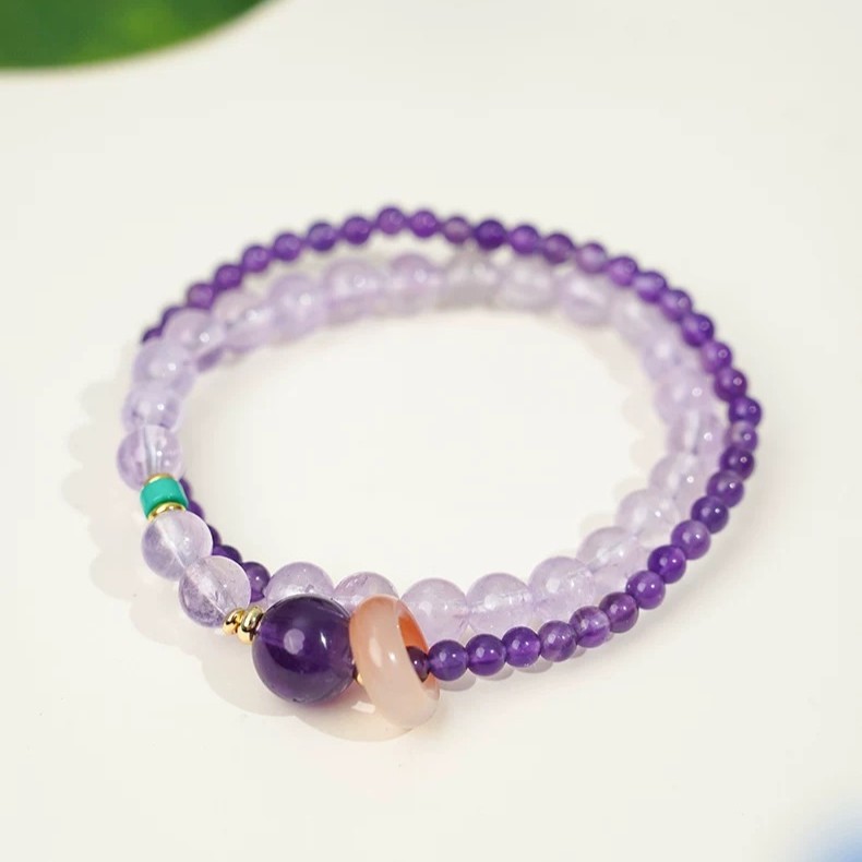 【紫水晶双圈手串】敦煌福泽南红玛瑙双圈手串女 天然紫水晶好运珠叠戴手链新中式国潮礼物
