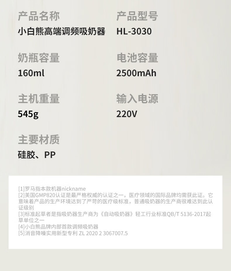 小白熊 电动吸奶器 罗马双边电动吸奶器HL-3030