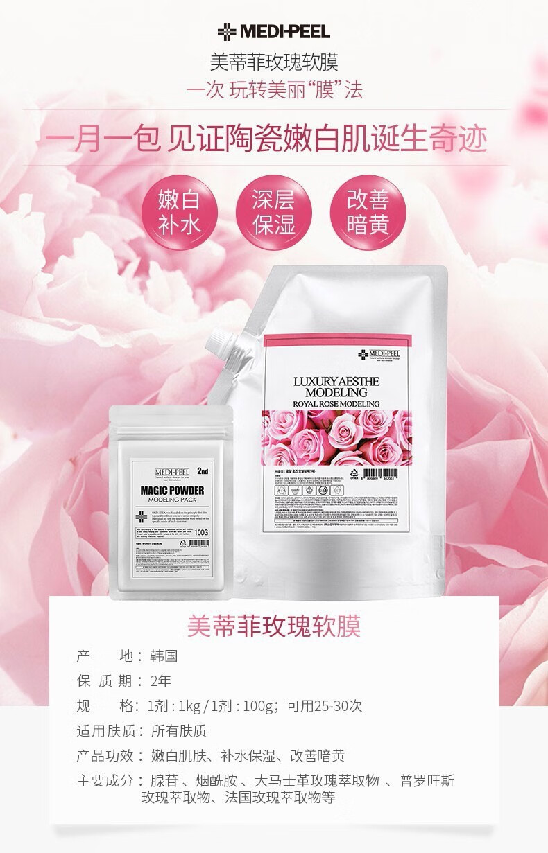 美蒂菲(MEDI-PEEL)玫瑰凝胶软膜 玫瑰软膜粉1kg+面膜粉100g
