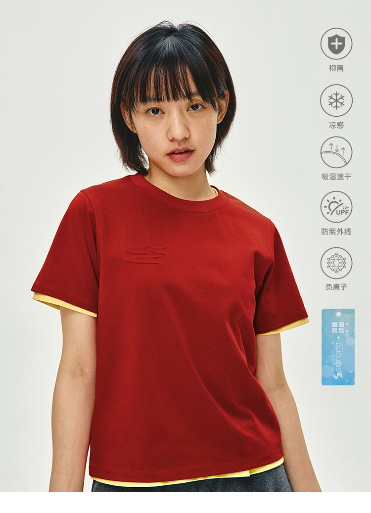 CryingCenter 正肩宽松短身凉感显瘦简约干抑菌棉短袖浓郁色女款