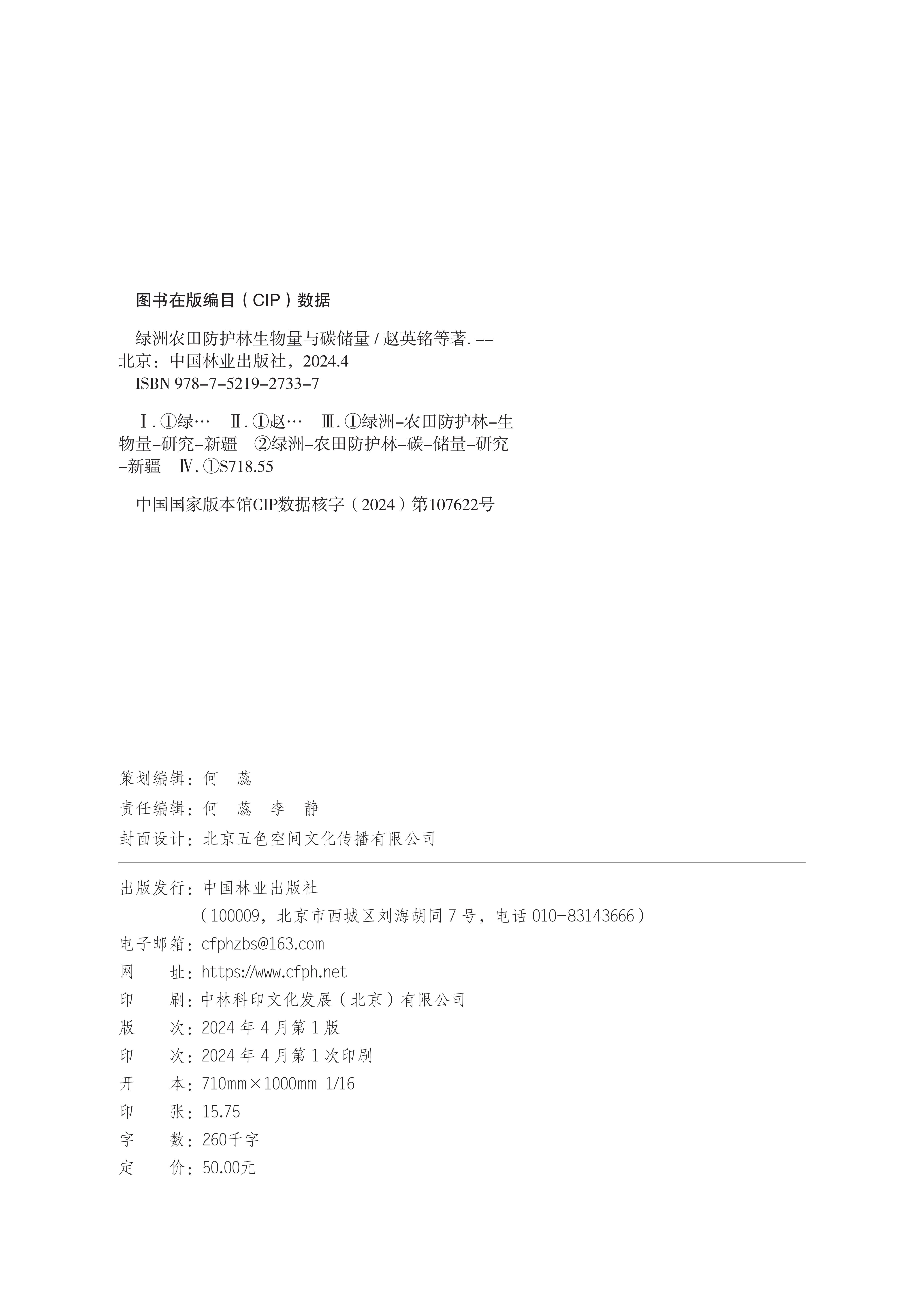 绿洲农田防护林生物量与碳储量 / 赵英铭等著. 中国林业出版社 2733