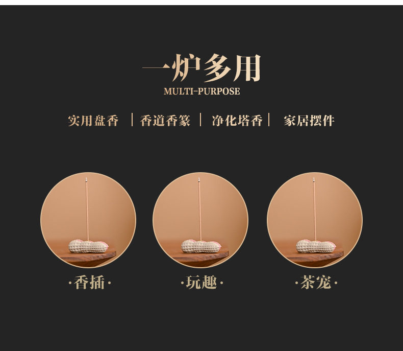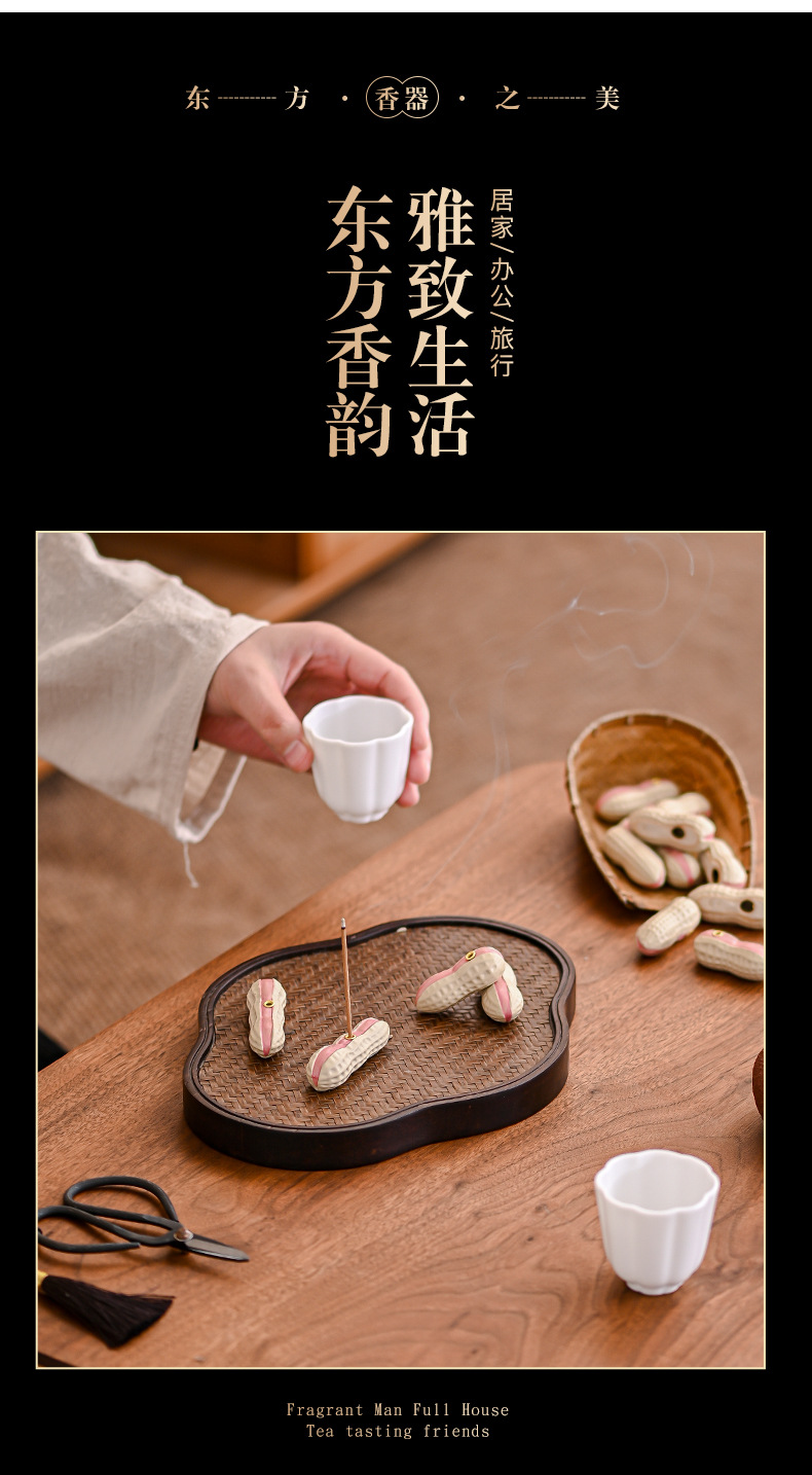 【敦煌花生迷你香插】敦煌好事花生香插家用室内线香底座中式茶桌摆件沉香檀香线香插