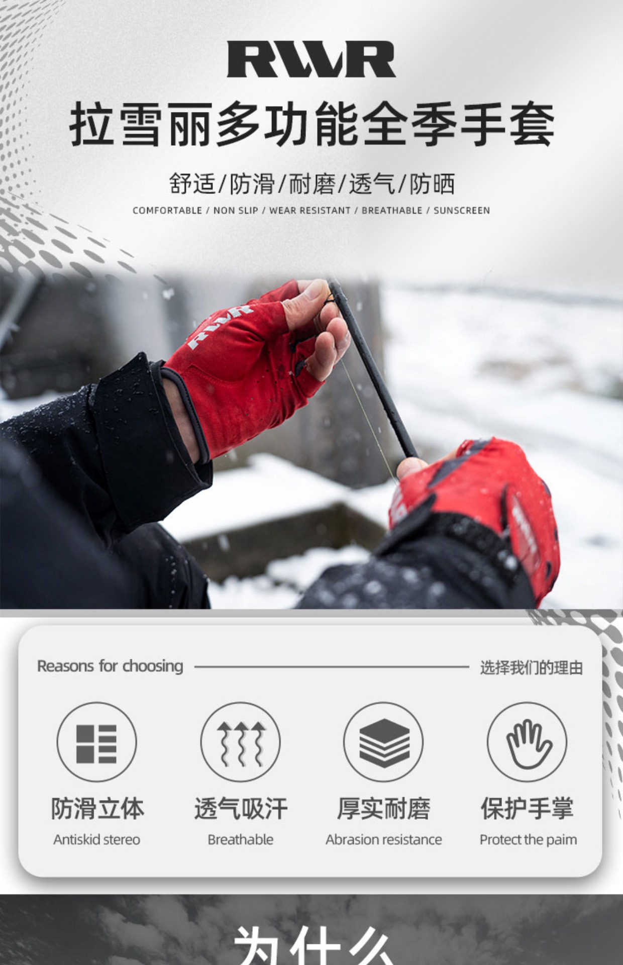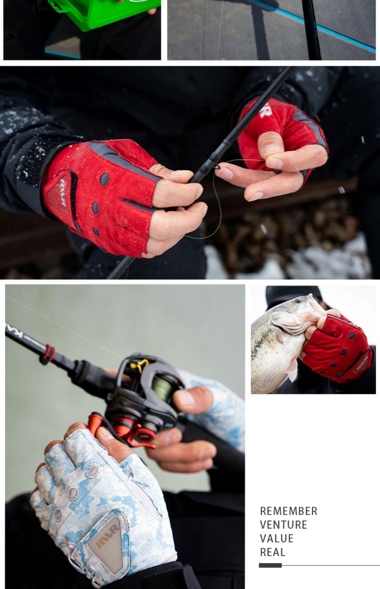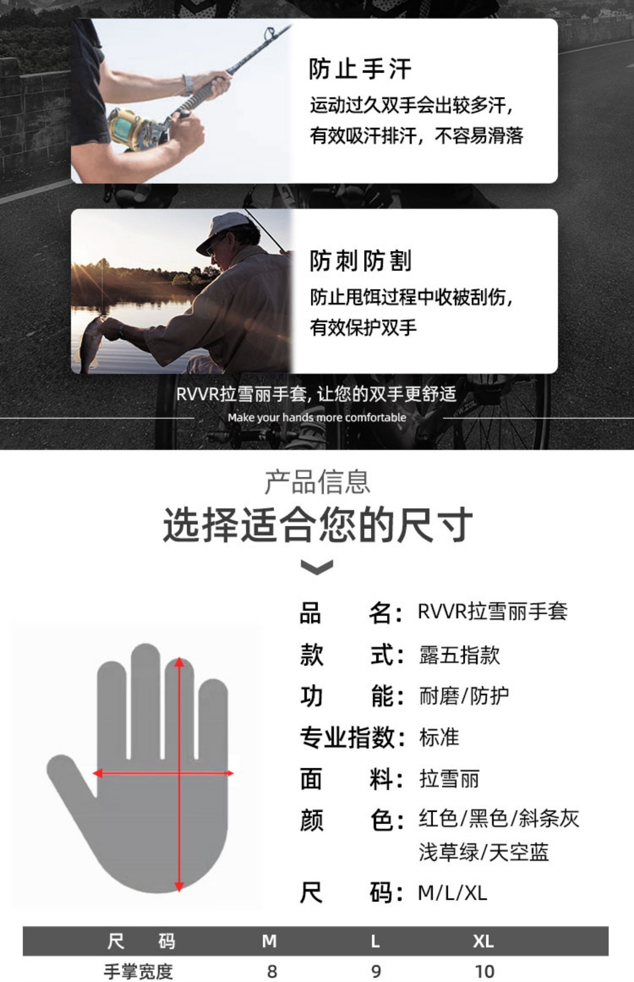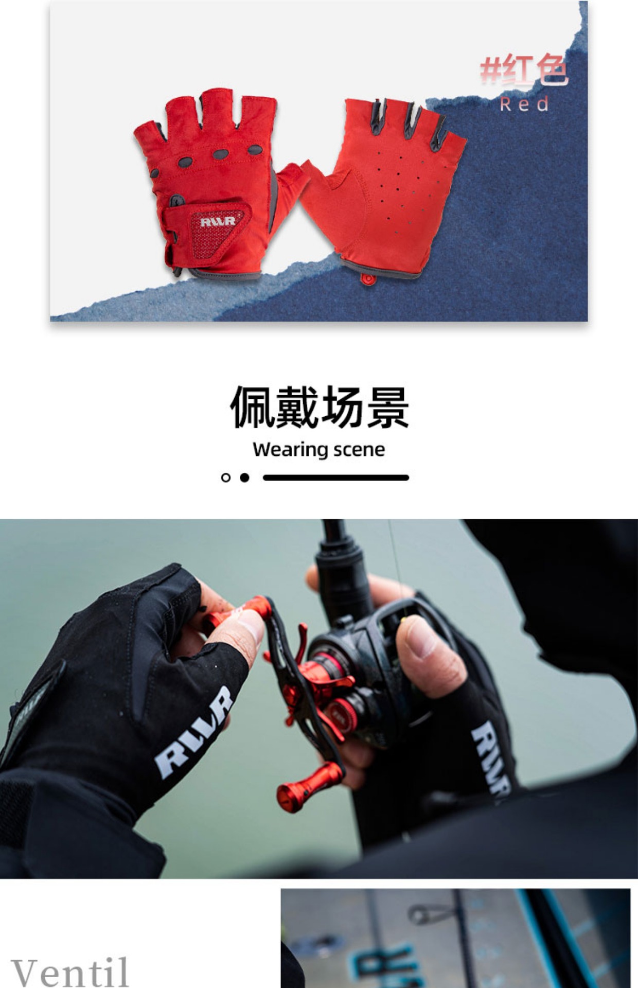 2022新款RVVR钓鱼手套露五指三指路亚手套透气抓鱼防滑垂钓手套