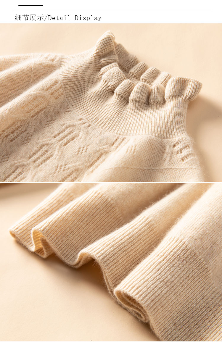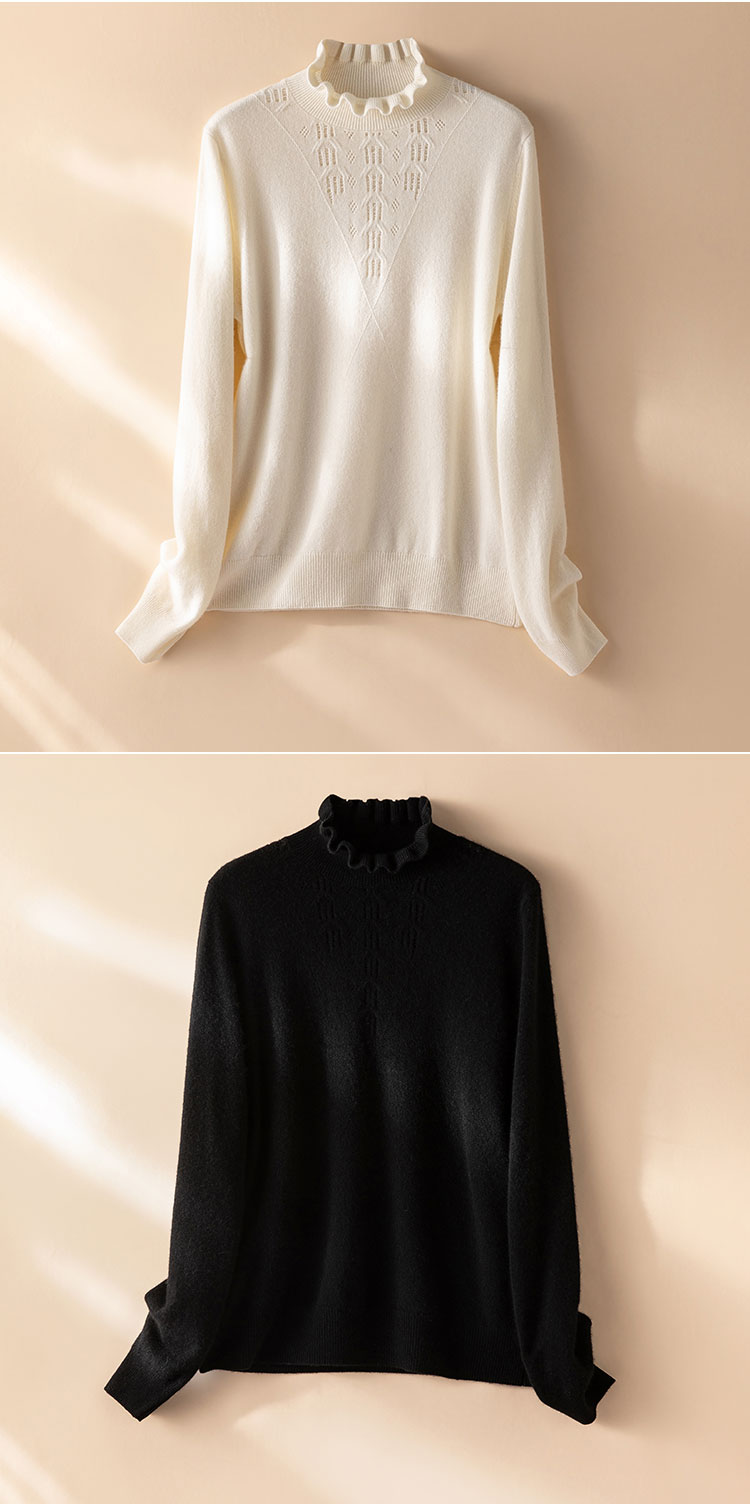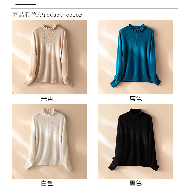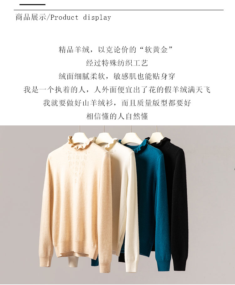 浅浅清露~山羊绒软糯木耳花边气质半高领针织打底衫女上衣R25093