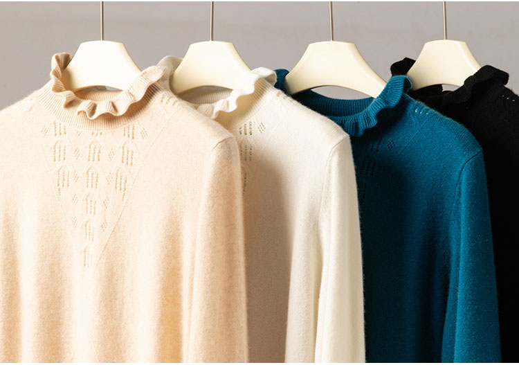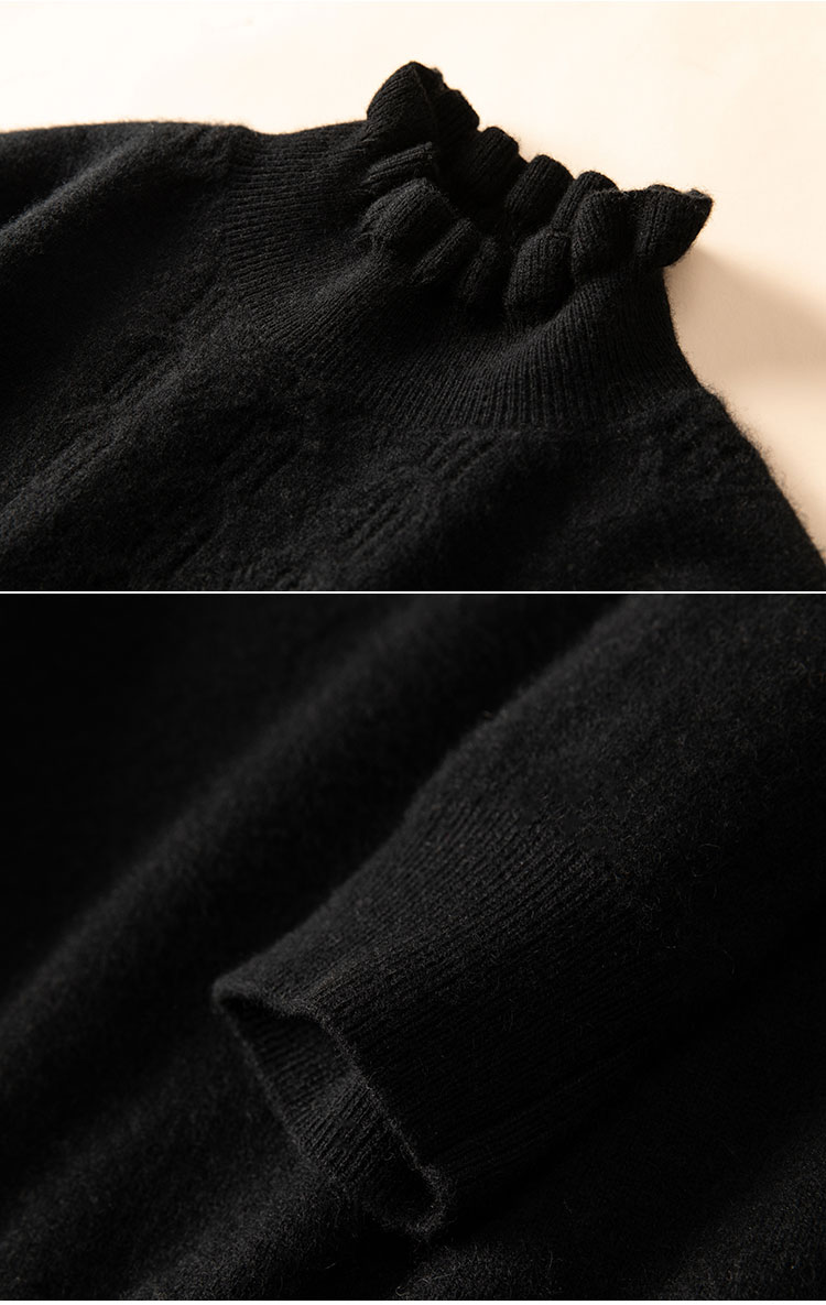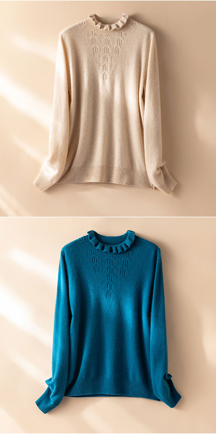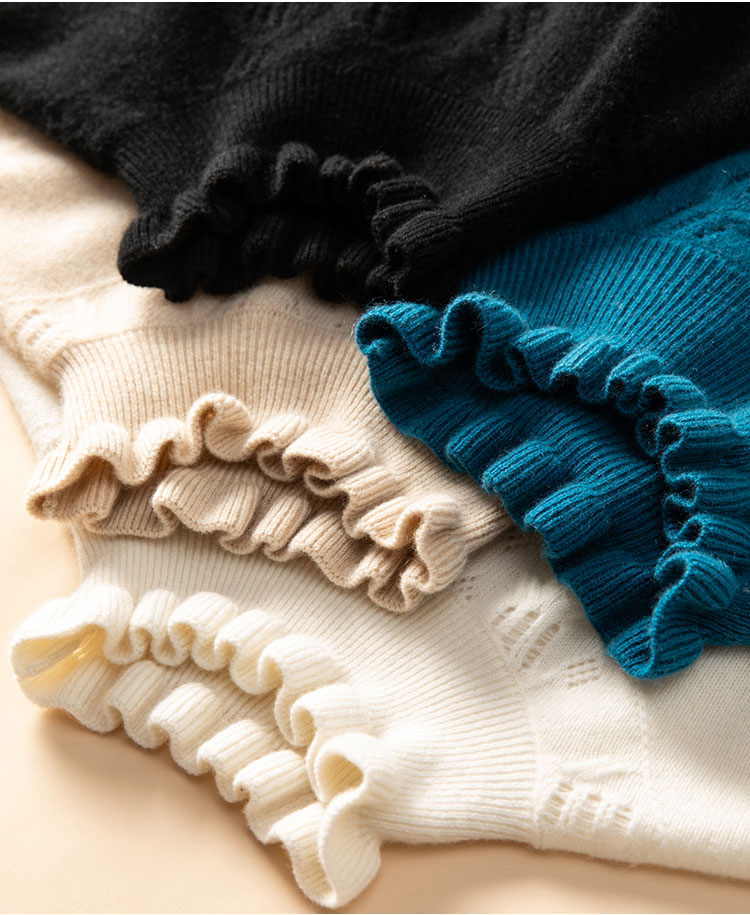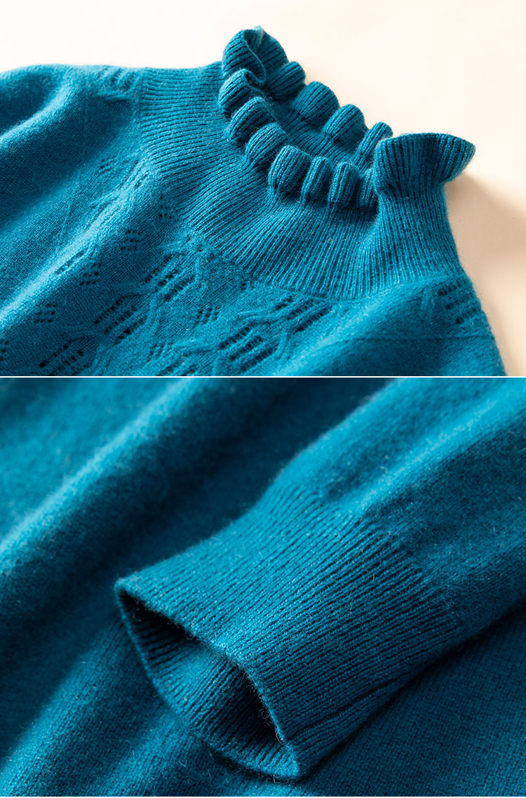 浅浅清露~山羊绒软糯木耳花边气质半高领针织打底衫女上衣R25093