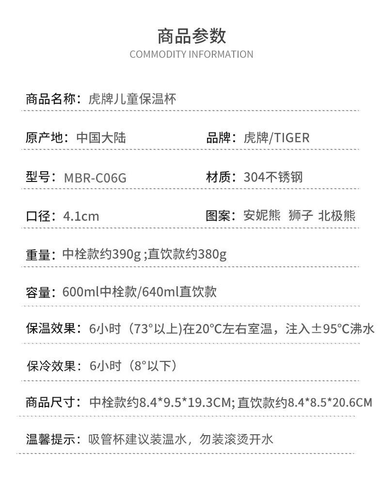TIGER 虎牌 儿童保温杯 MBR-C06(北极熊)