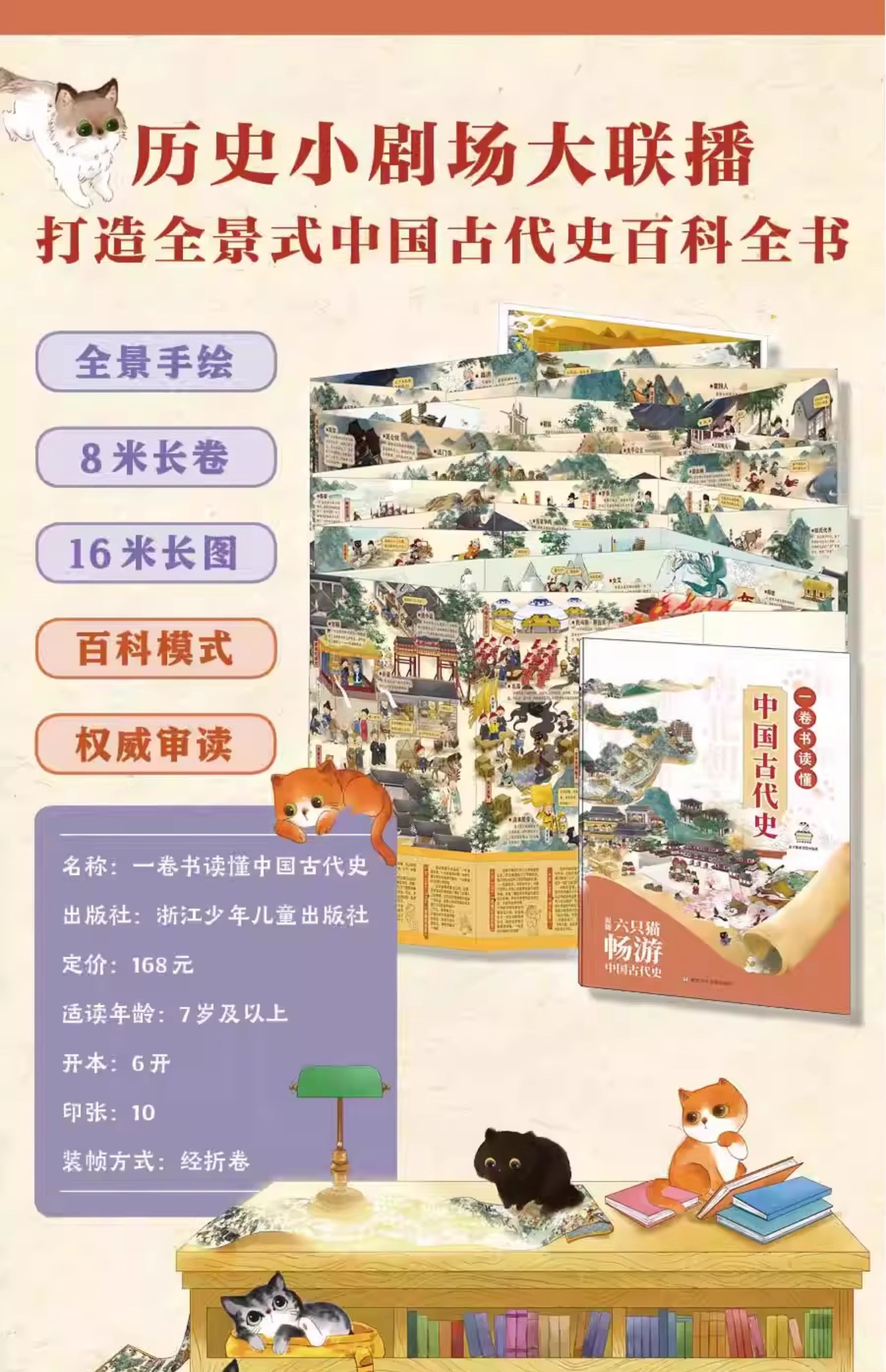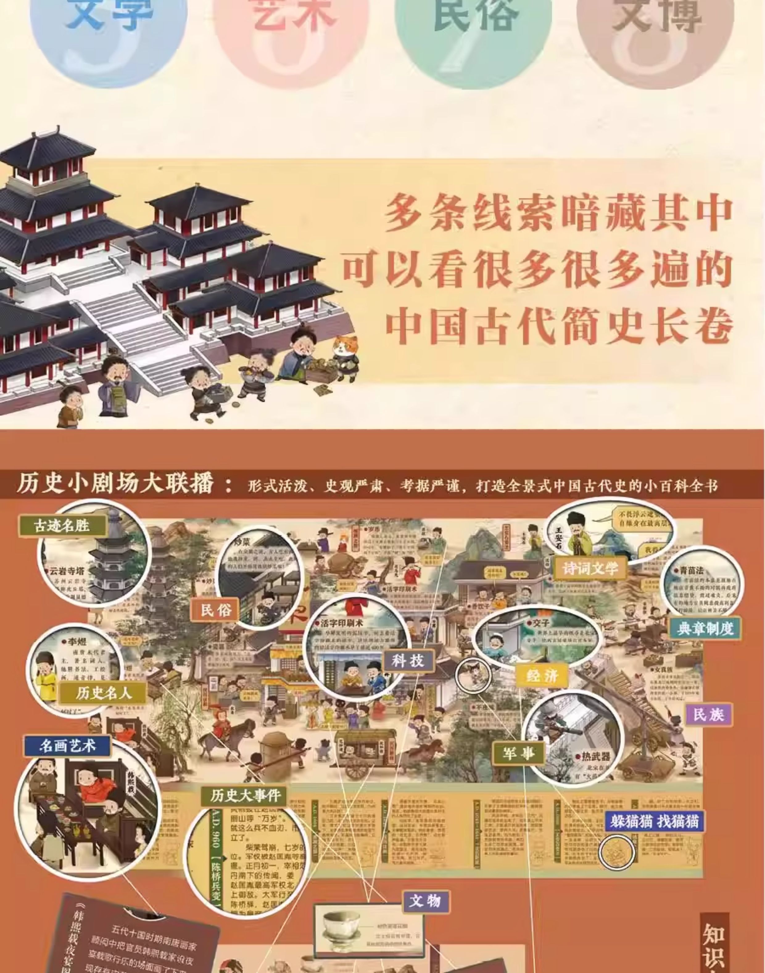 《一卷书读懂中国古代史》 7-15岁 正反面图共长16米 赠中国历史年表+古代史小百科知识卡 选取了近160个历史大事件作为坐标 融合了近四百条文史知识 呼吁大语文素质培养