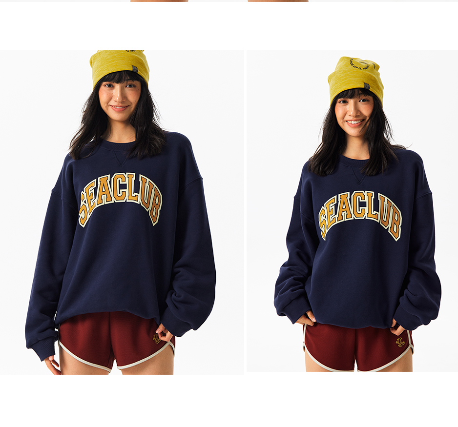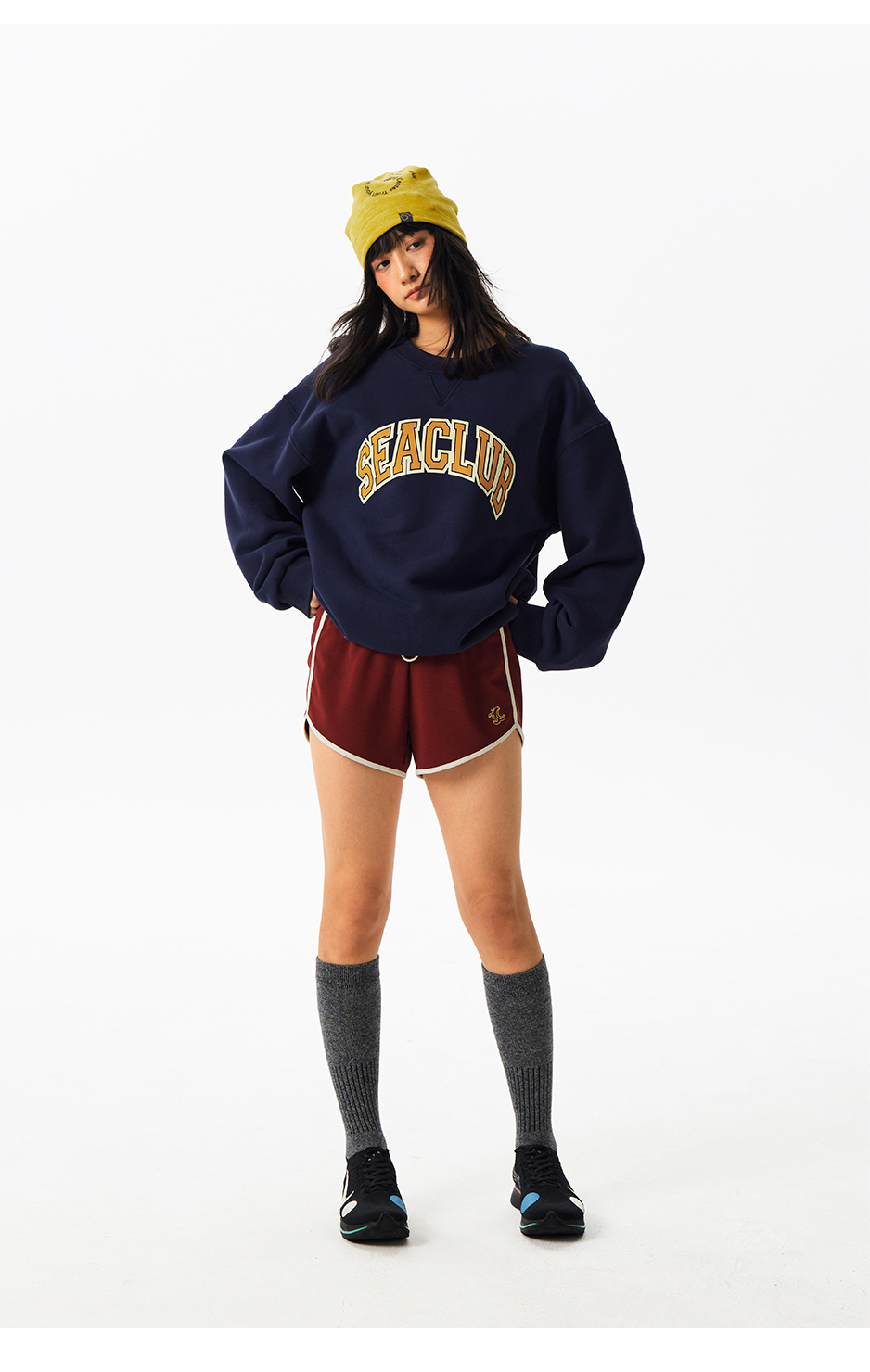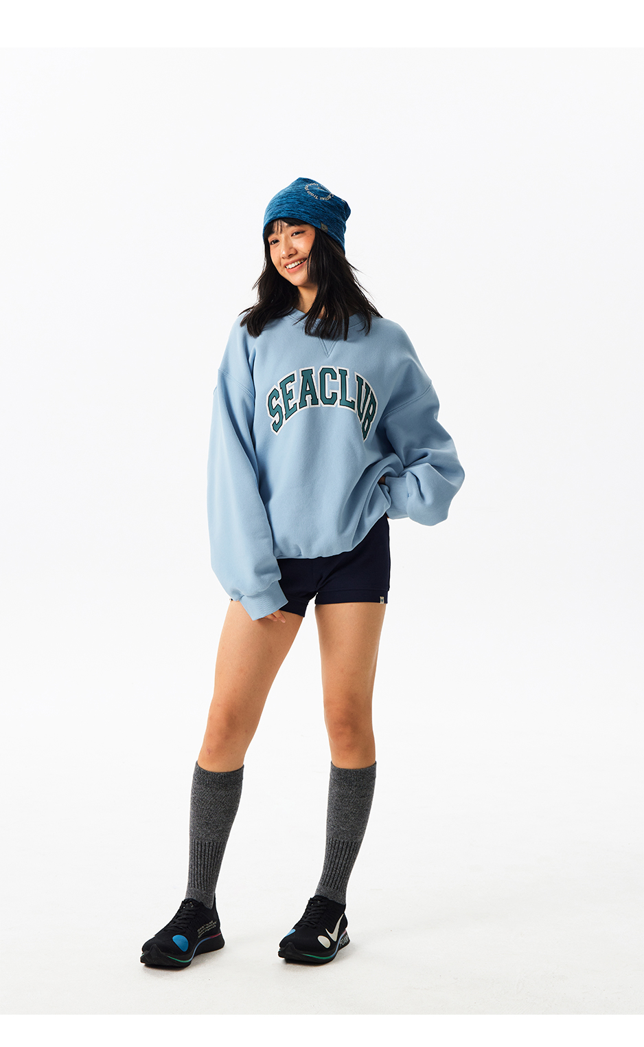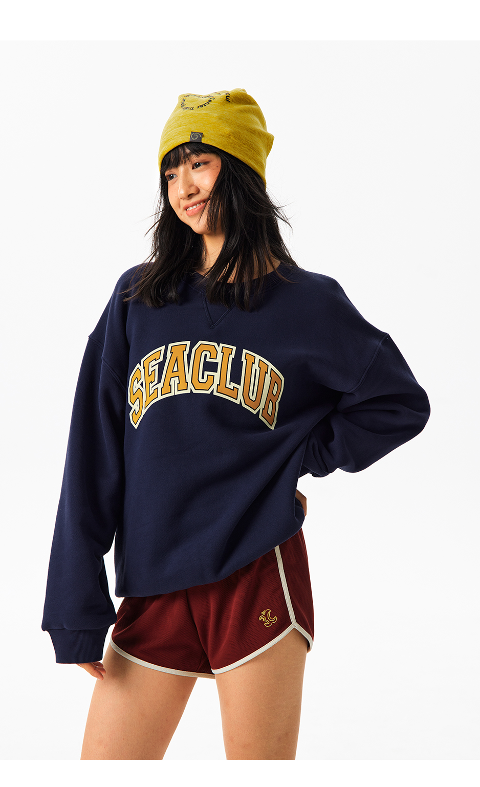 CryingCenter 复古SEACLUB字母舒适摇粒绒圆领加绒卫衣 男女款