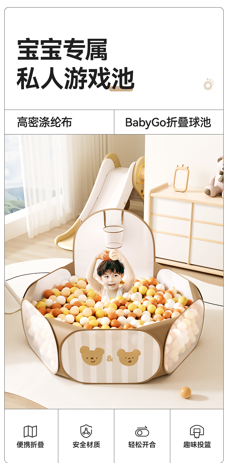【BG】babygo宝宝海洋球池可折叠婴儿玩球球池
