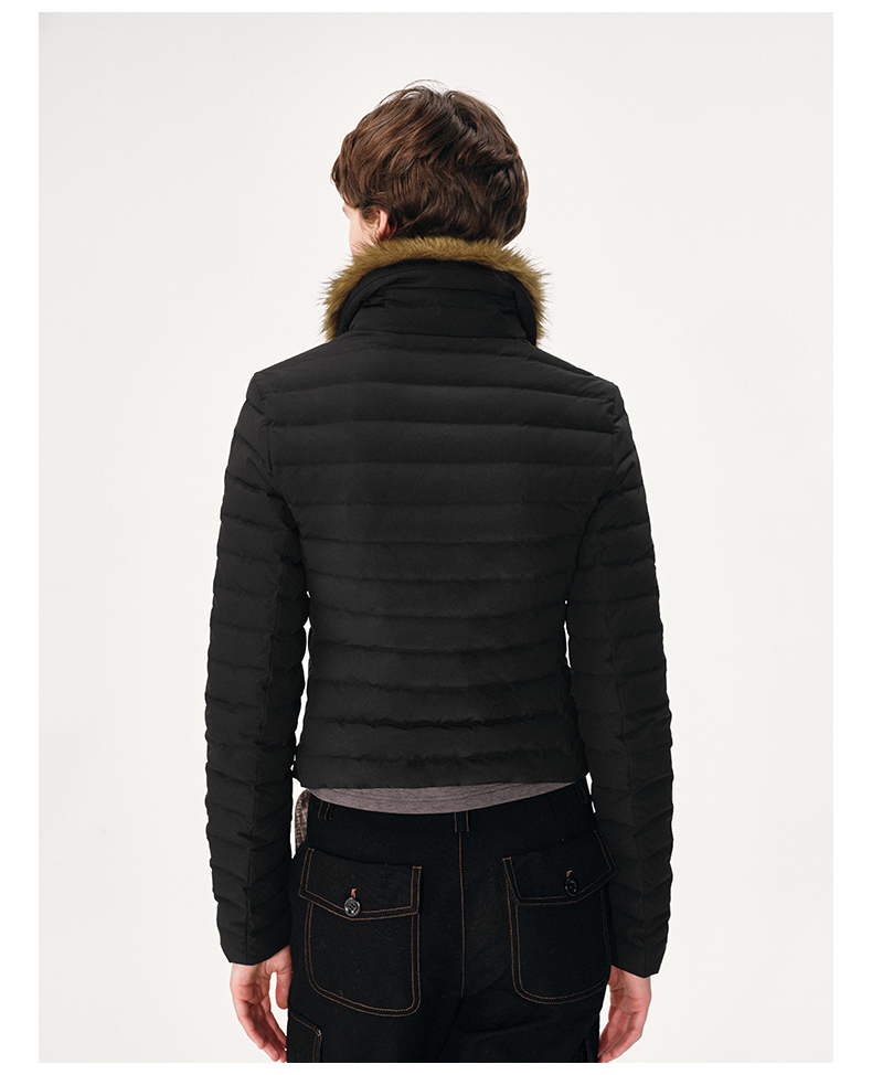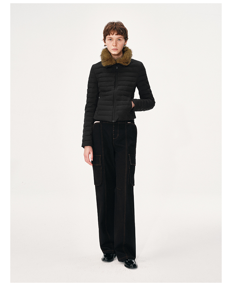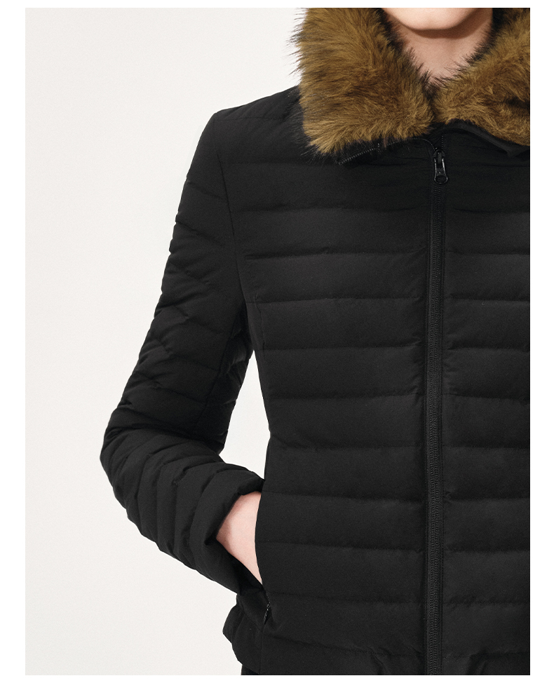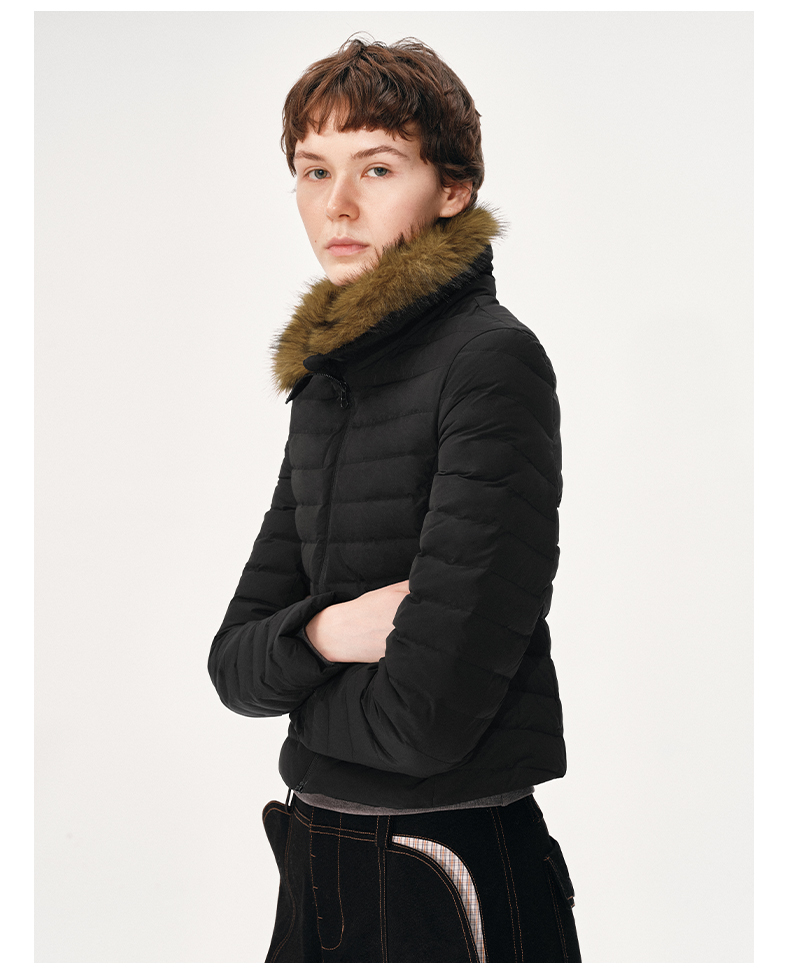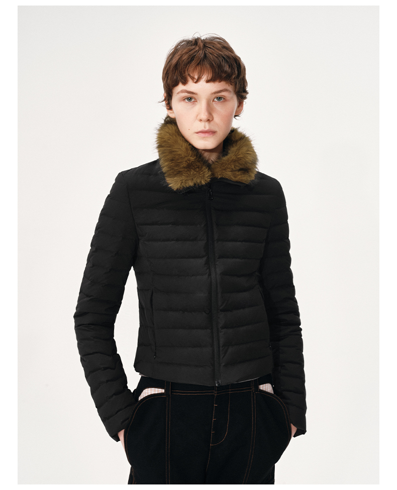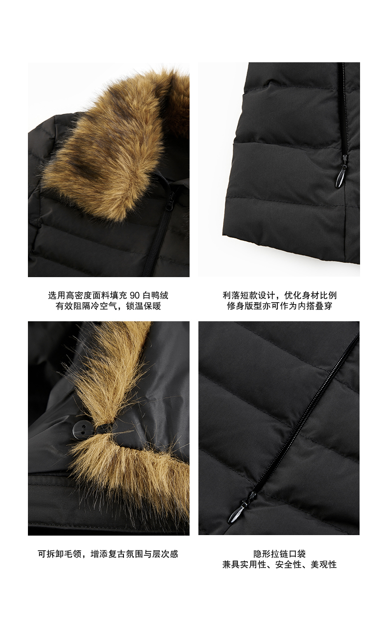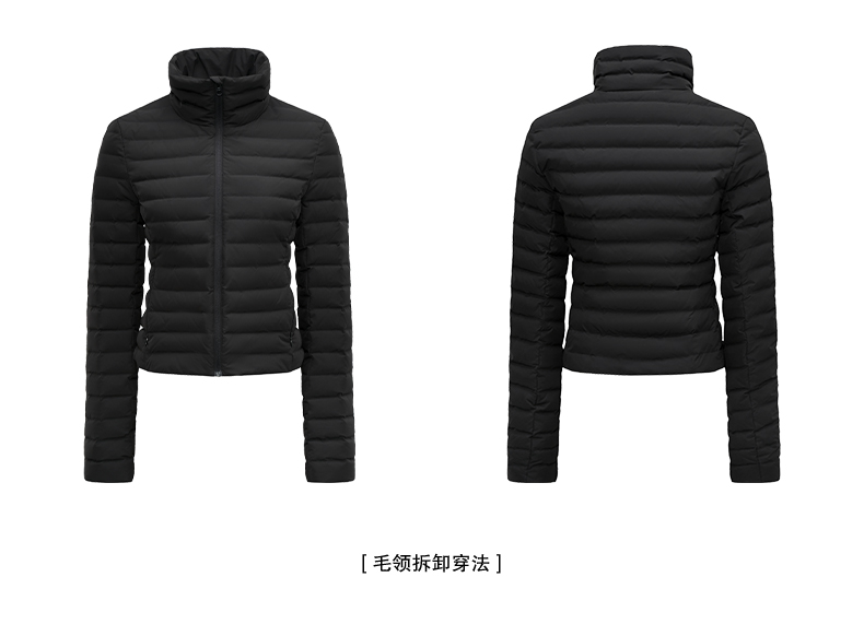 NUTH 90白鸭绒可拆卸毛领修身短款羽绒服保暖厚外套女 黑色(发货时间同步天猫)