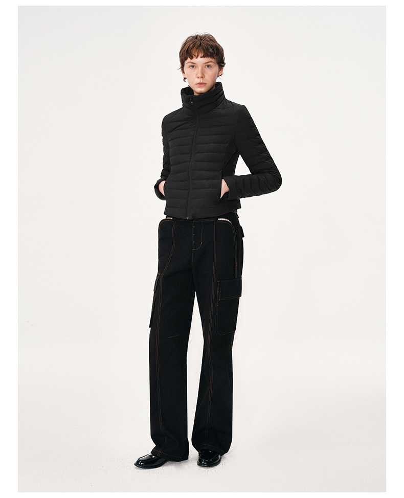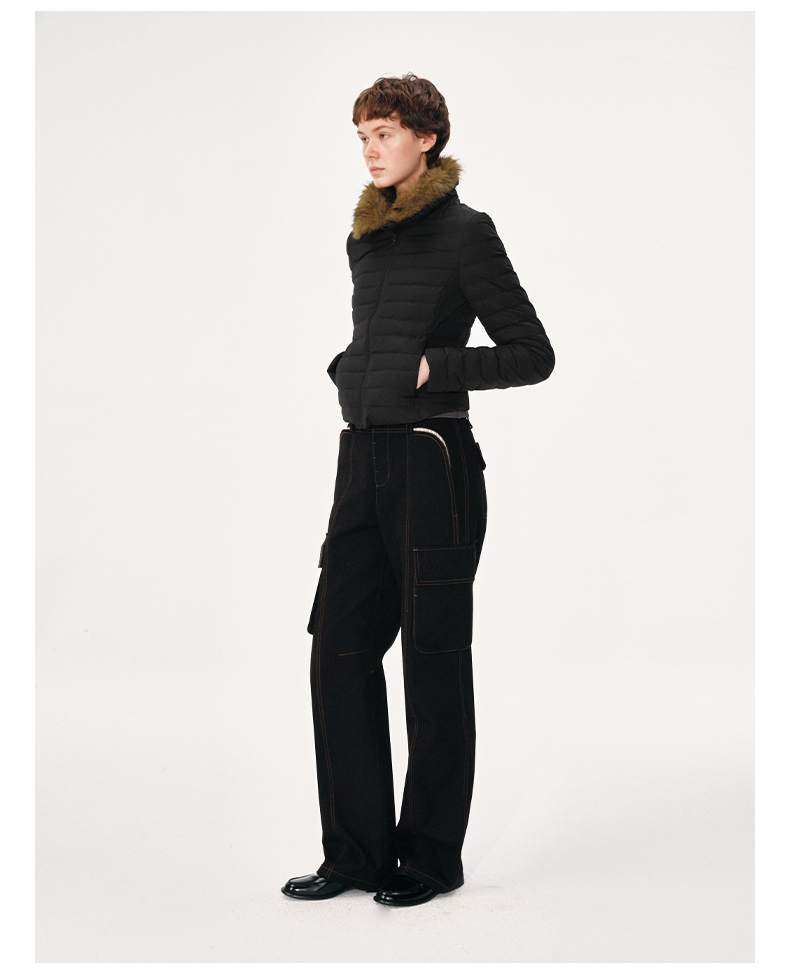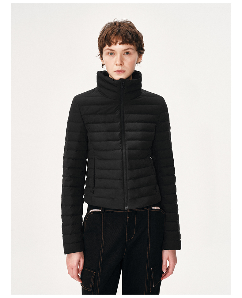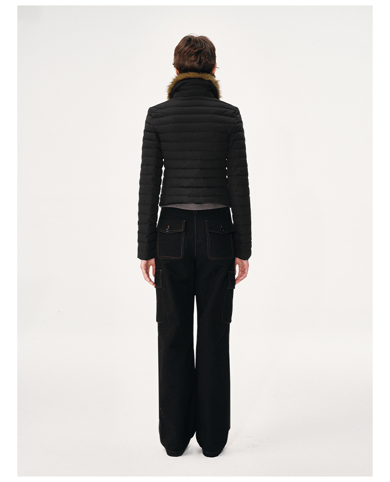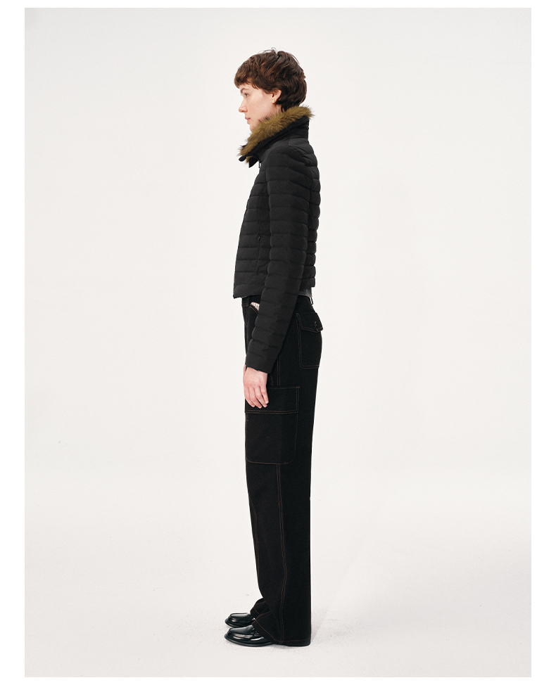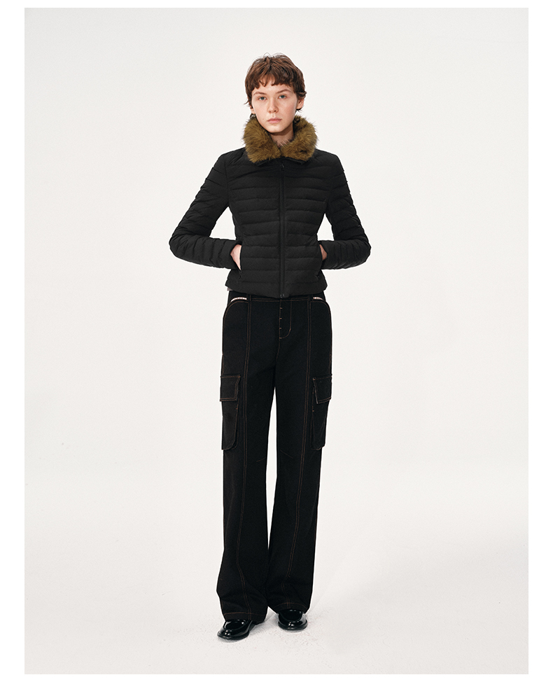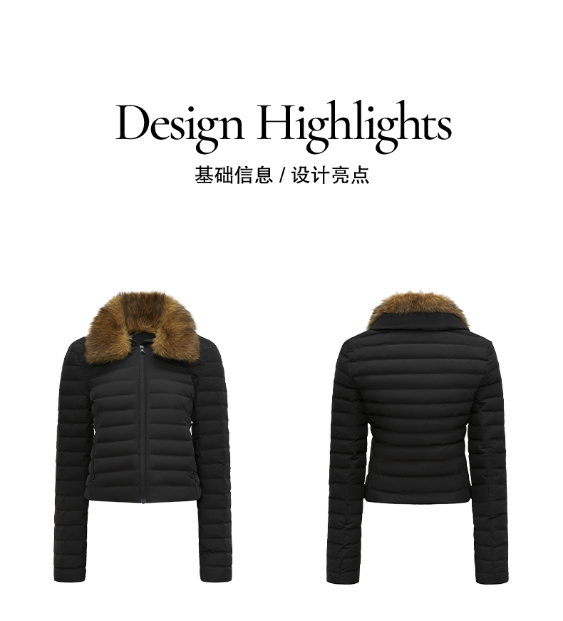 NUTH 90白鸭绒可拆卸毛领修身短款羽绒服保暖厚外套女 黑色(发货时间同步天猫)