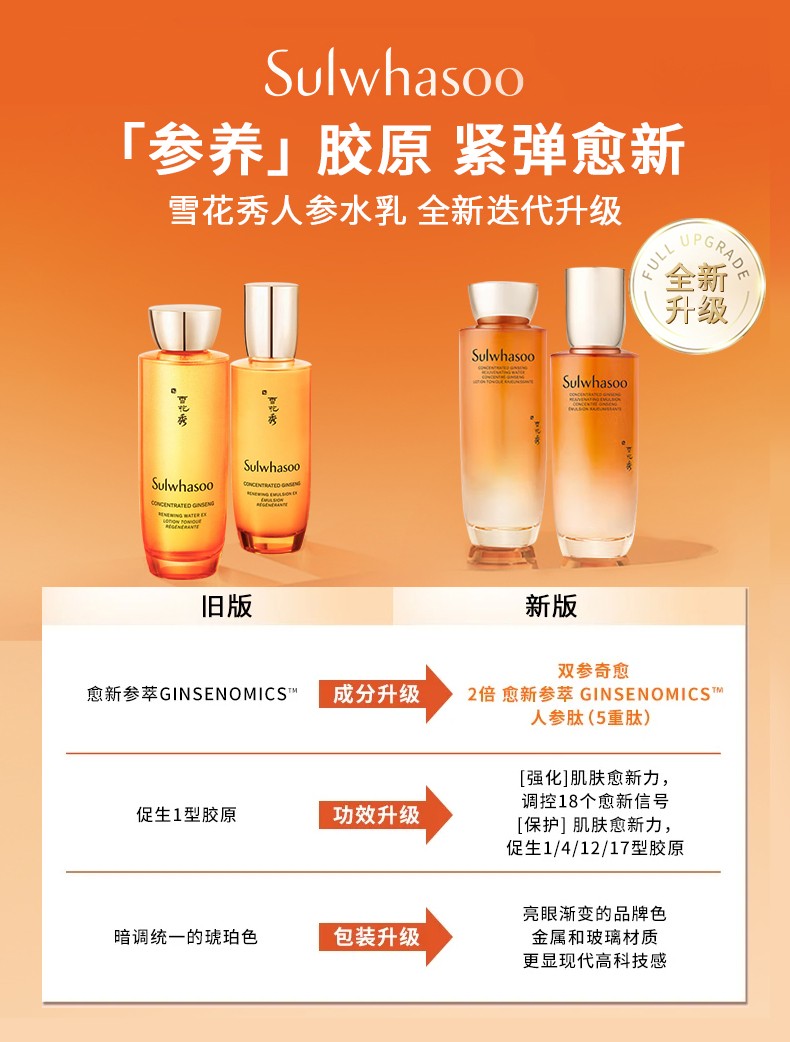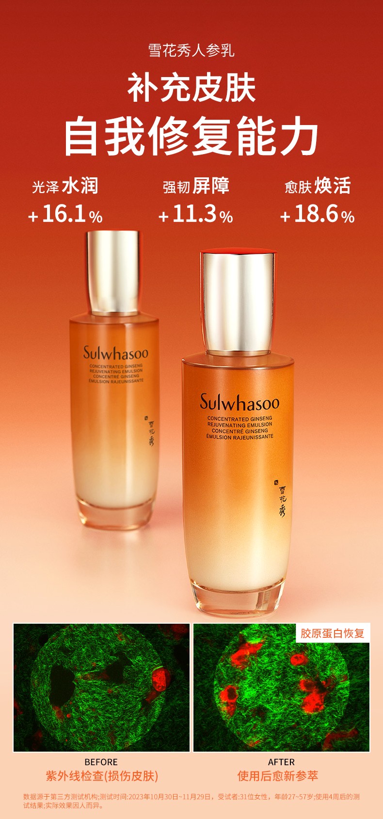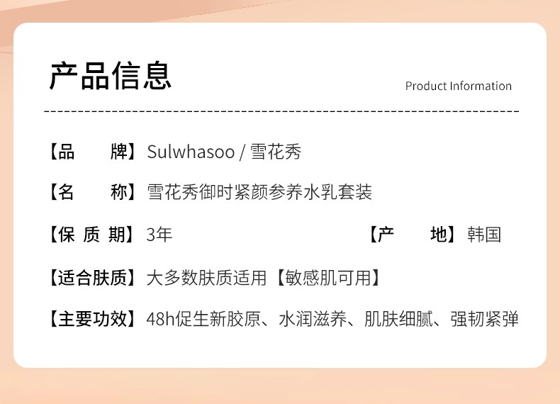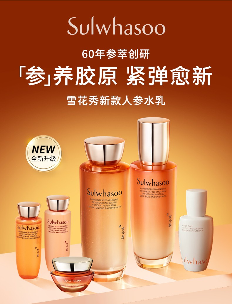【保税仓】雪花秀人参水乳二件套(水150ml+乳125ml+水25ml+乳25ml+精华15ml+面霜5ml/套)
