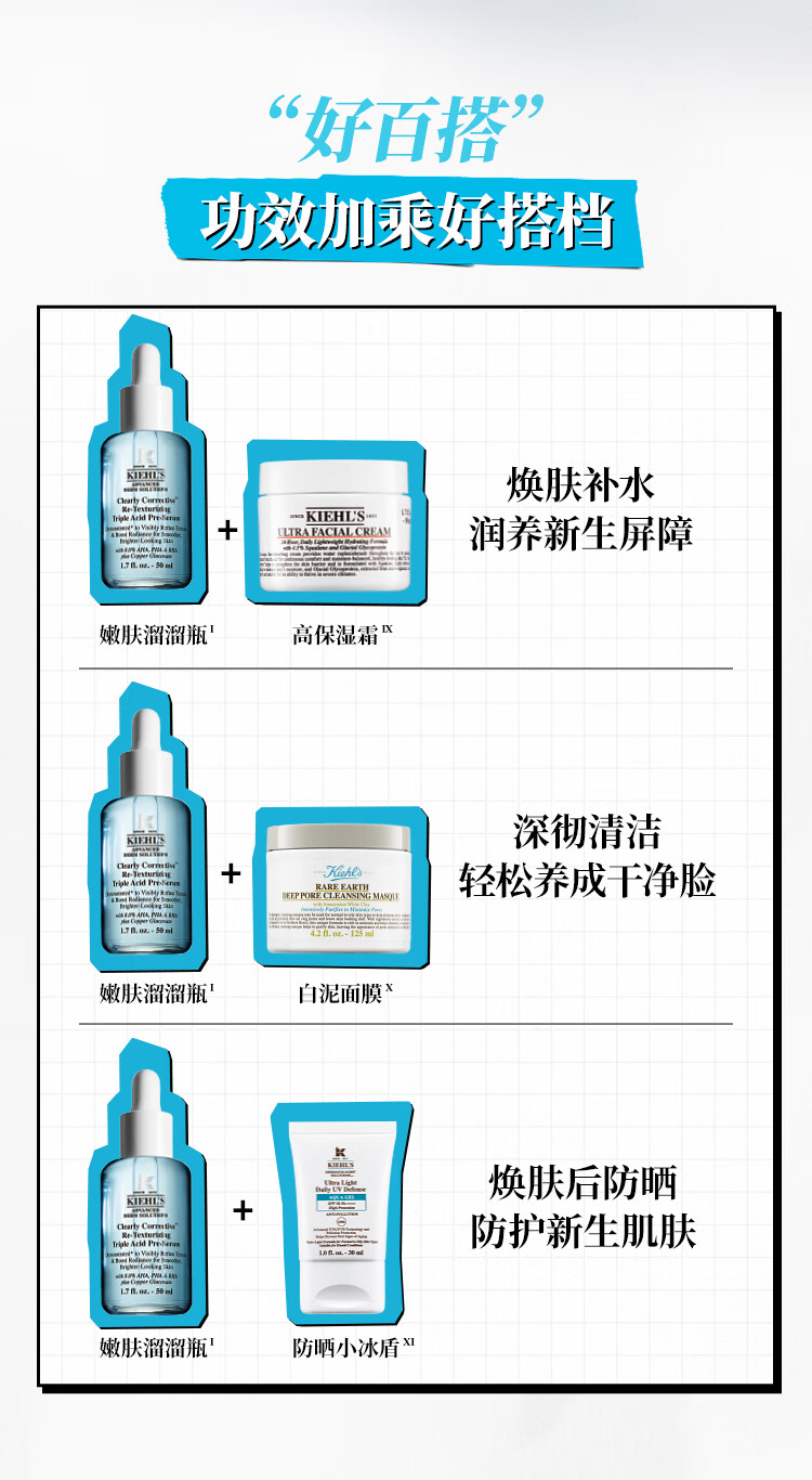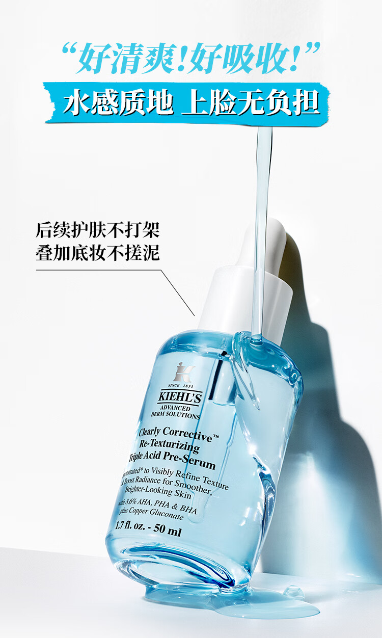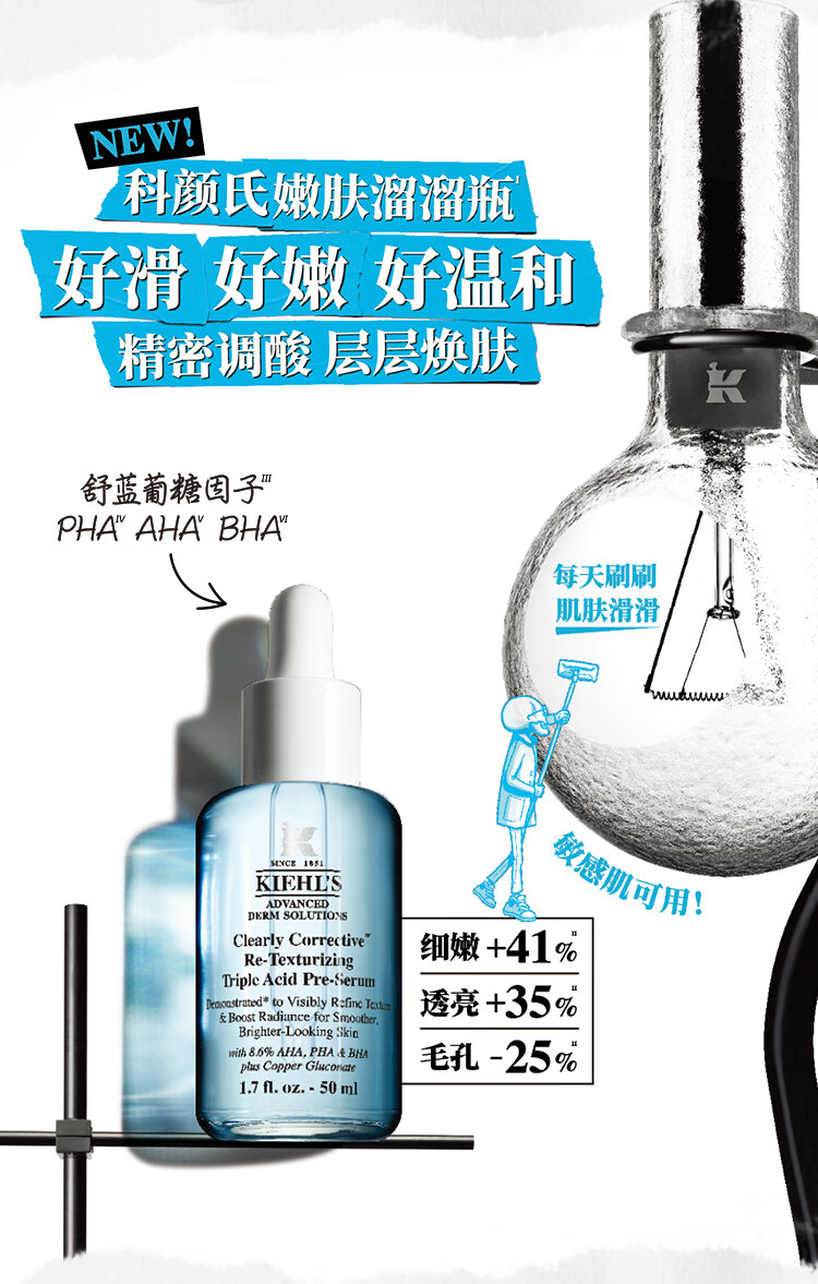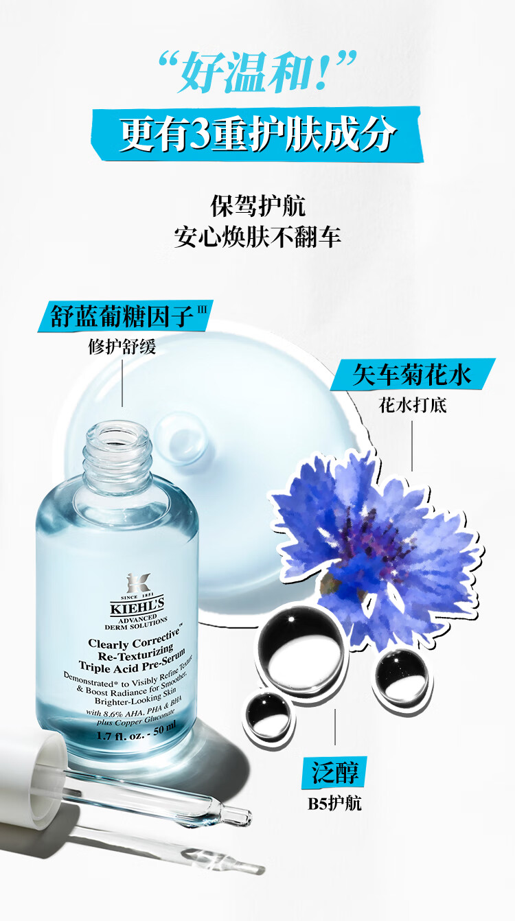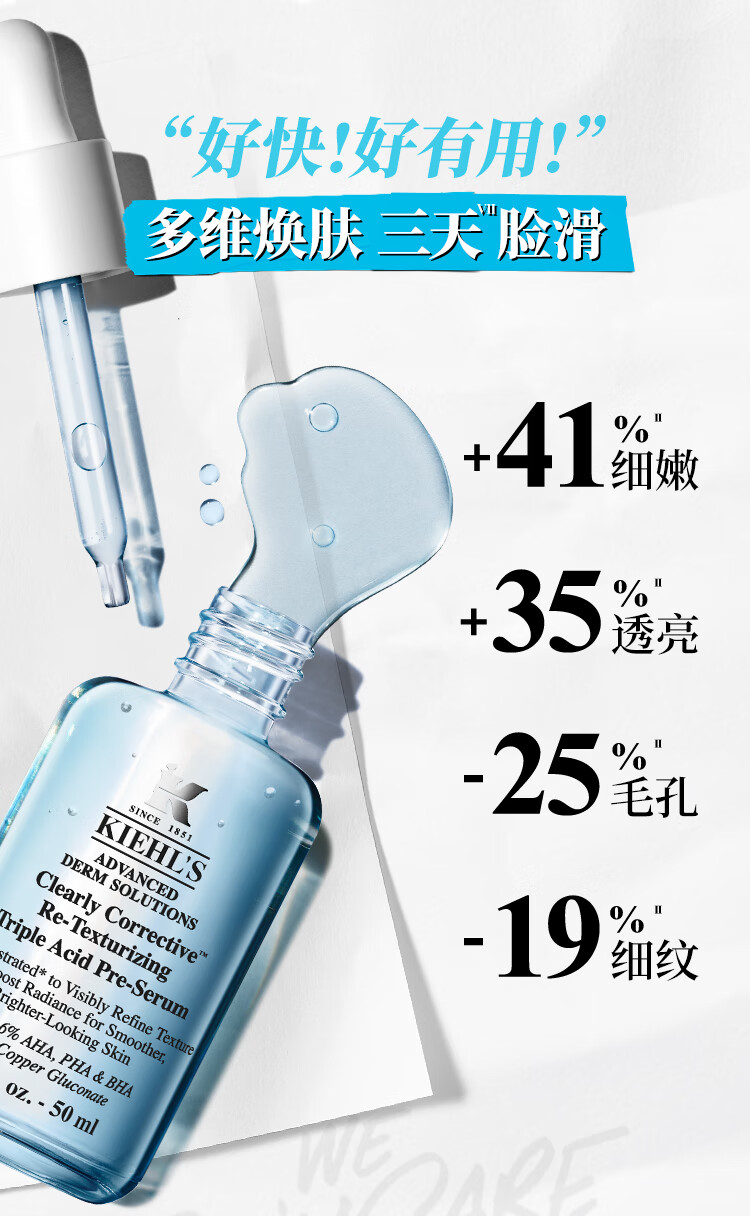 科颜氏(Kiehl's)嫩肤溜溜瓶30ml 三酸小蓝瓶精华温和去角质 护肤品生日礼物送女友 心选到家