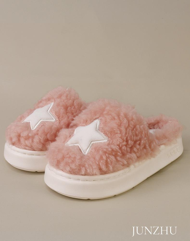【极简高级风】2025新款高级感五角星厚底棉拖鞋室内家居防滑保暖毛毛拖鞋