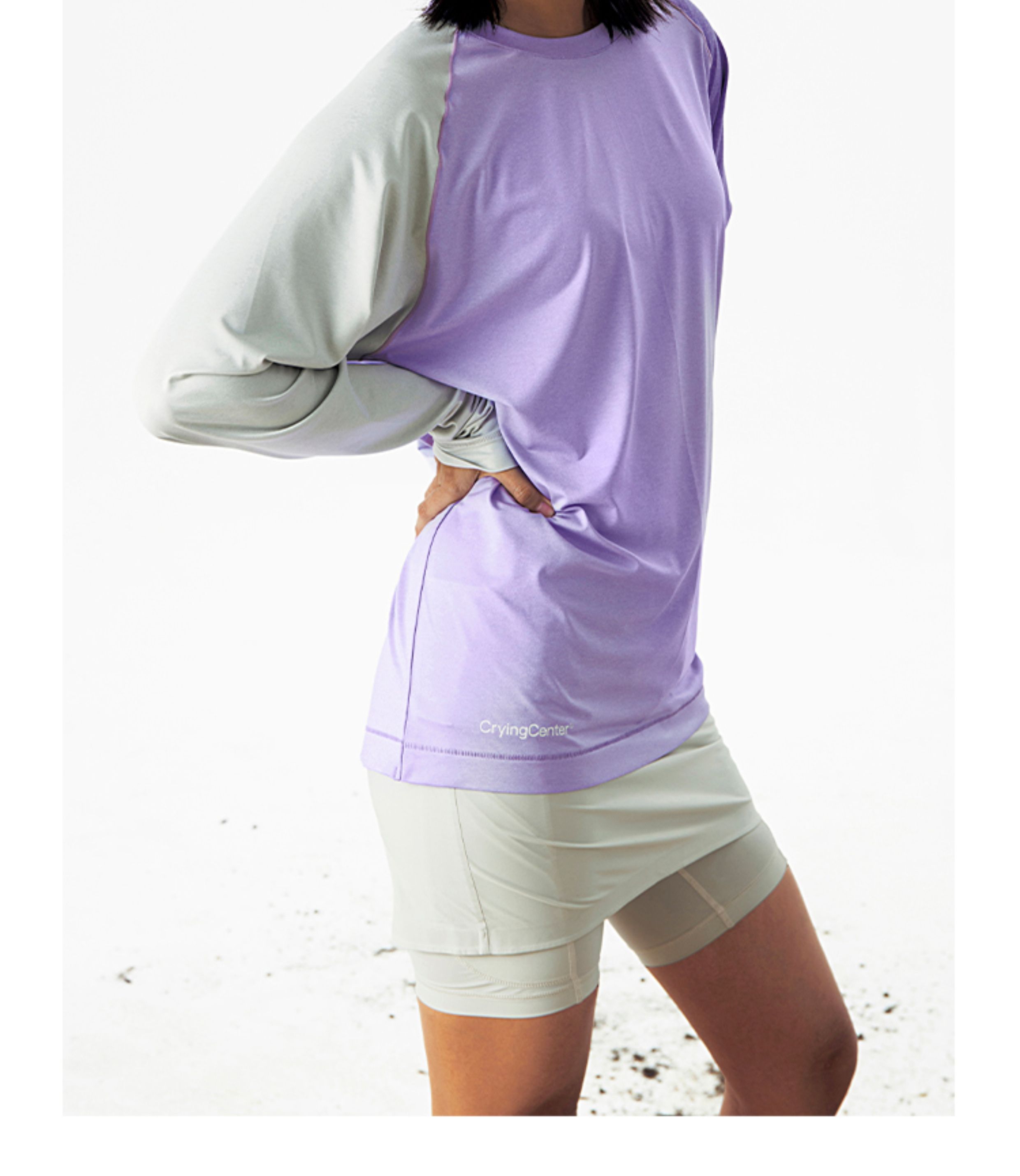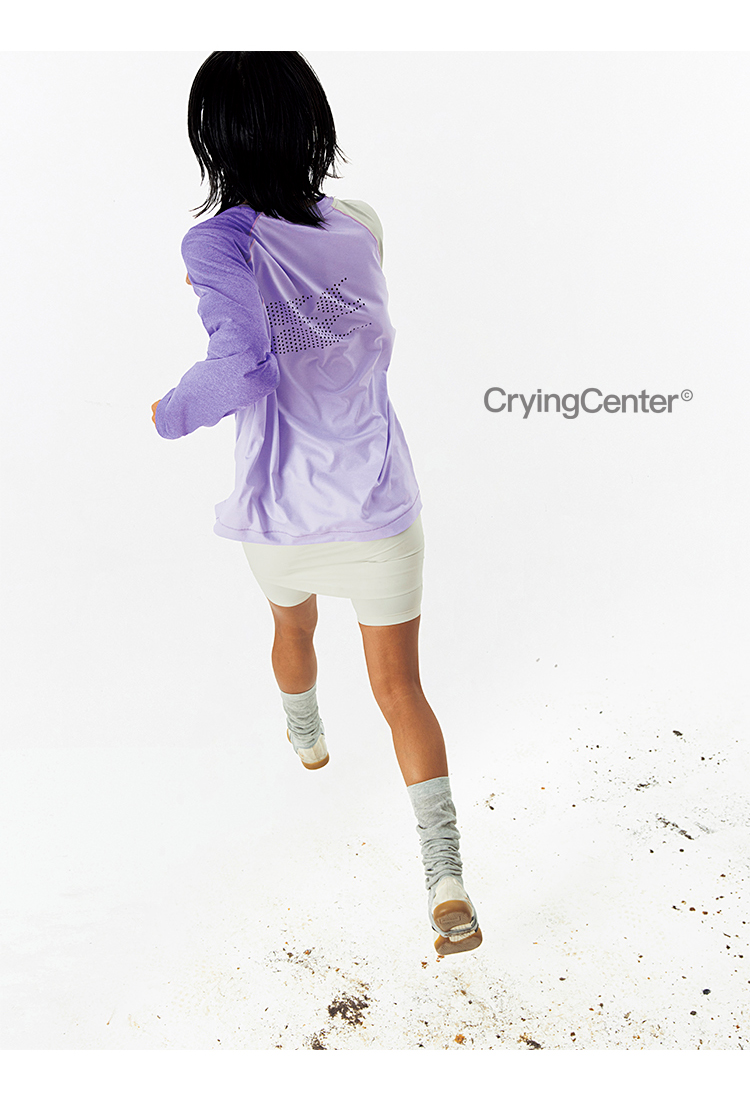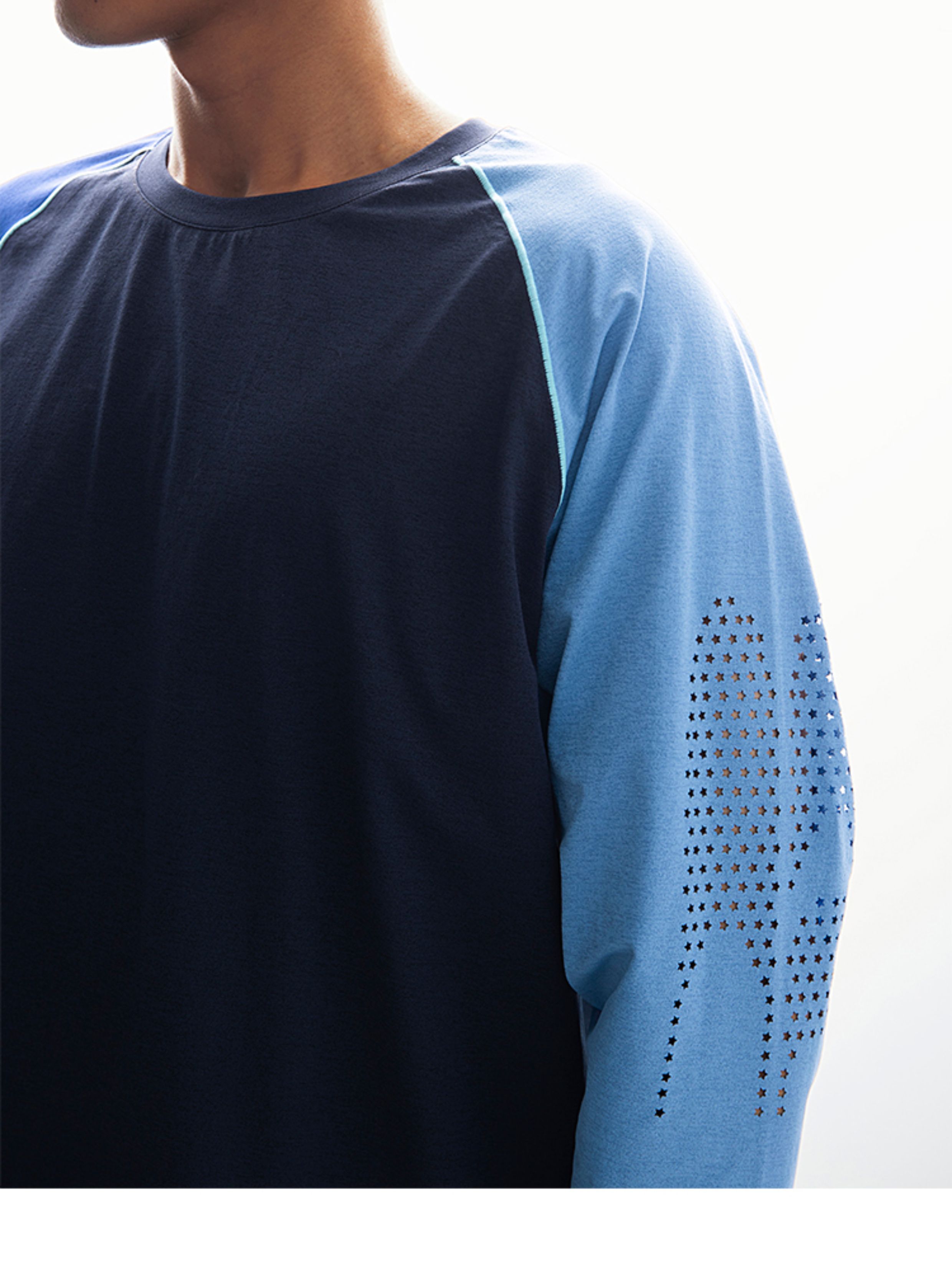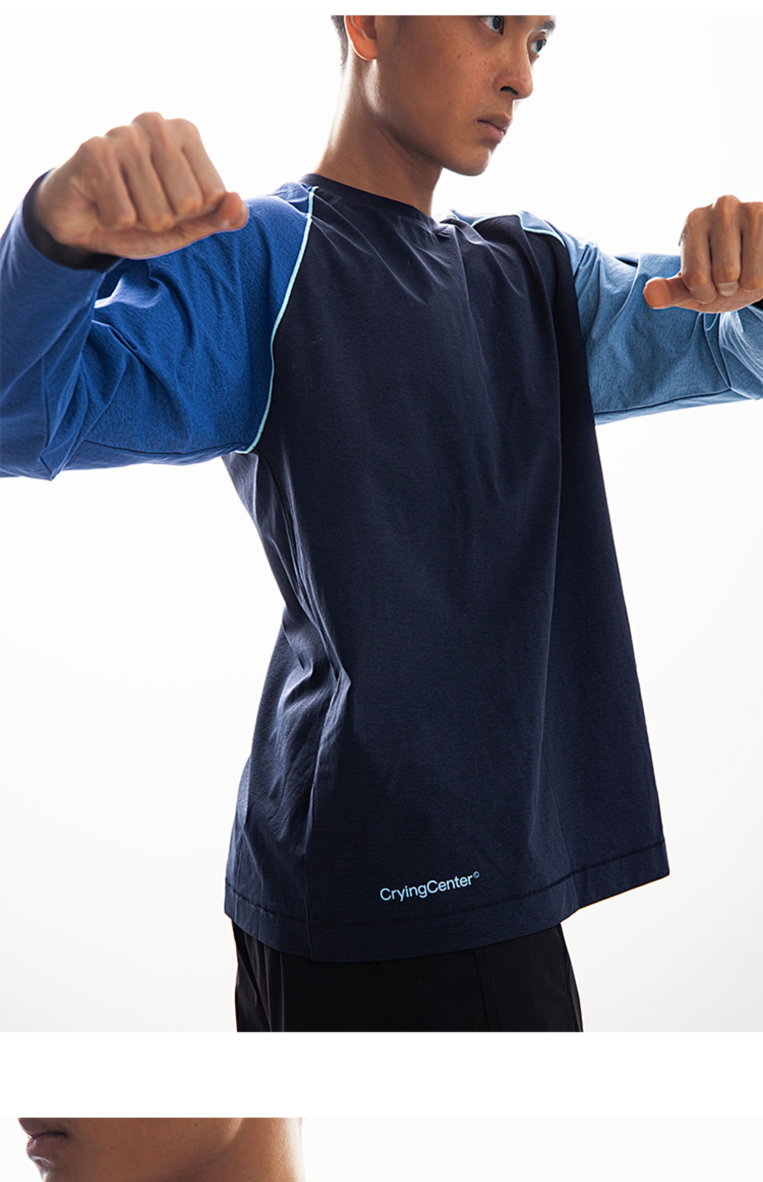 CryingCenter 镭射镂空星星logo吸湿速干运动羽毛球插肩拼色长袖